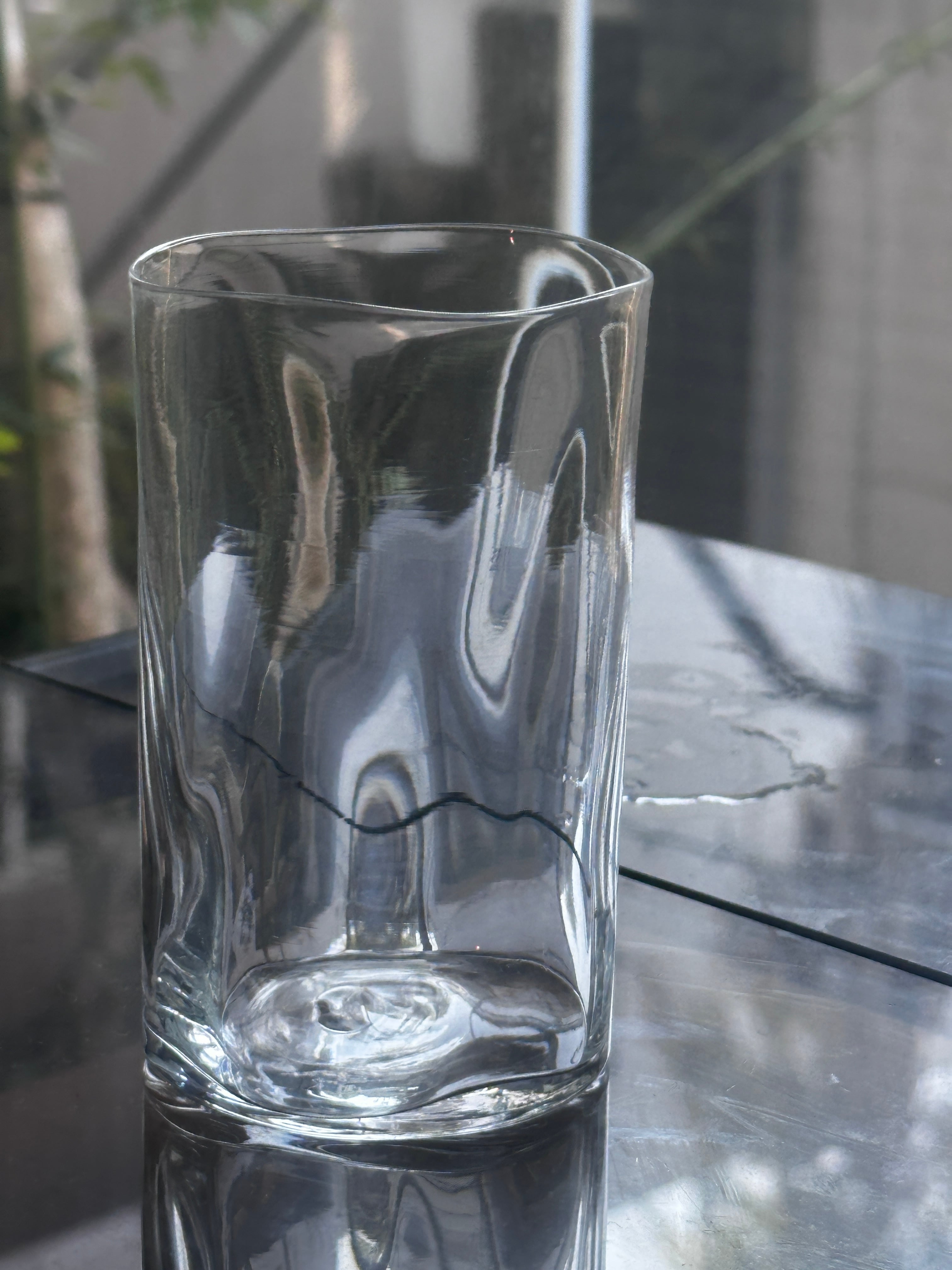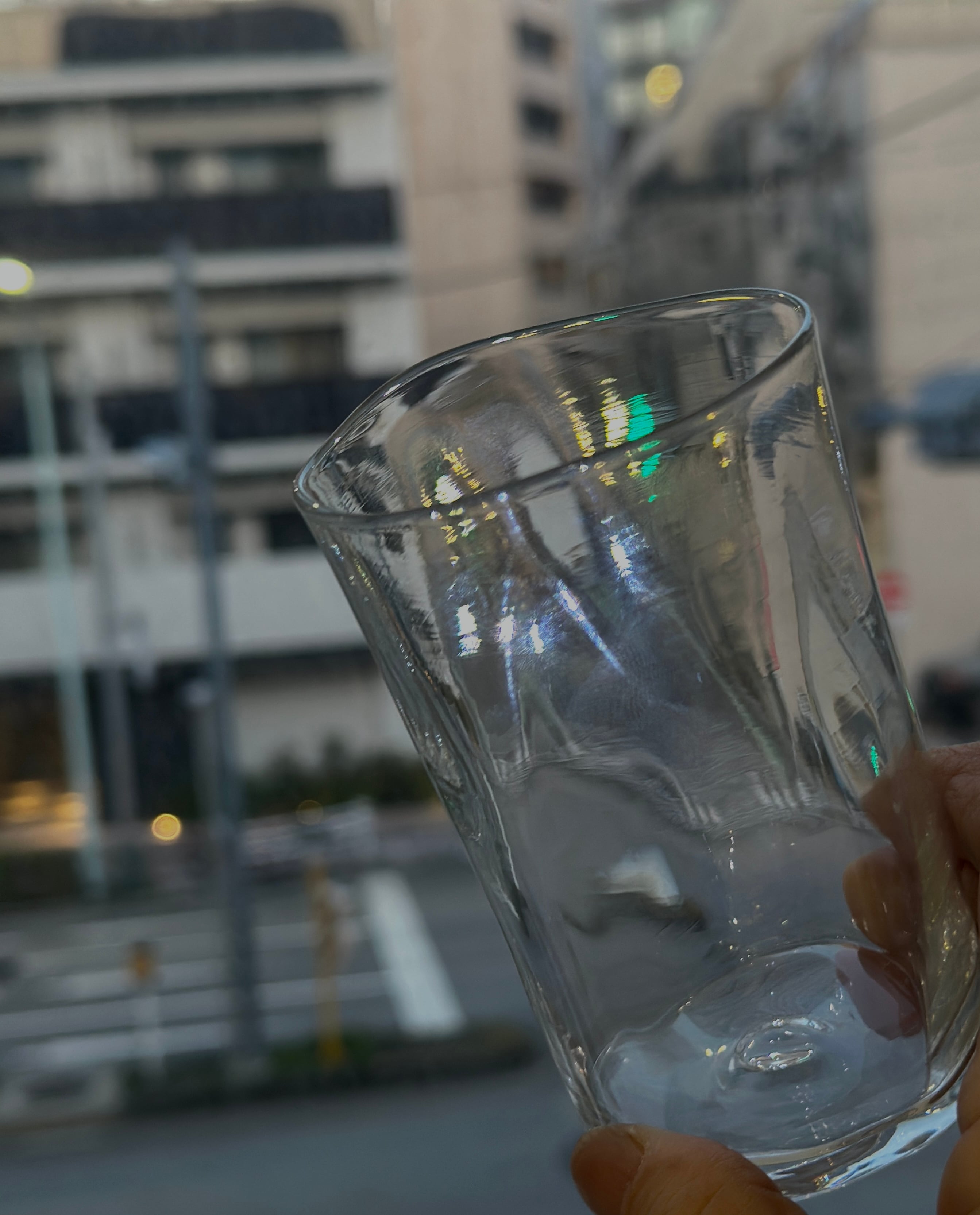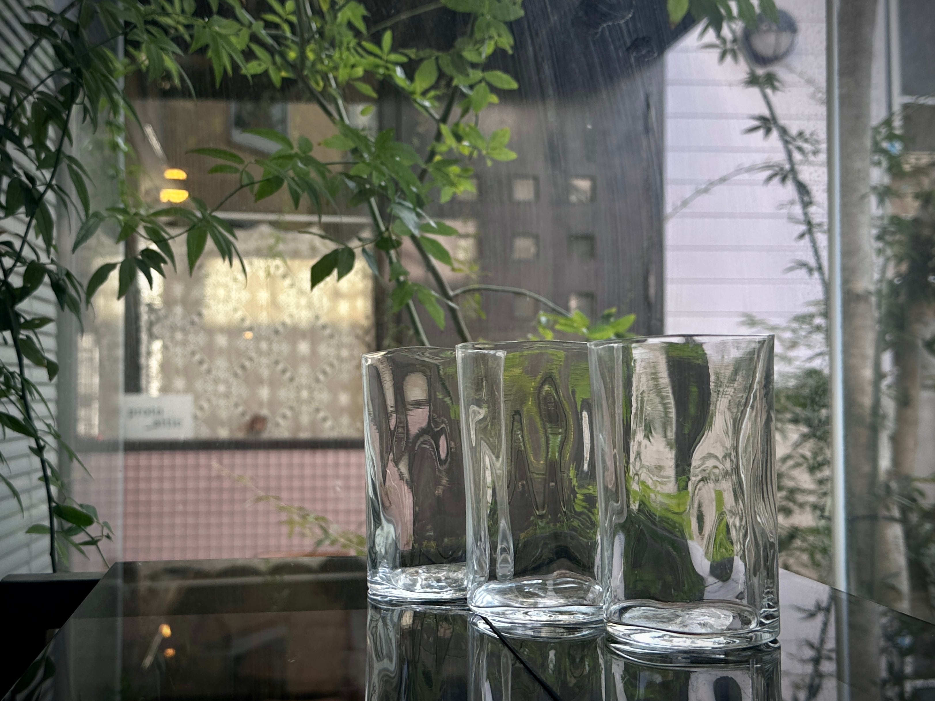 キラキラゆらめきながら、形はスッとした仕上がりのグラスを作りたいと思ったそうです。