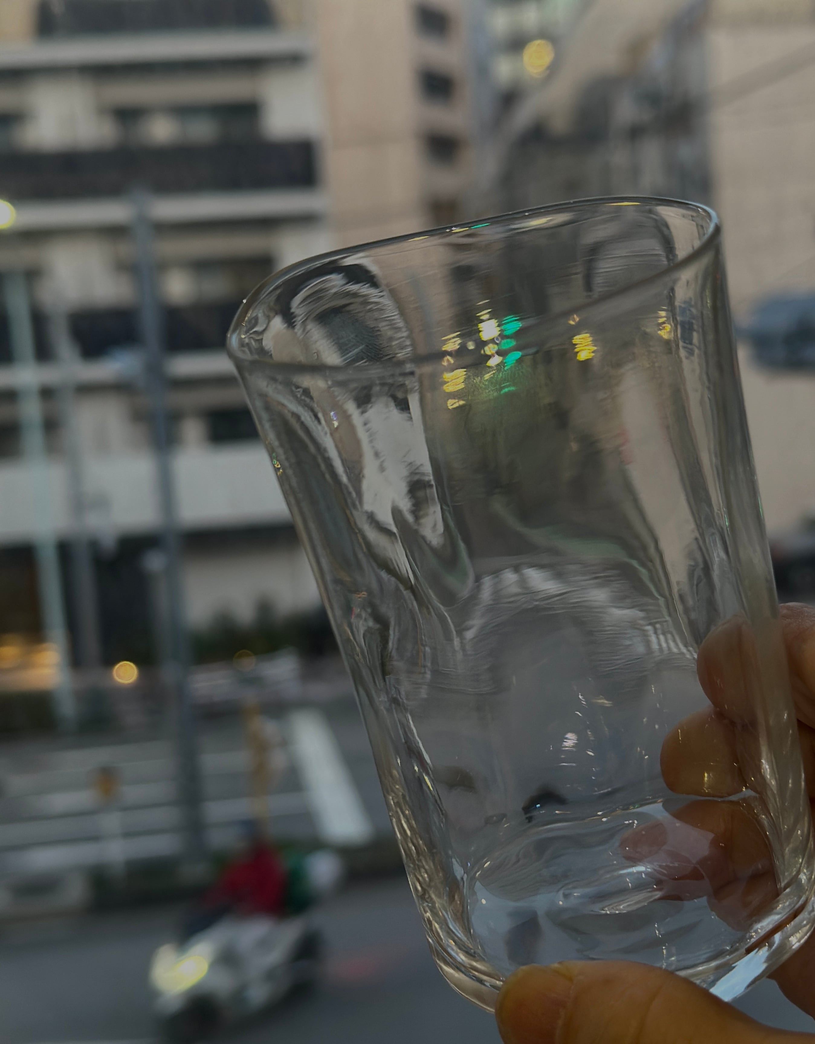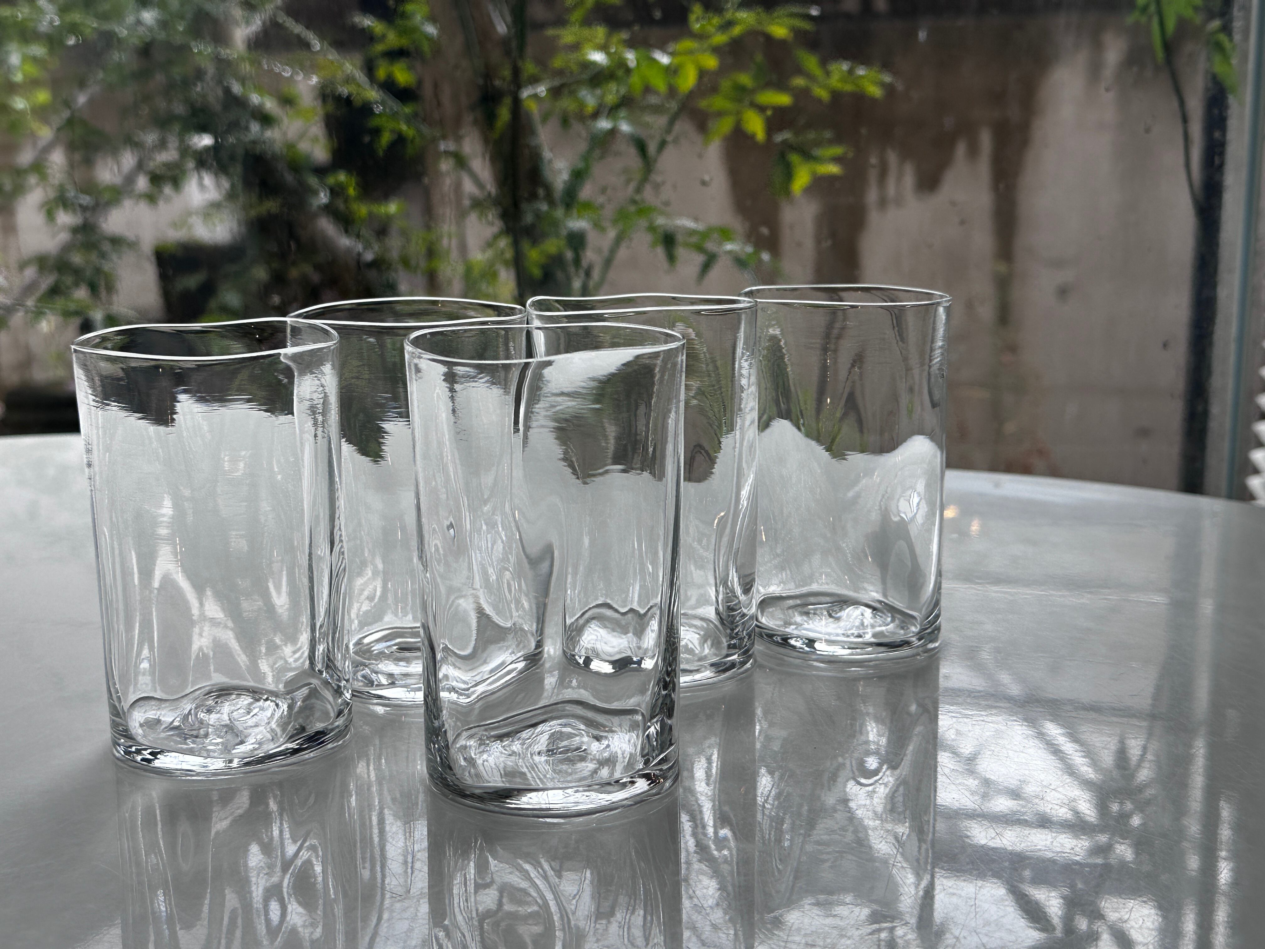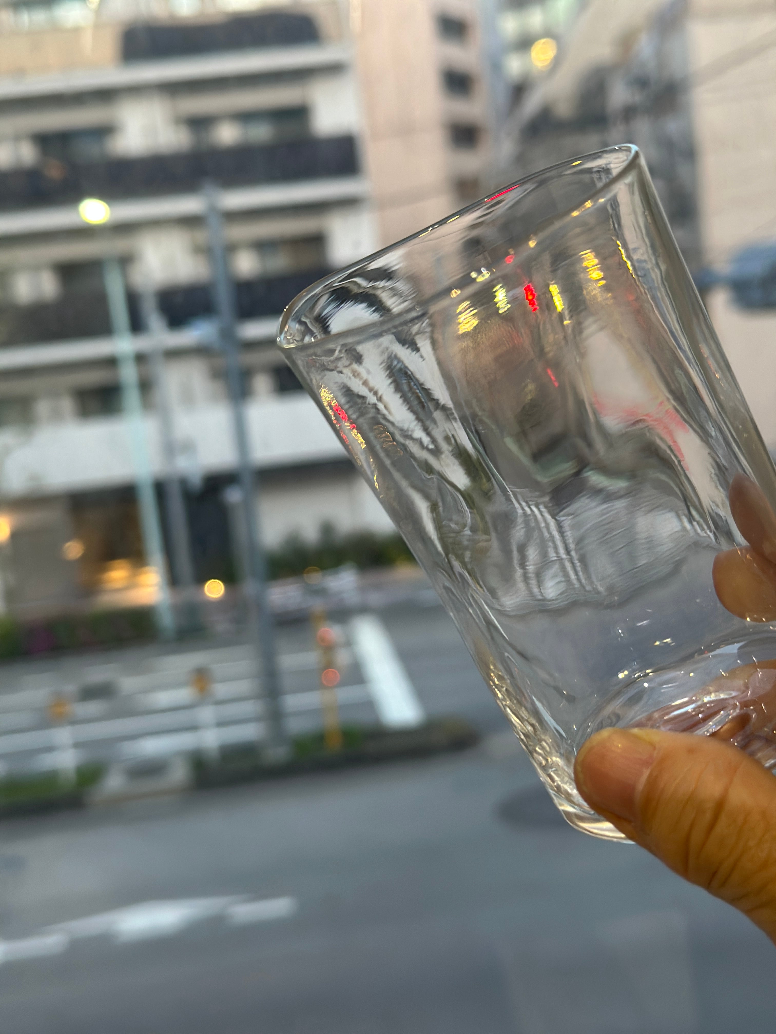 キラキラゆらめきながら、形はスッとした仕上がりのグラスを作りたいと思ったそうです。
