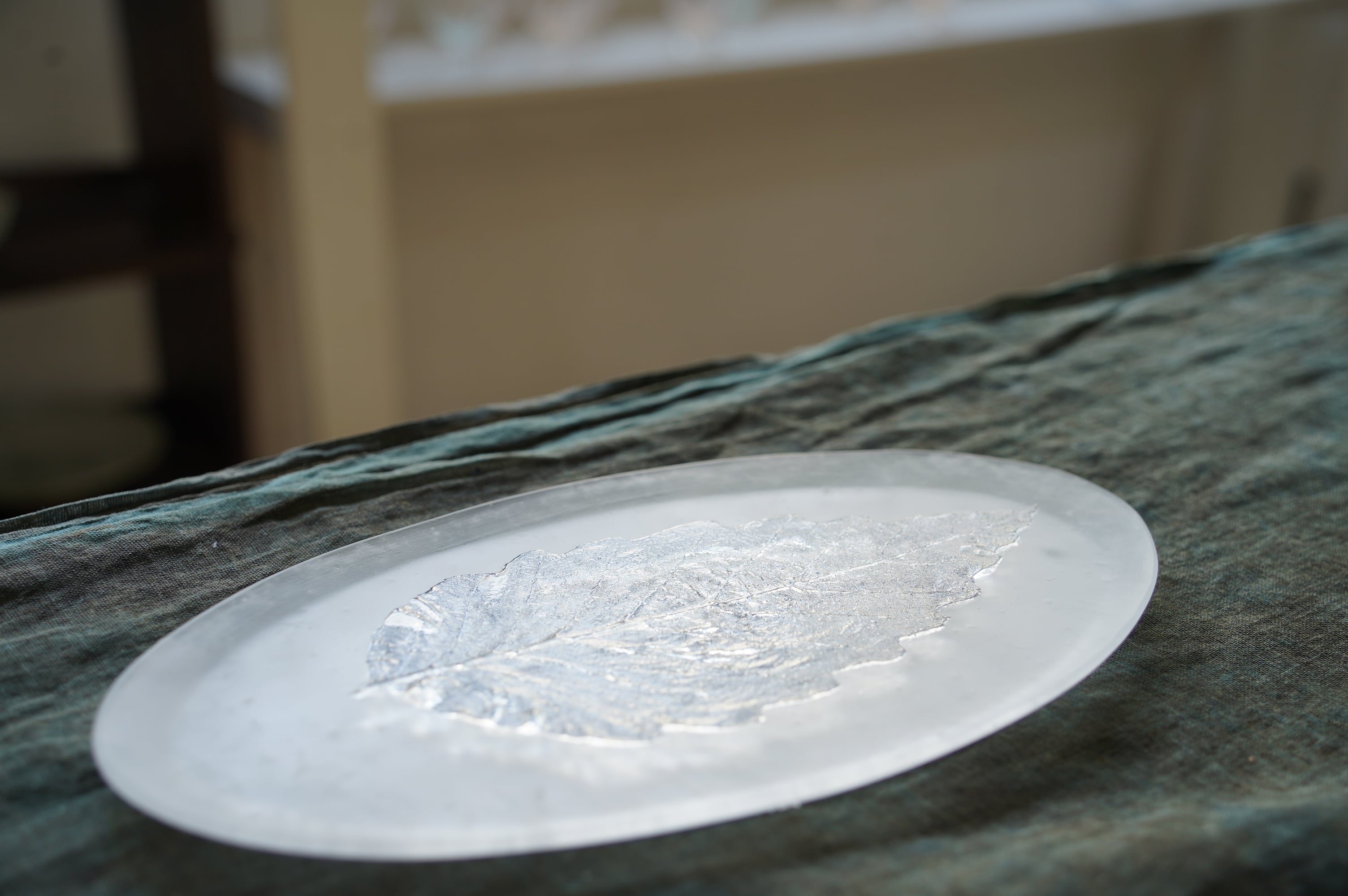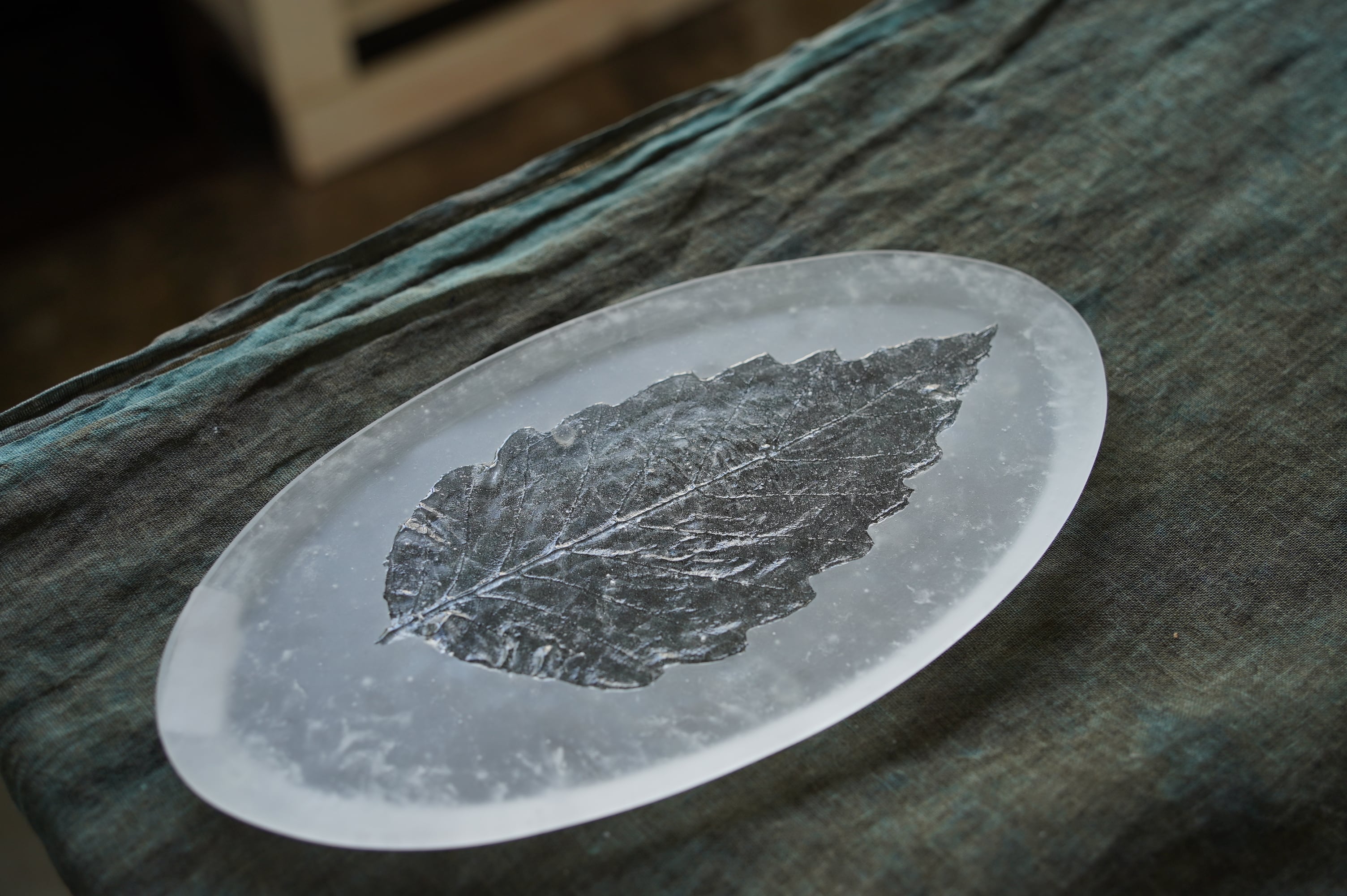 四季折々の日本の葉や花びらを型に写しこみ一つ一つ制作しております。
