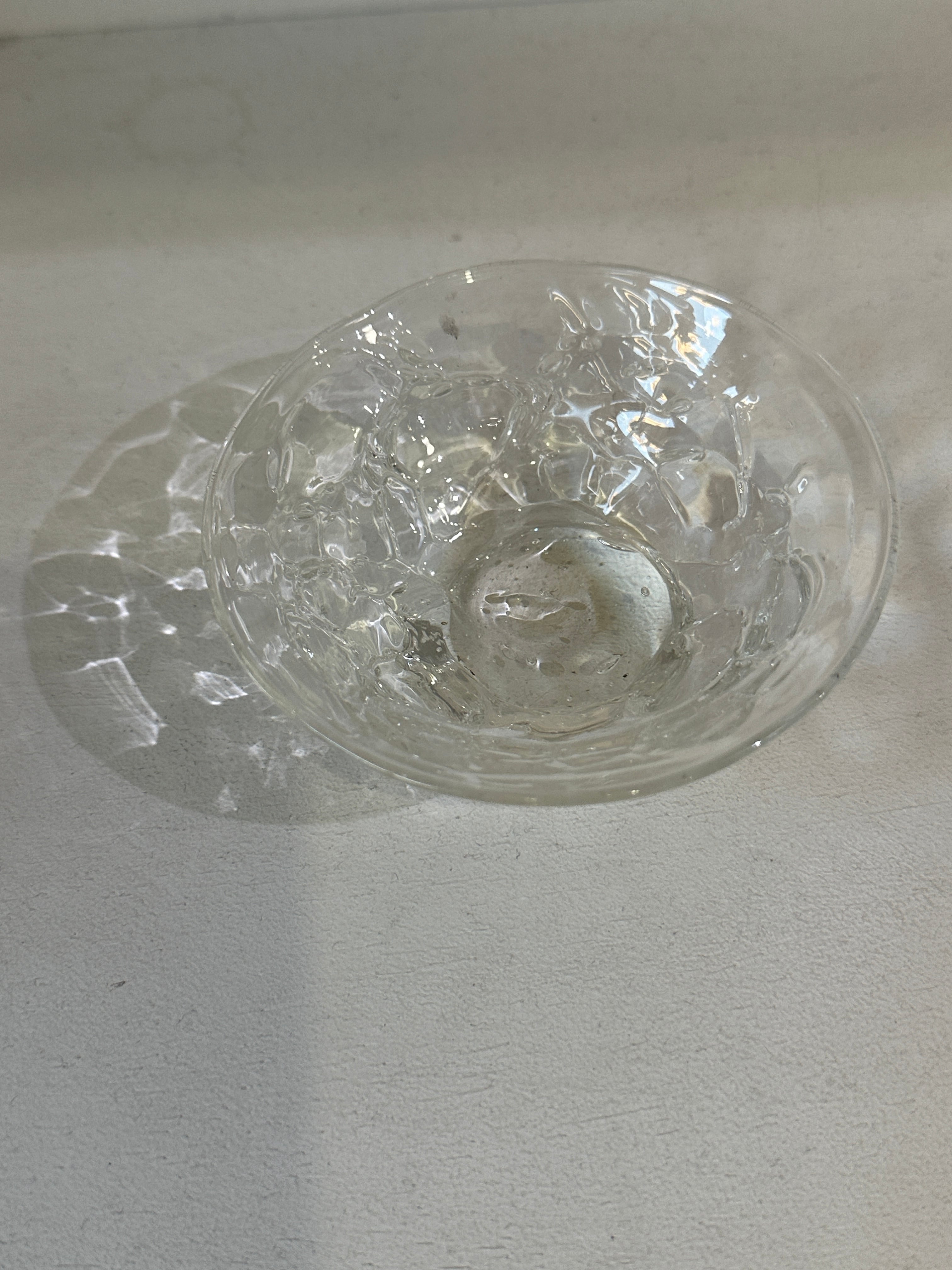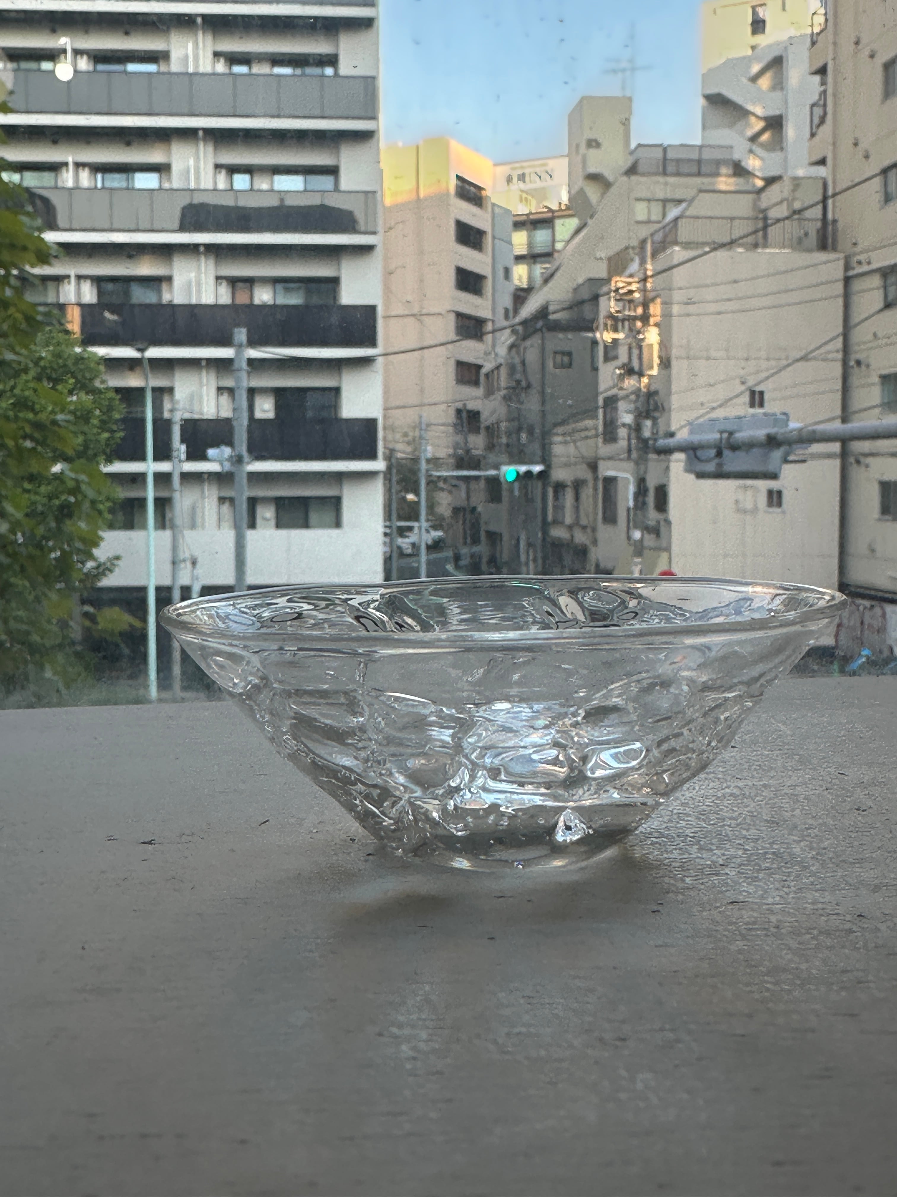 熱いガラスを水に入れ、急激に冷やすことでひび割れを起こす"アイスクラック"という技法を使って、水面を表現しています。