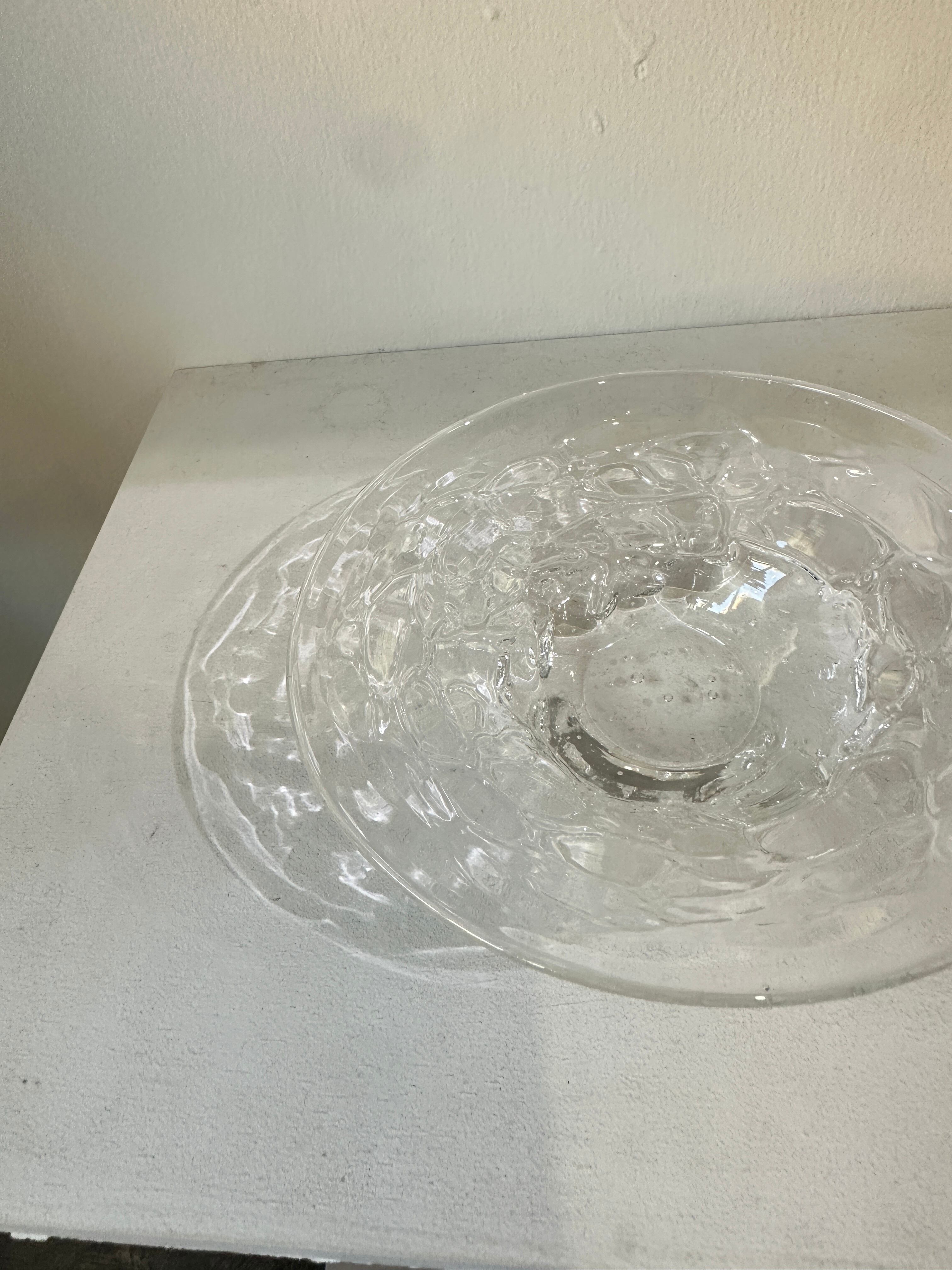 その上から別の熱いガラスを底側に巻き付けることによって、ひび割れの間の空気が閉じこめられ、泡が浮かびます。それによって水面の底から浮かぶ泡の息遣いを表現しています。