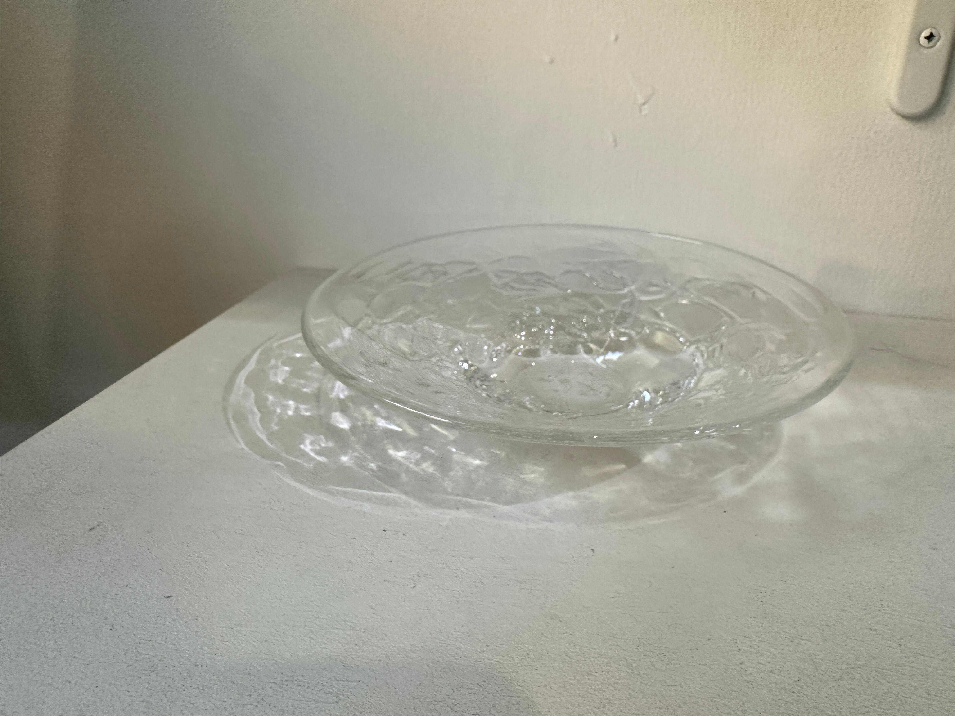 熱いガラスを水に入れ、急激に冷やすことでひび割れを起こす"アイスクラック"という技法を使って、水面を表現しています。