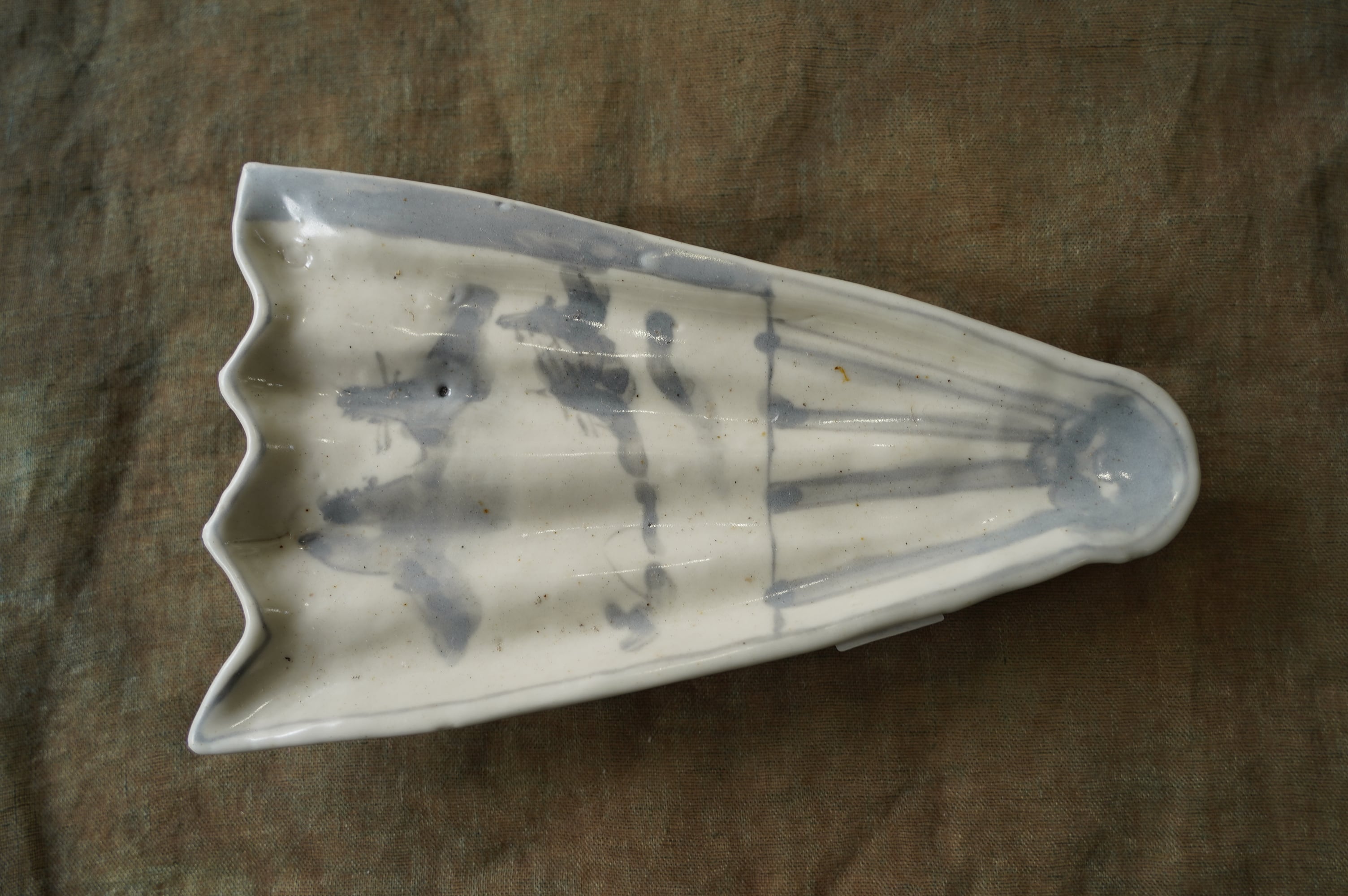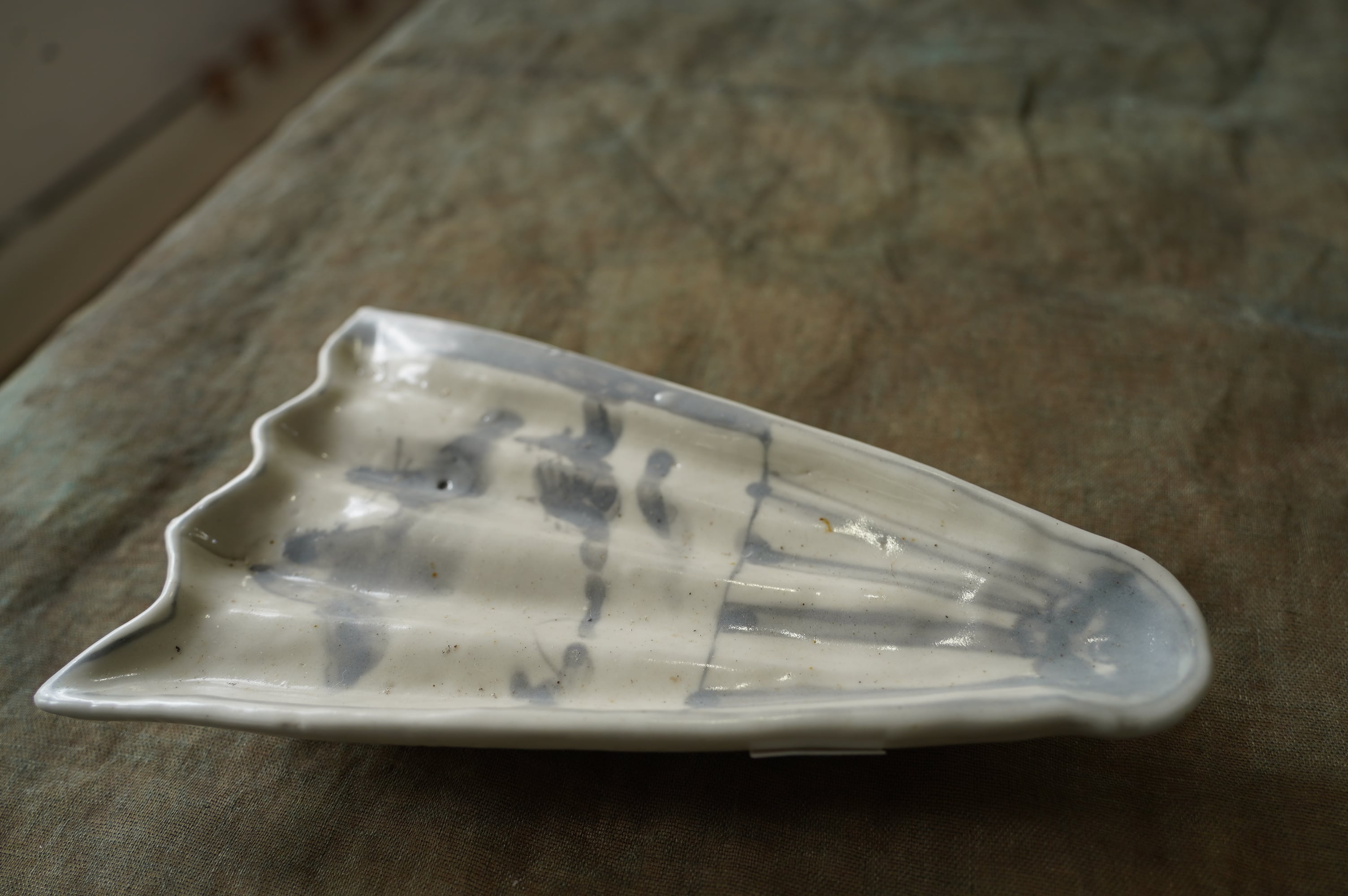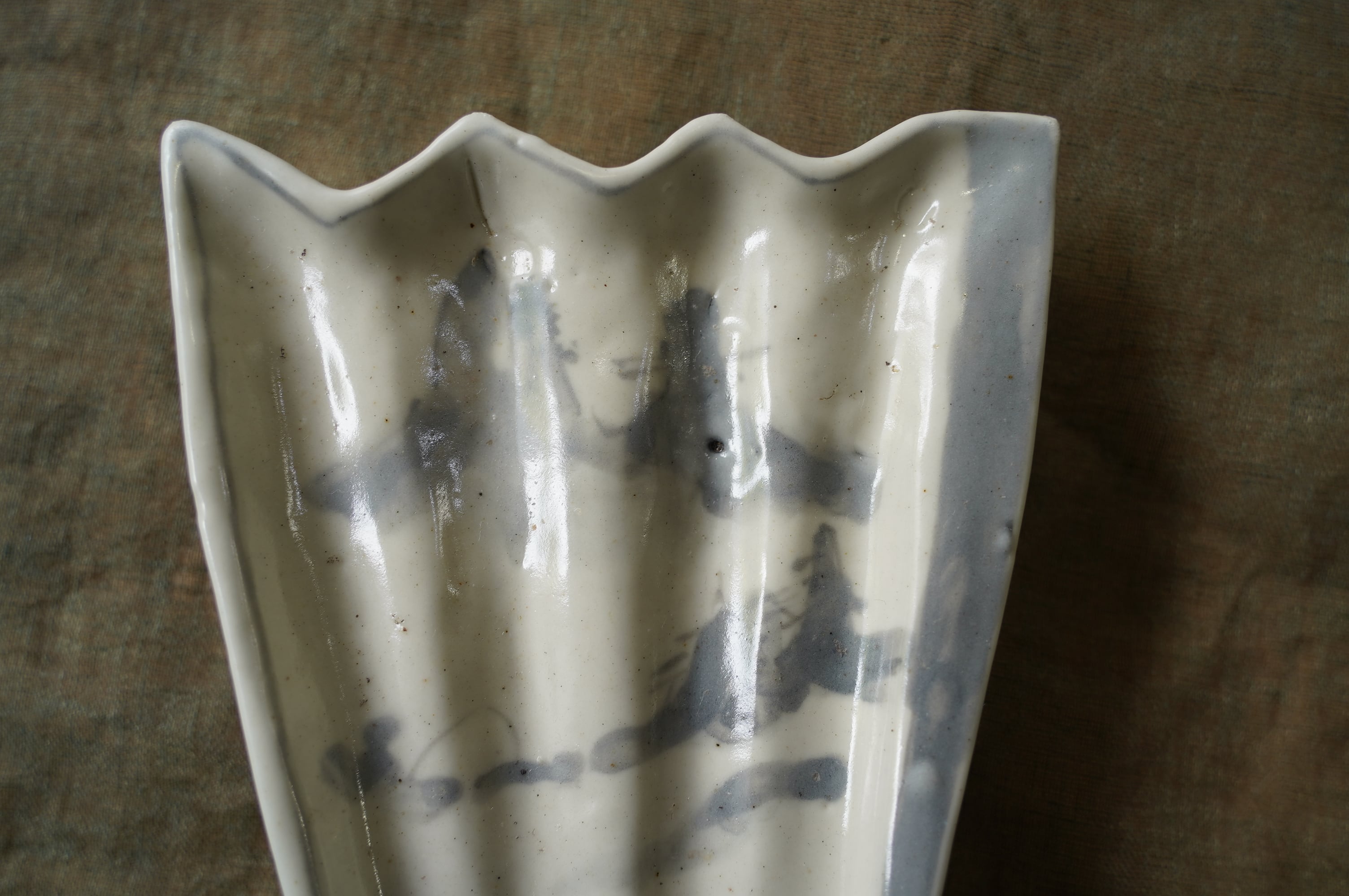 km24 染付山水文半開扇型皿 川端まさみ Masami Kawabata 1