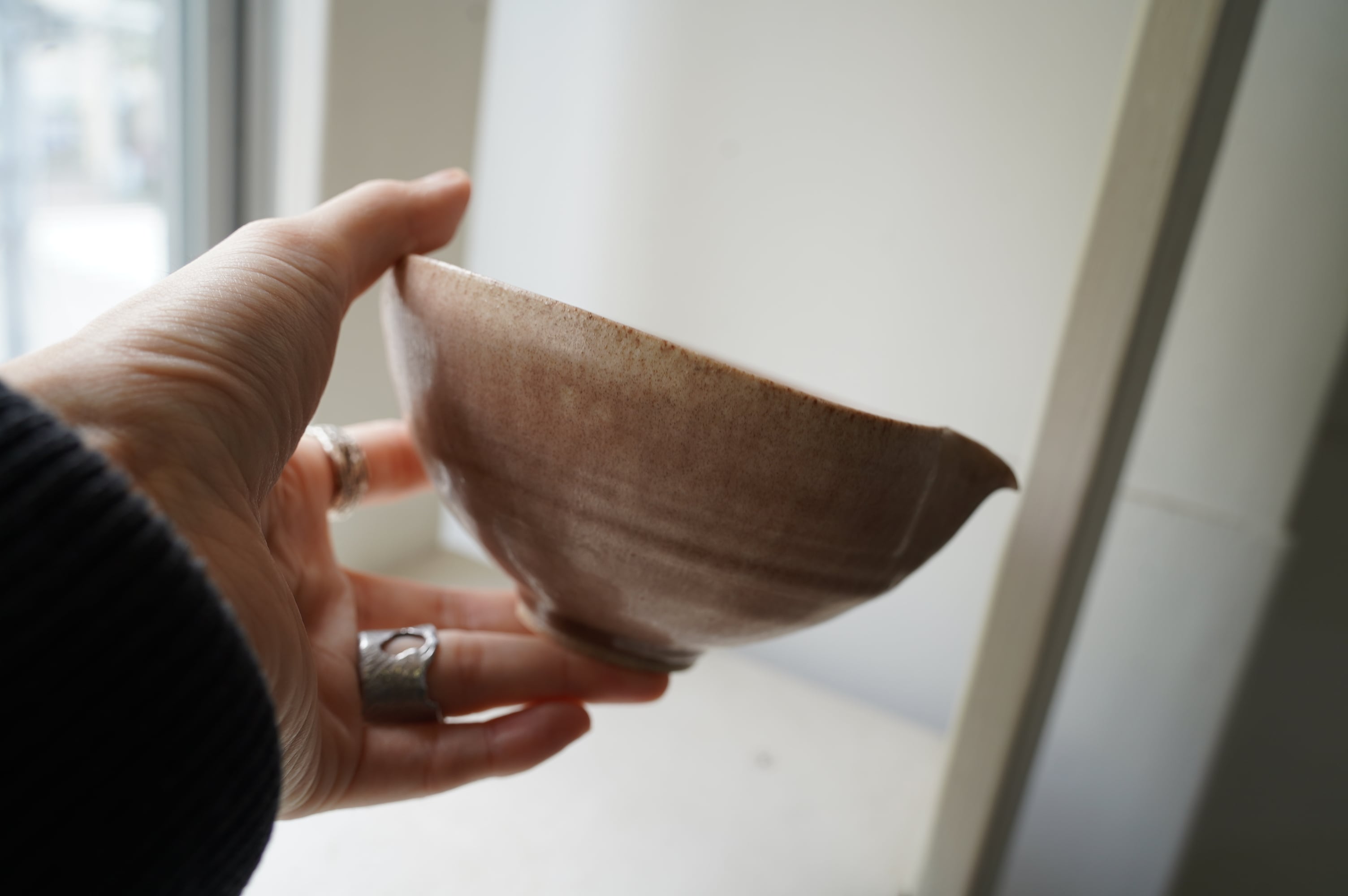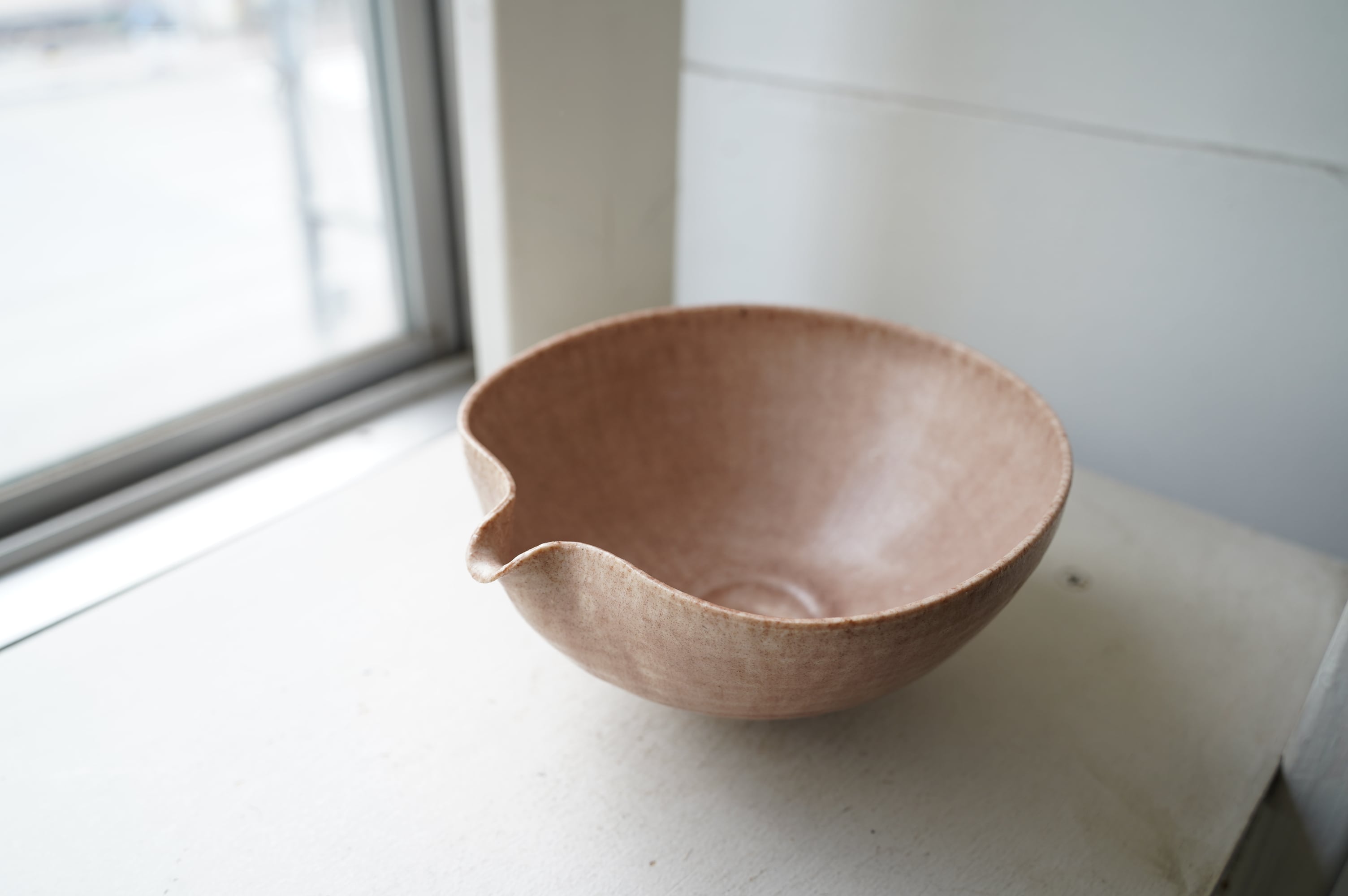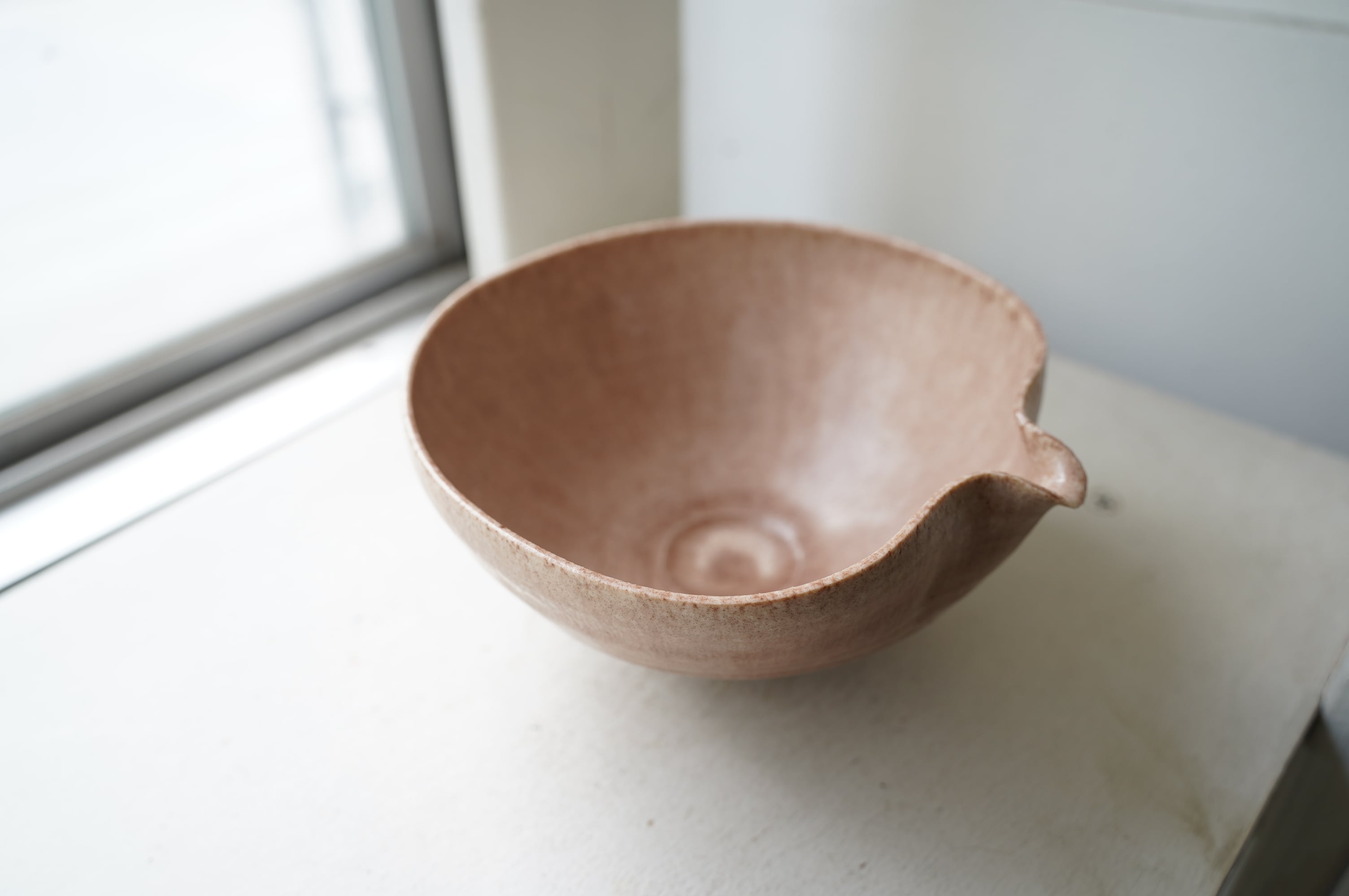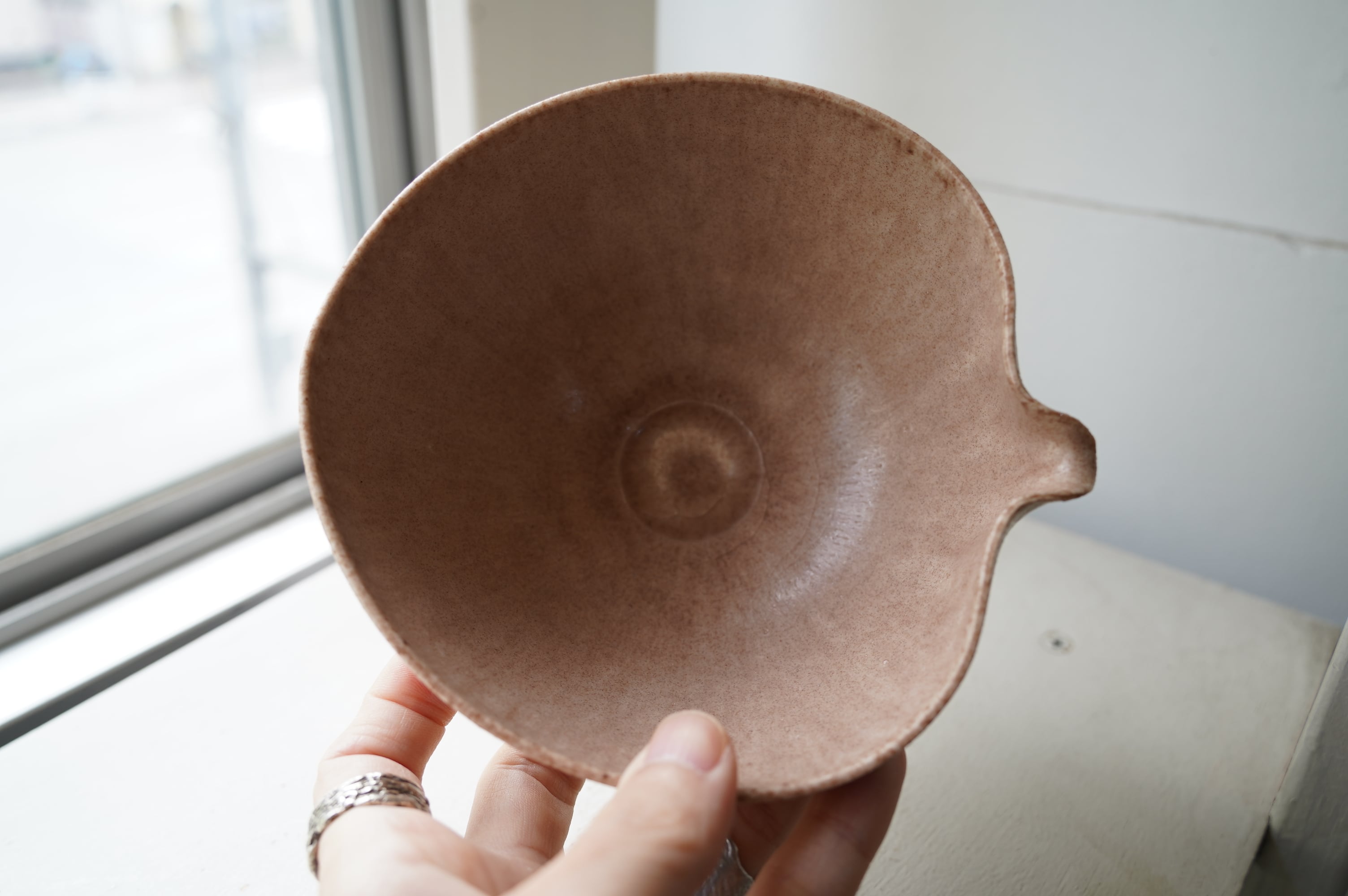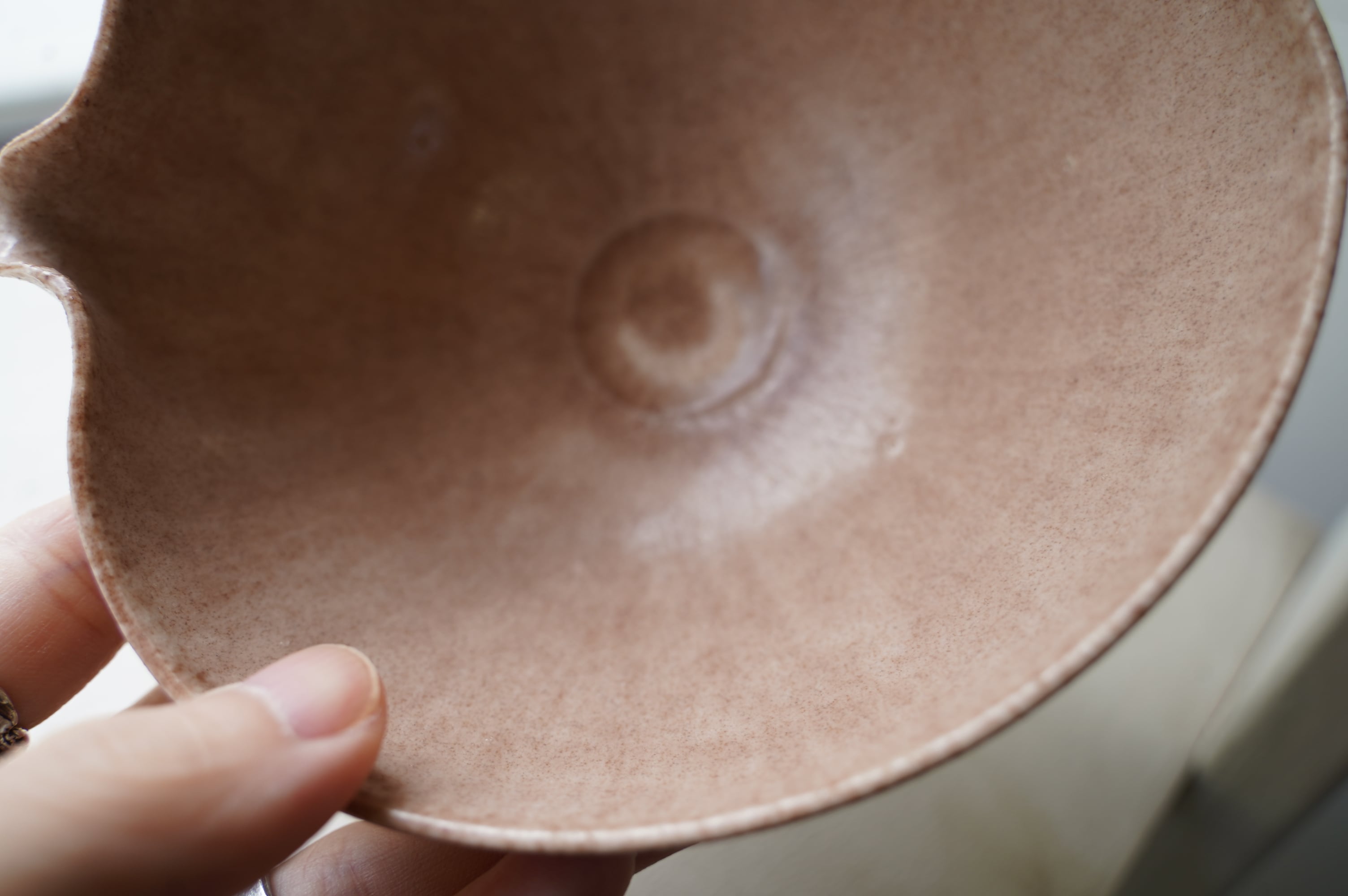 「紅磁」というオリジナルの技法で磁土を赤く発色させており、一般的な白磁などの持つ清涼で硬質なイメージとはまた違う温かさや柔らかさを持つ作品を作っています。