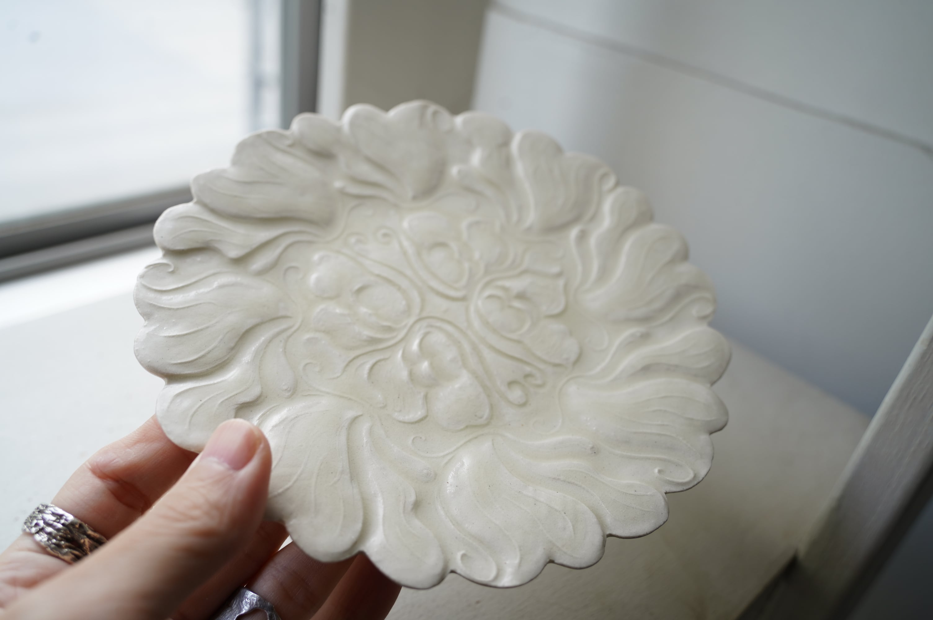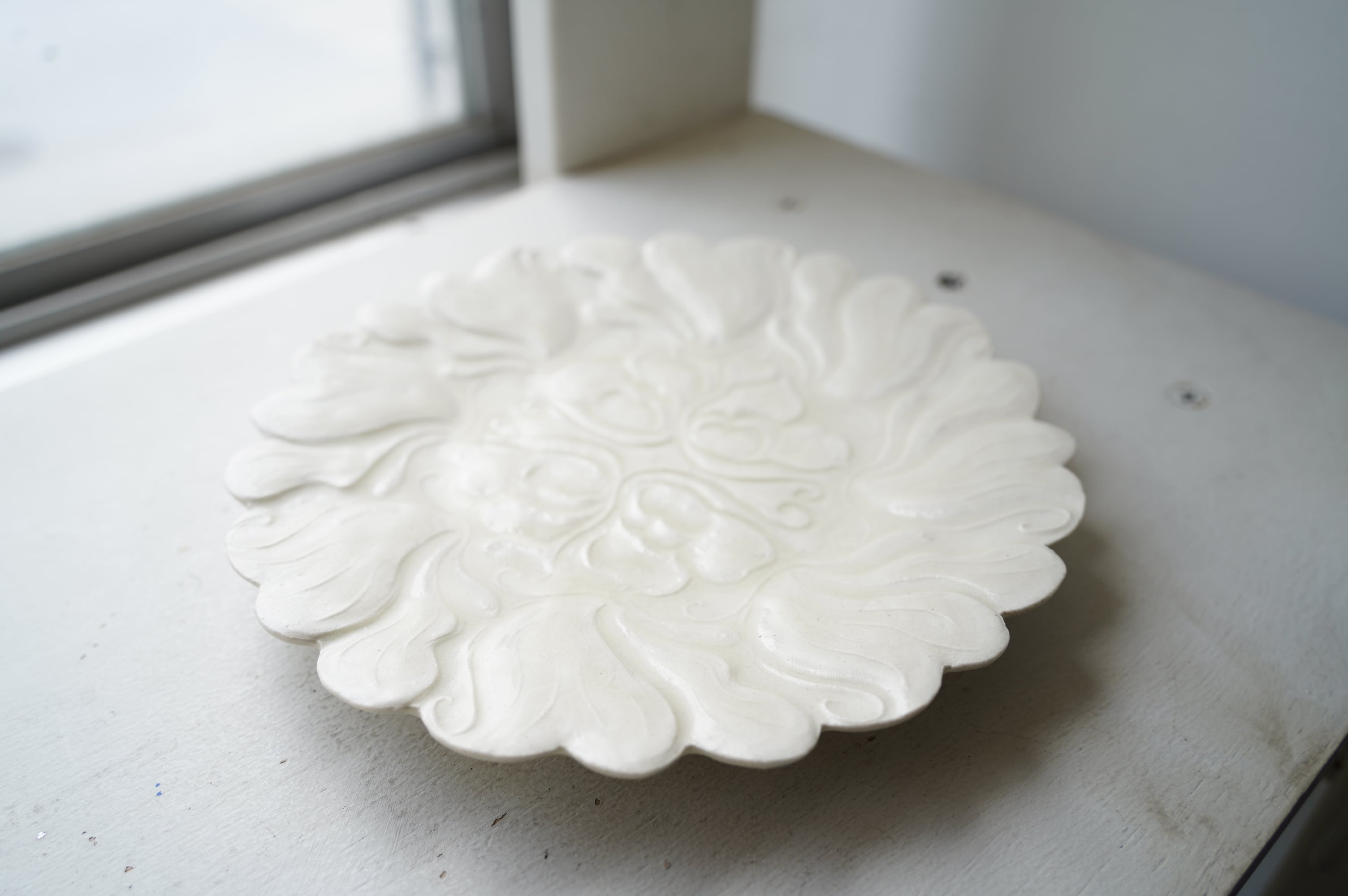 25 白瓷印花花蝶文皿 鈎一馬 Kazuma Magari