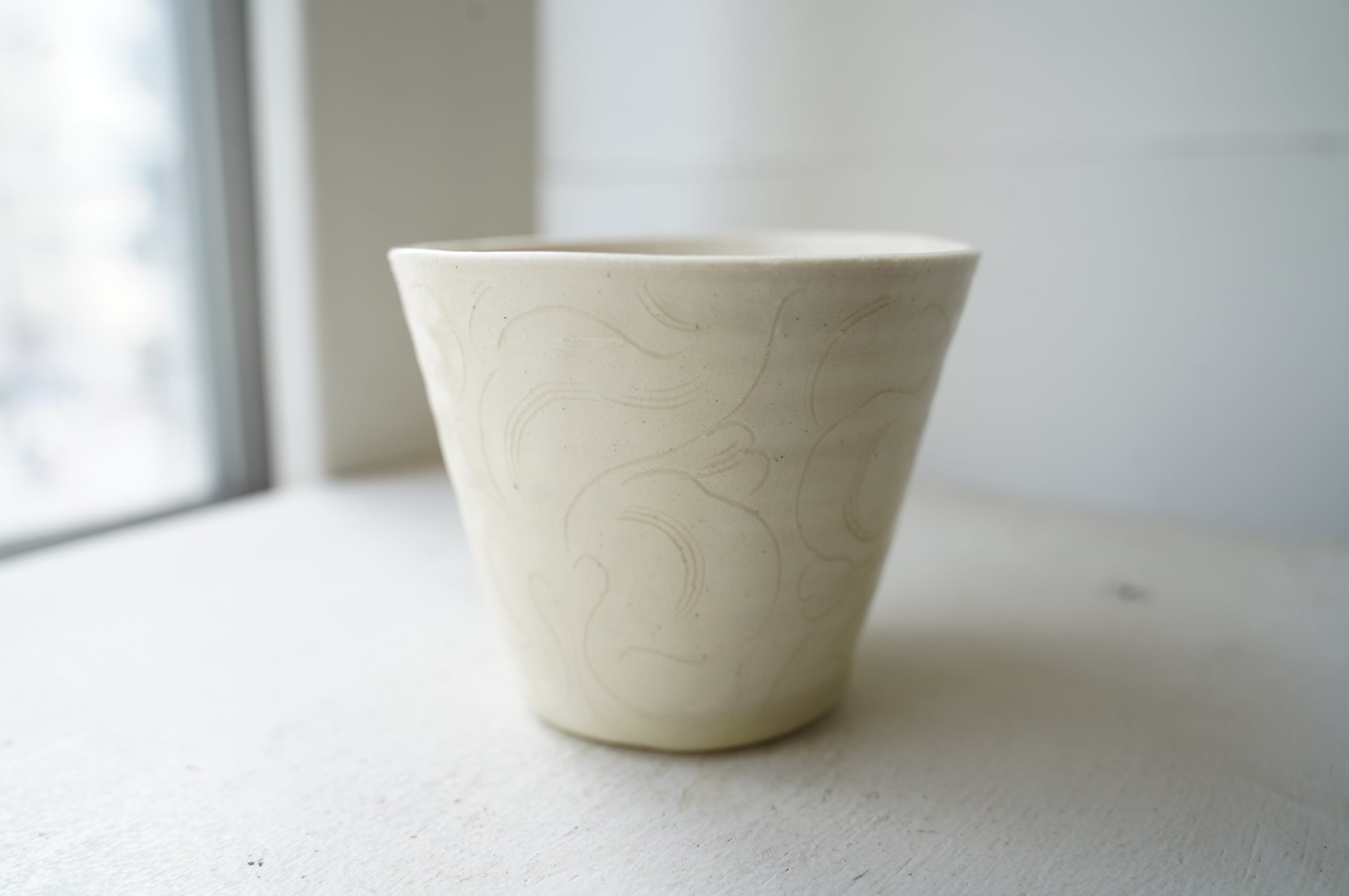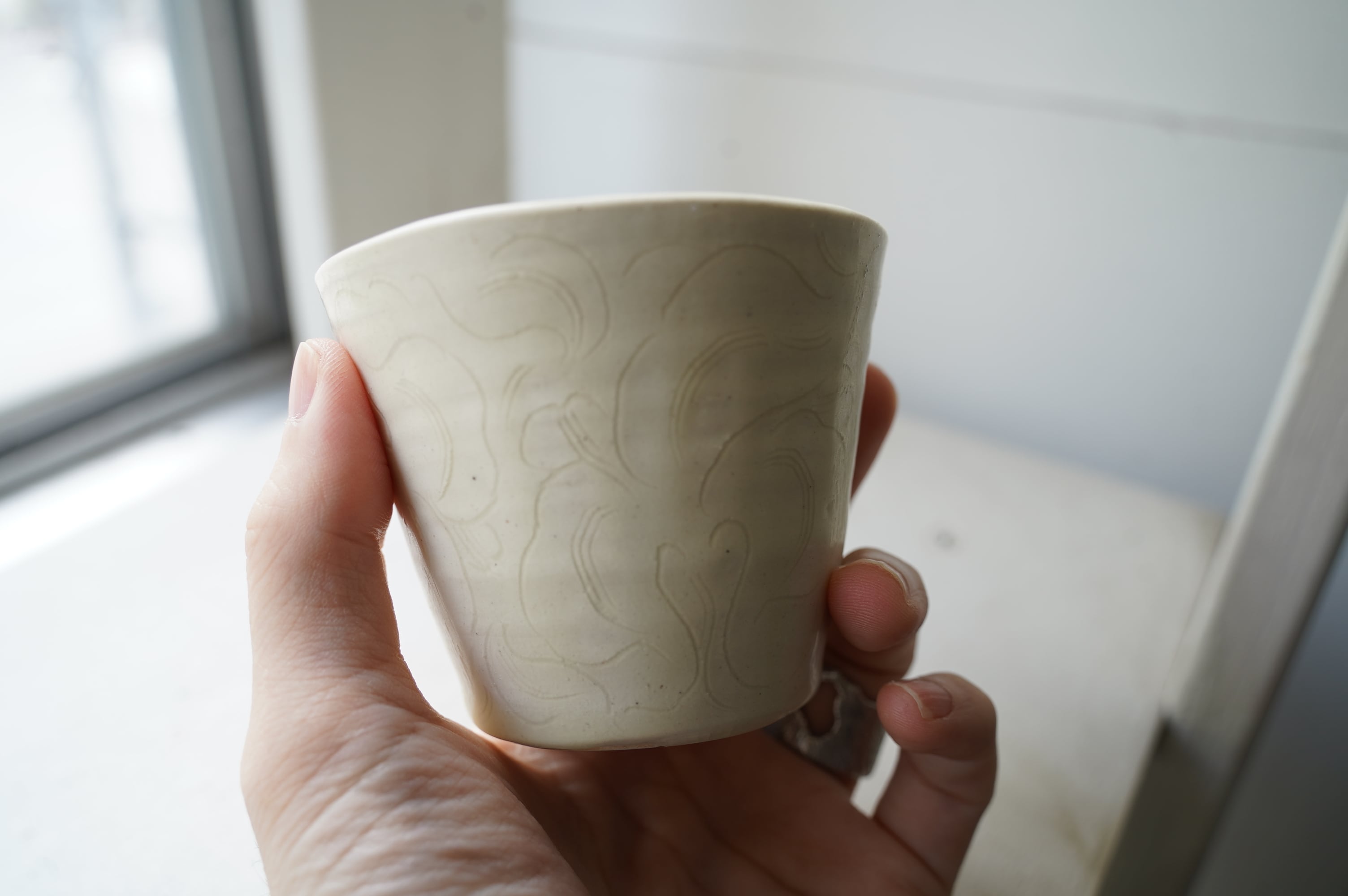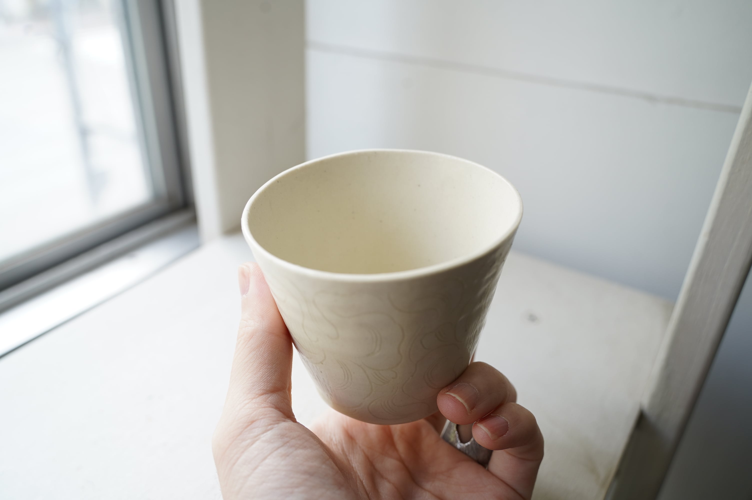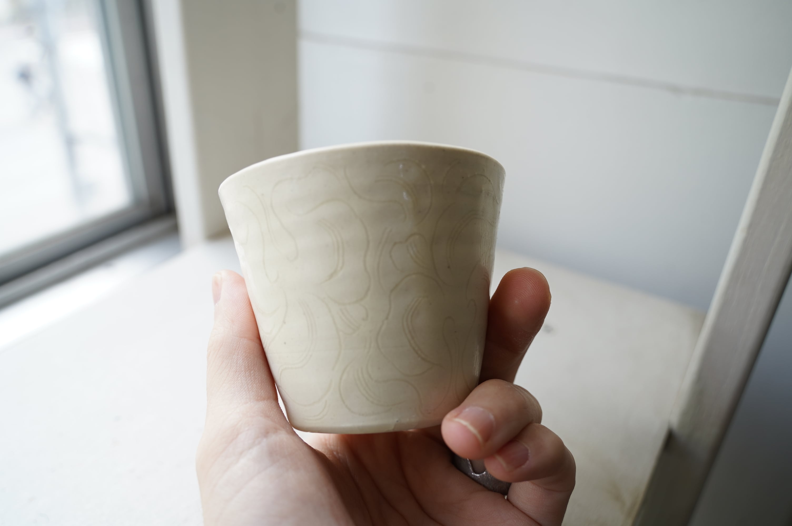 27 白瓷唐草文猪口 鈎一馬 Kazuma Magari