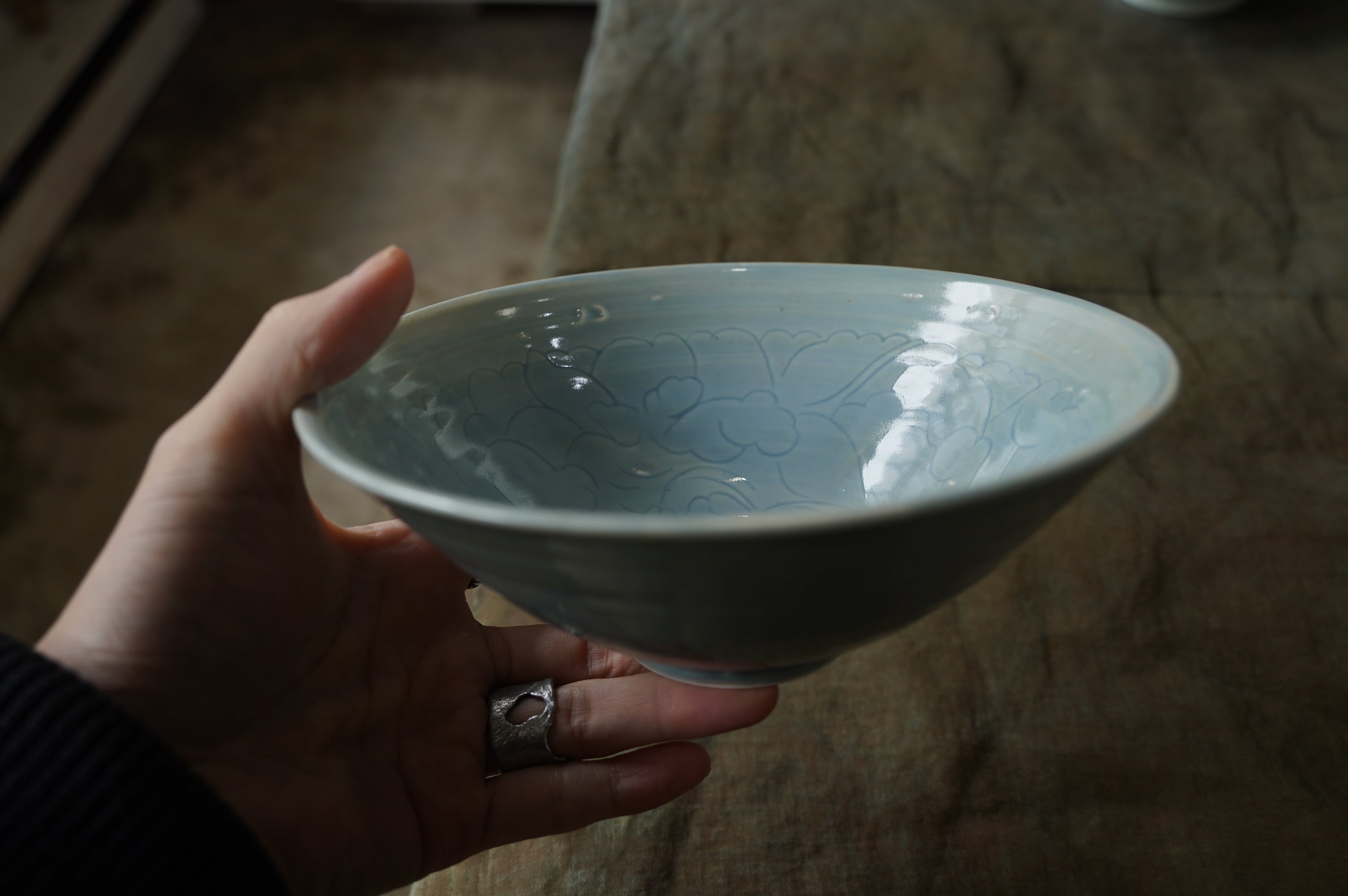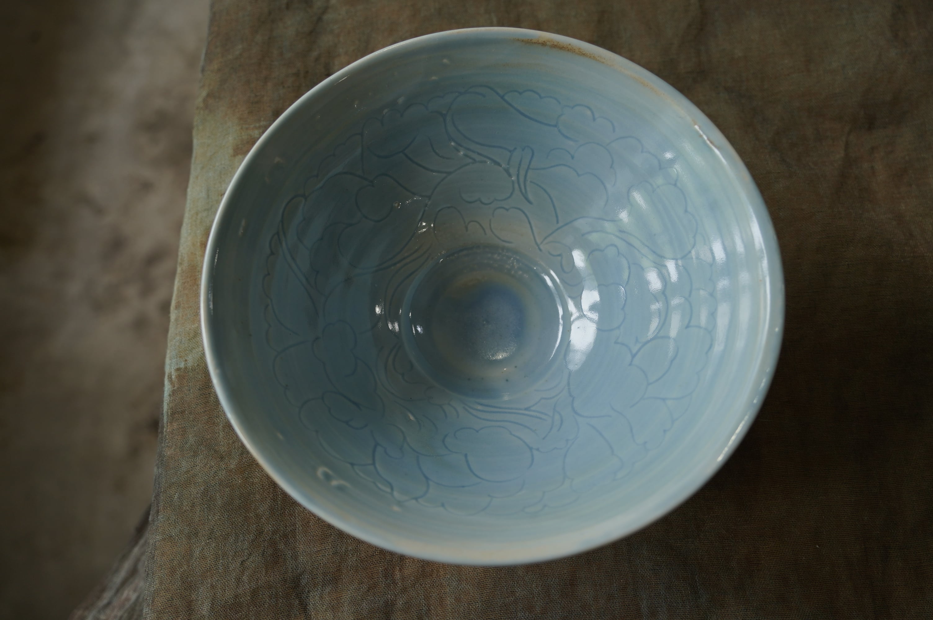 km11 白瑠璃牡丹彫文鉢 川端まさみ Masami Kawabata 2