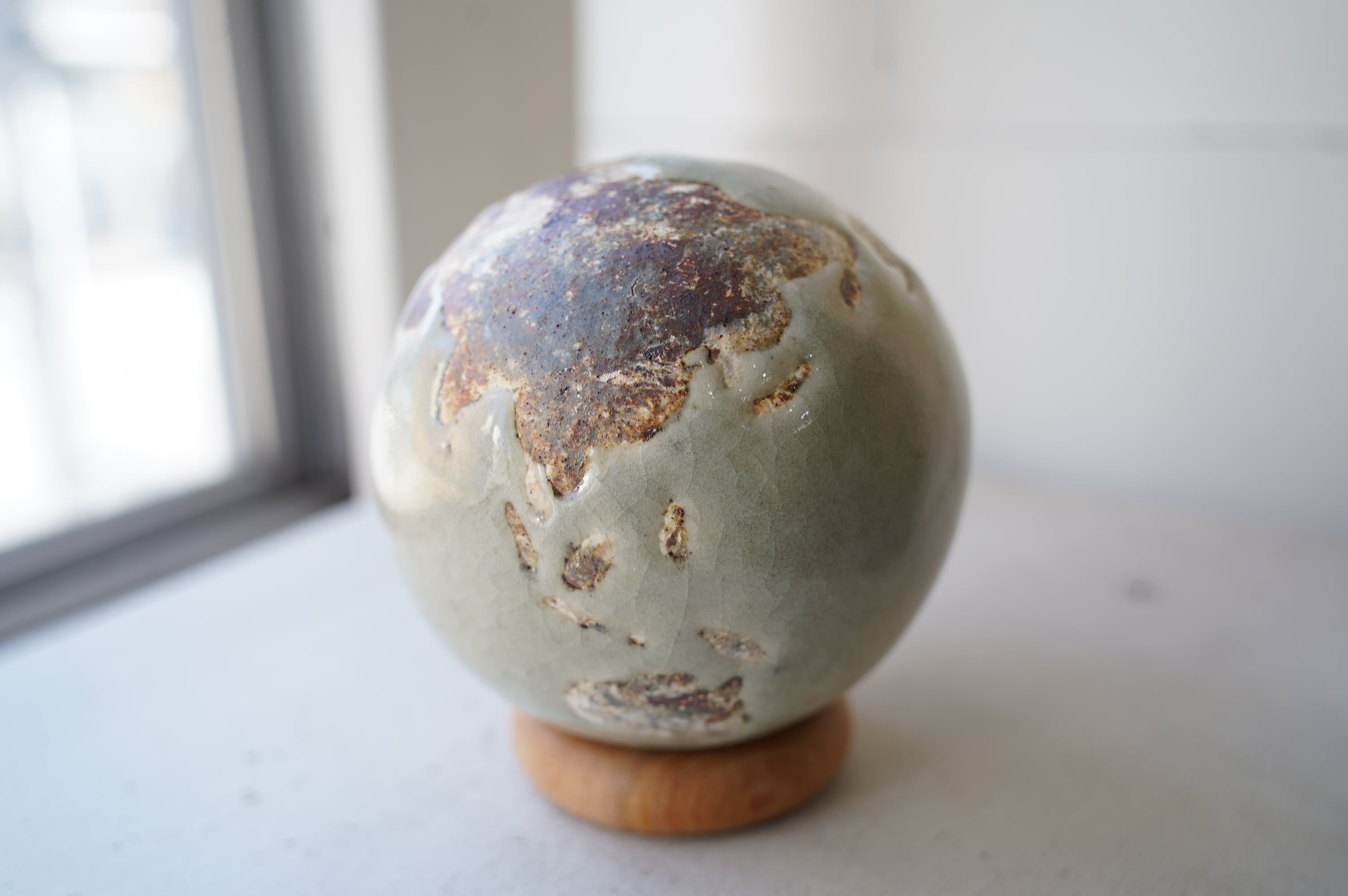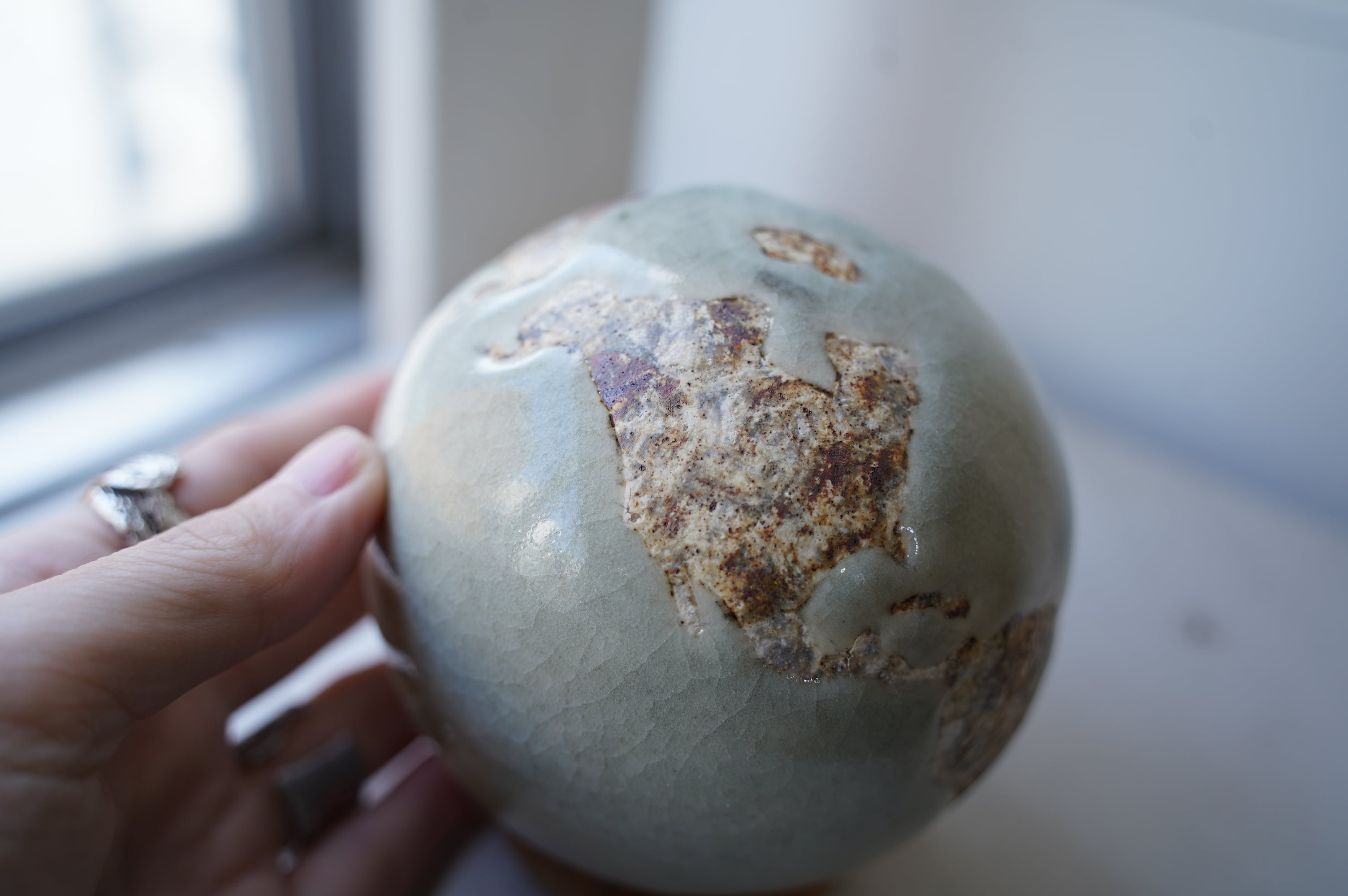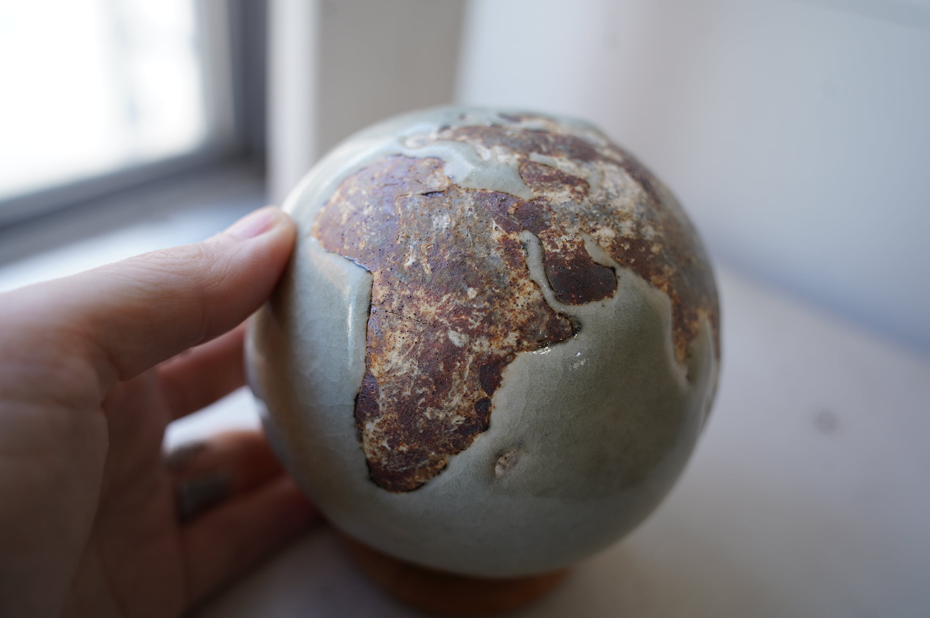 伊豆の原土を大陸の形に切り抜き丁寧に貼り付け焼いています。