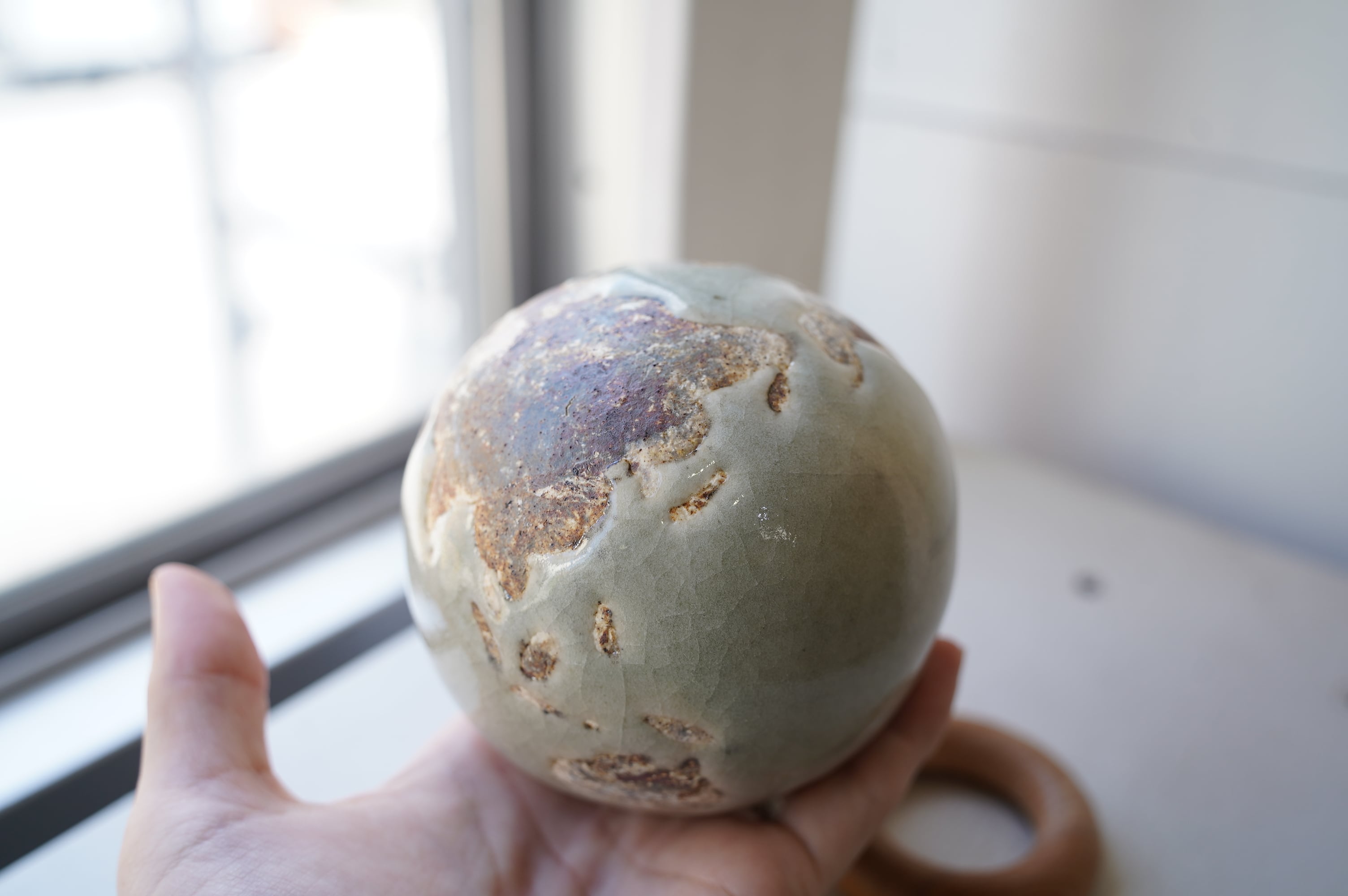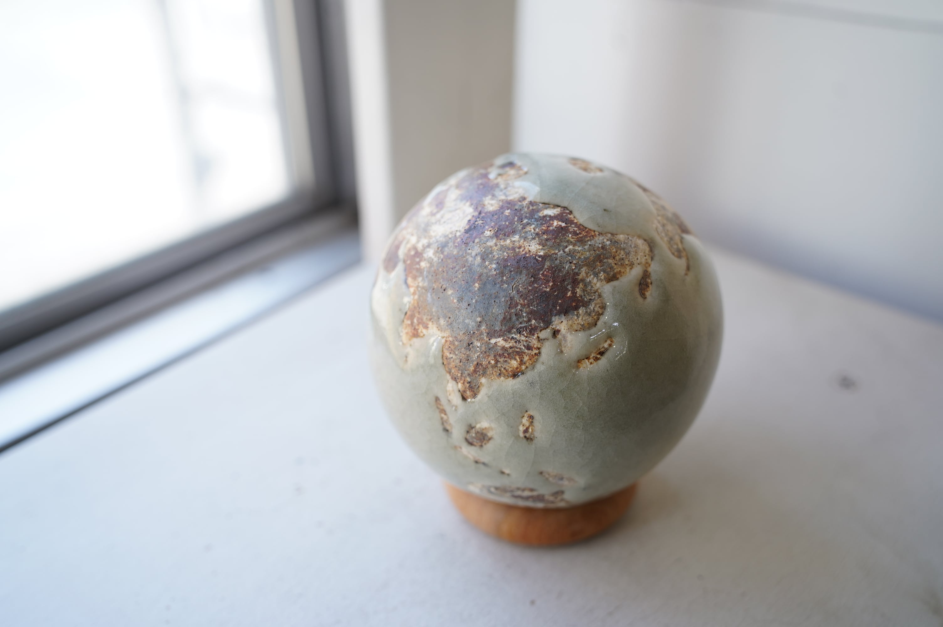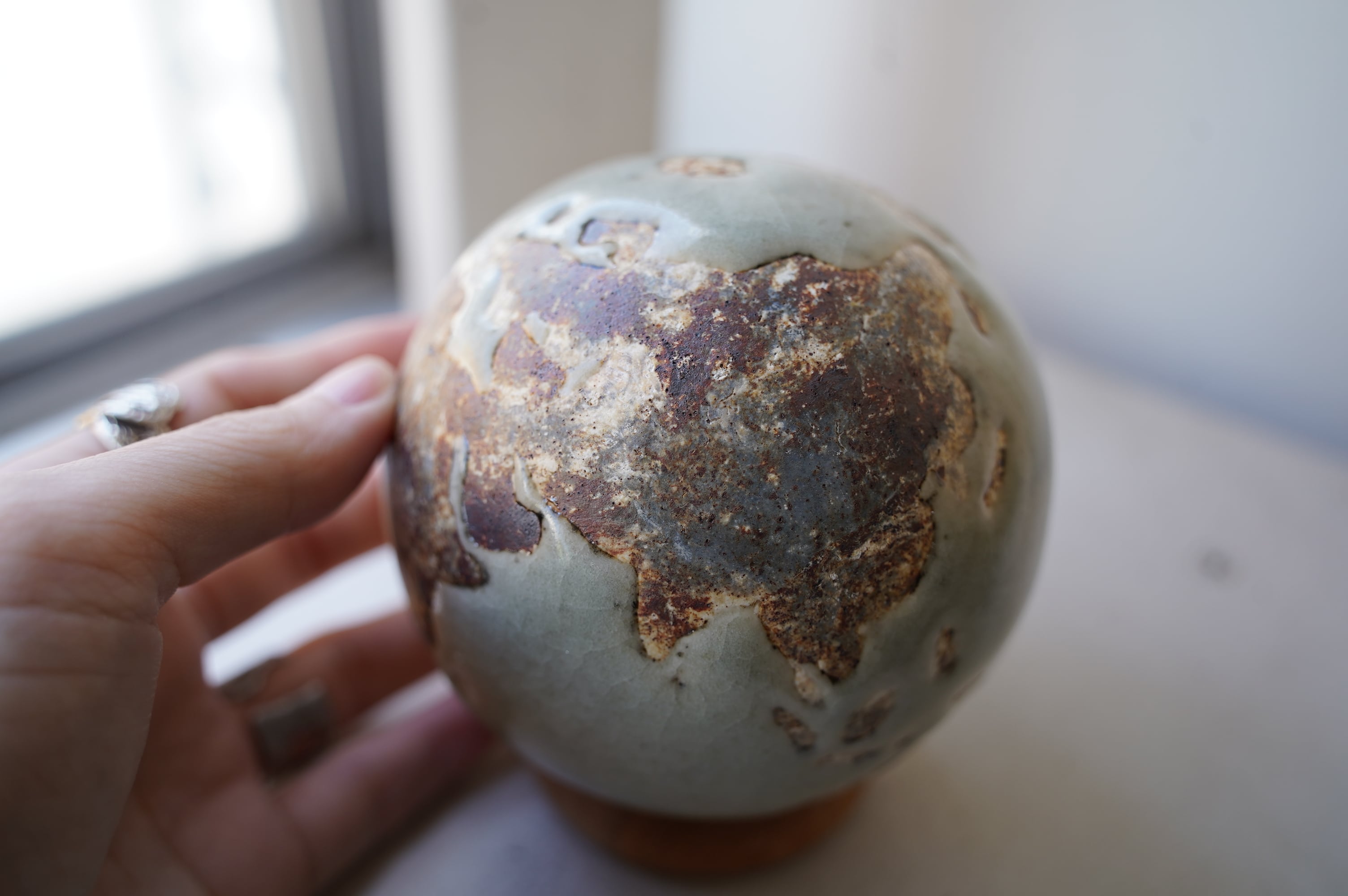 伊豆の原土を大陸の形に切り抜き丁寧に貼り付け焼いています。
