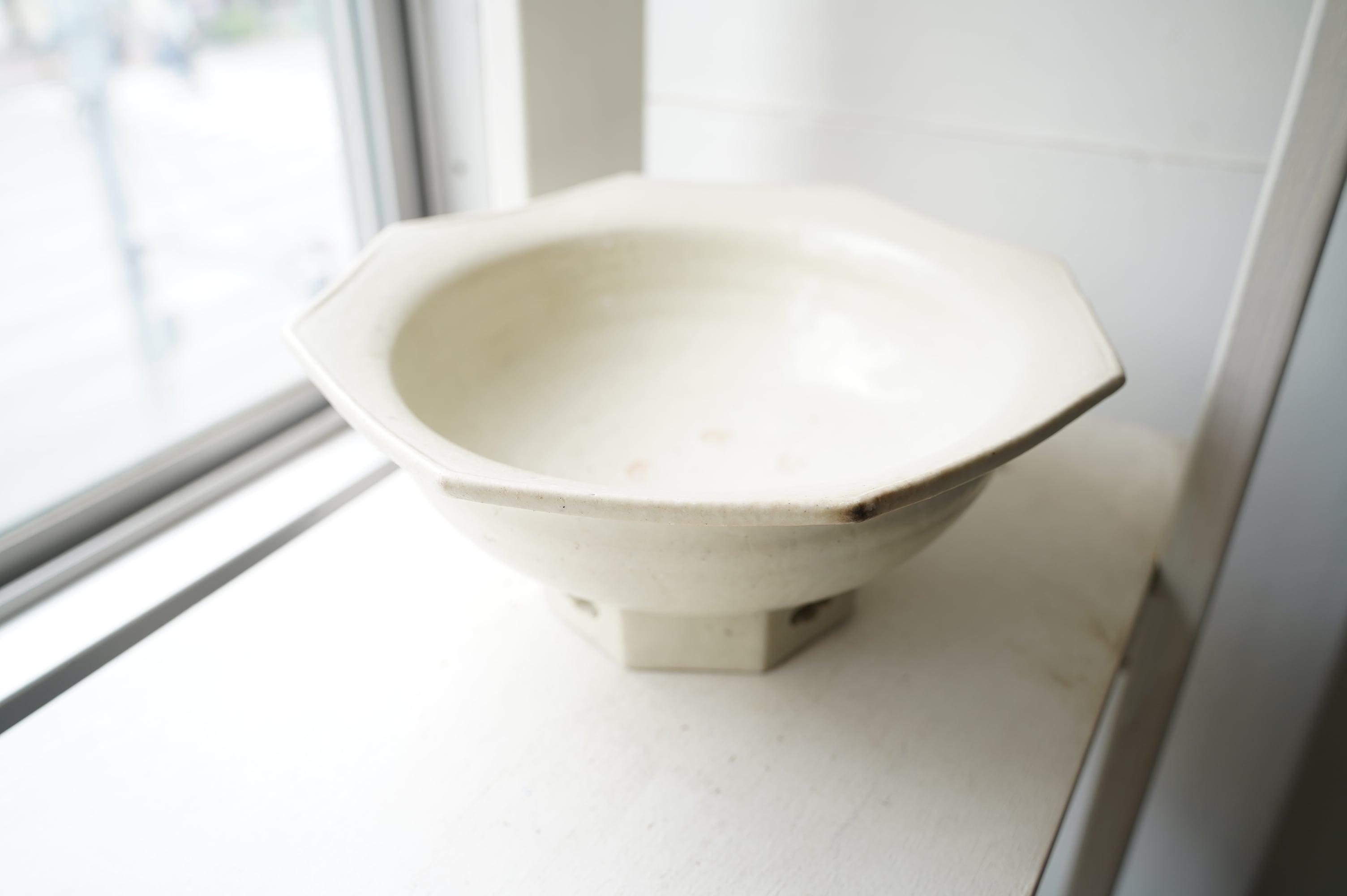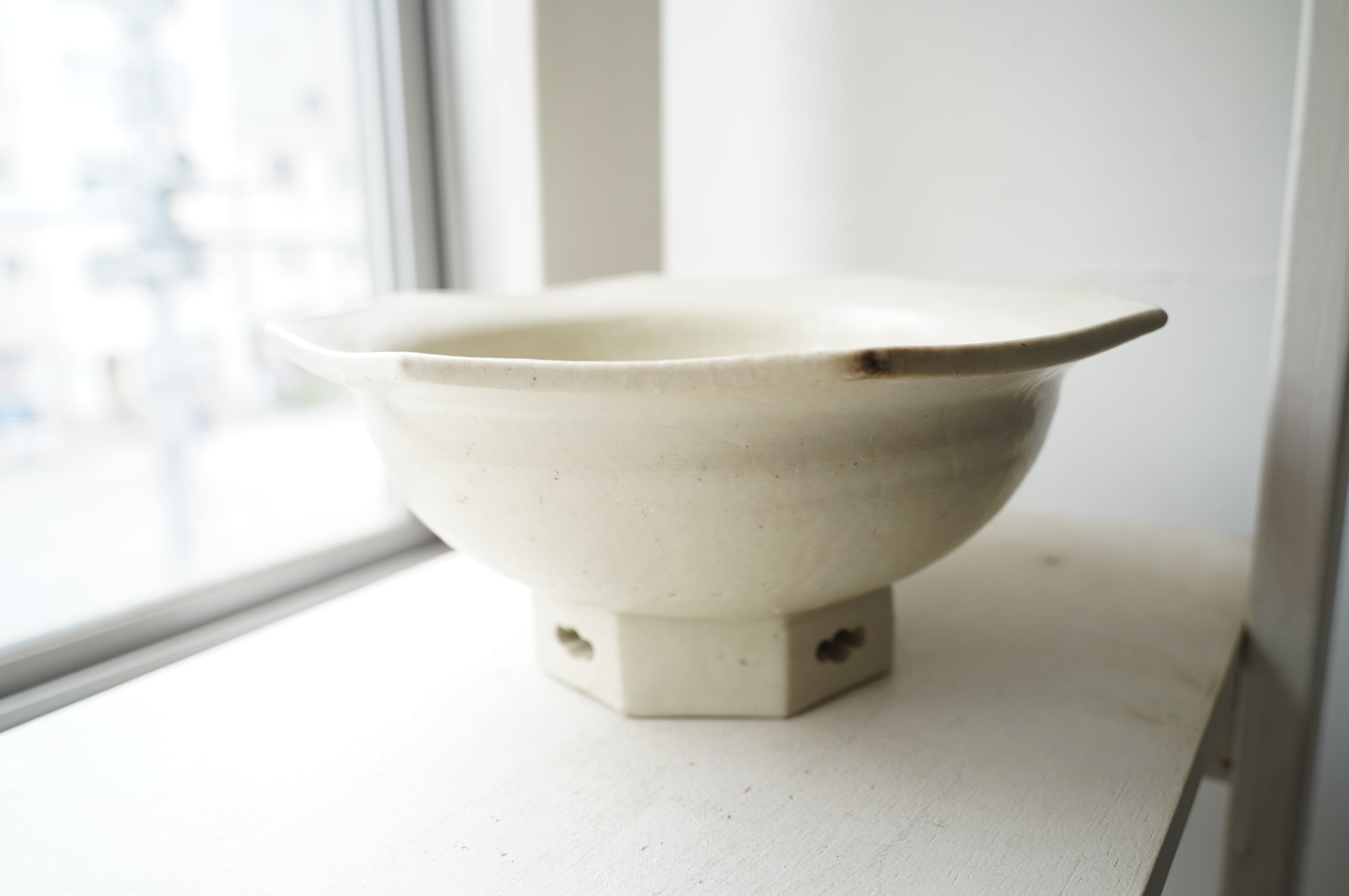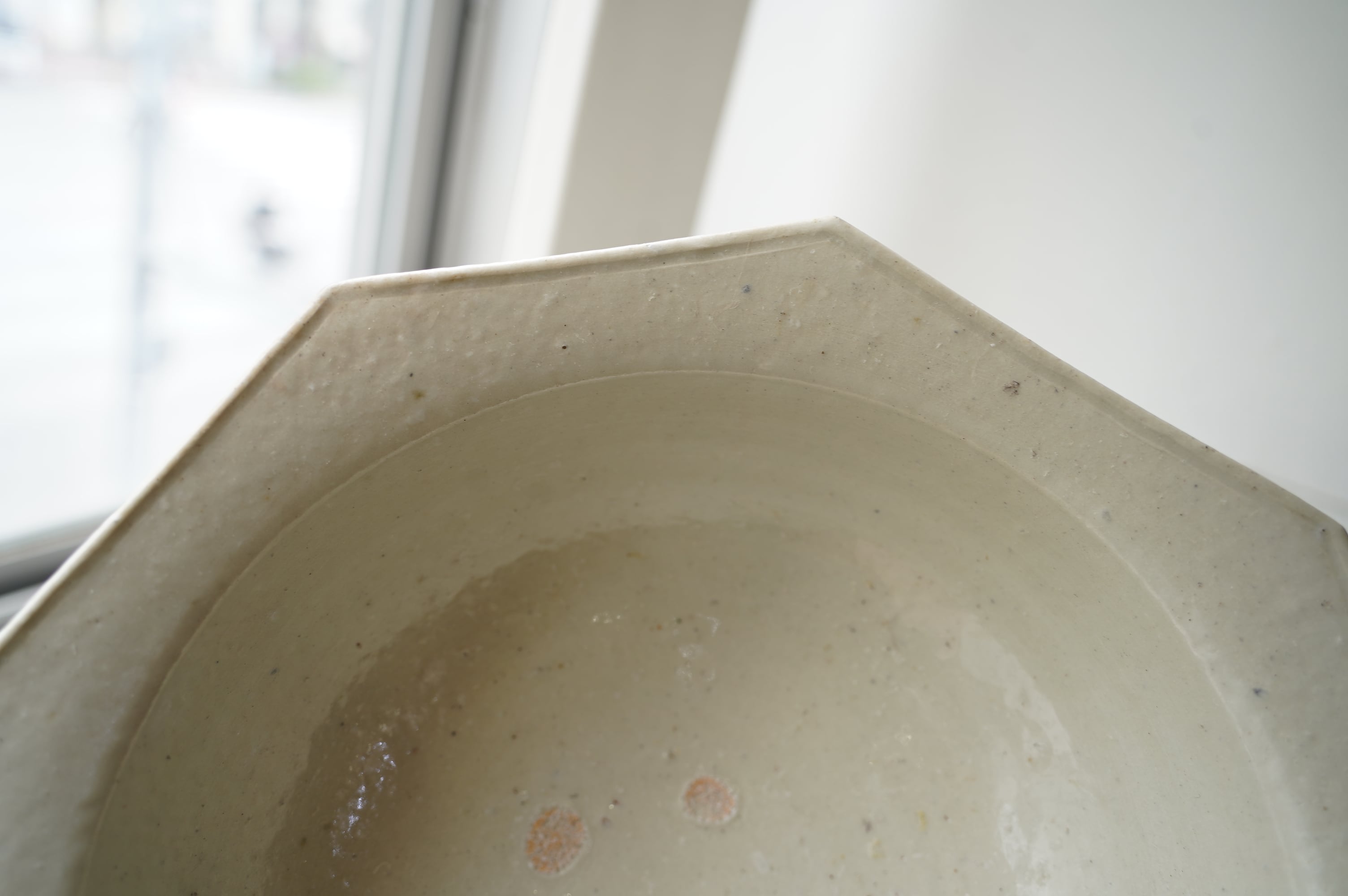 こちらは堅手という焼き〆とは違う磁器の作品ですが灰がかかる表情に富んでいます。