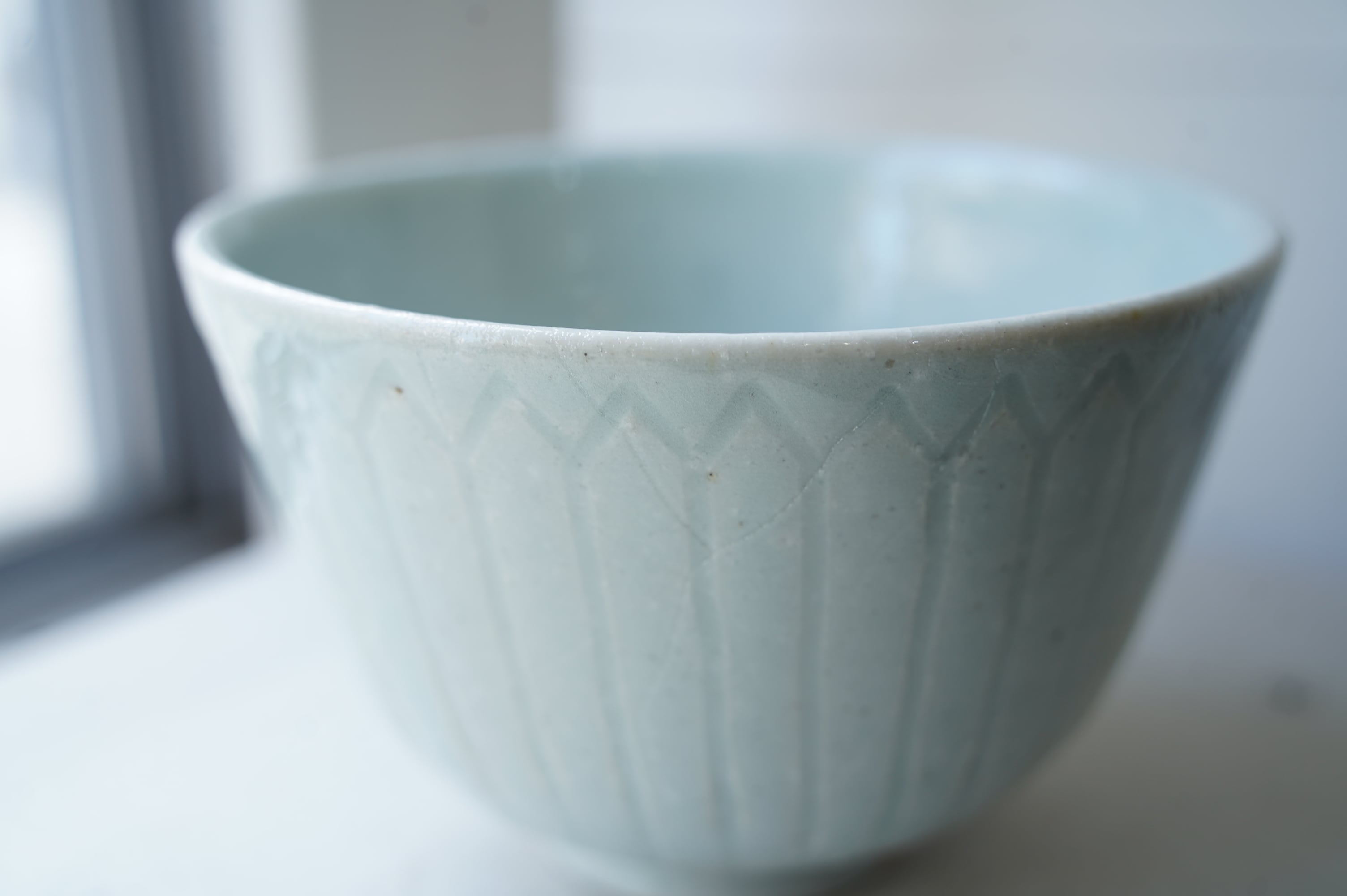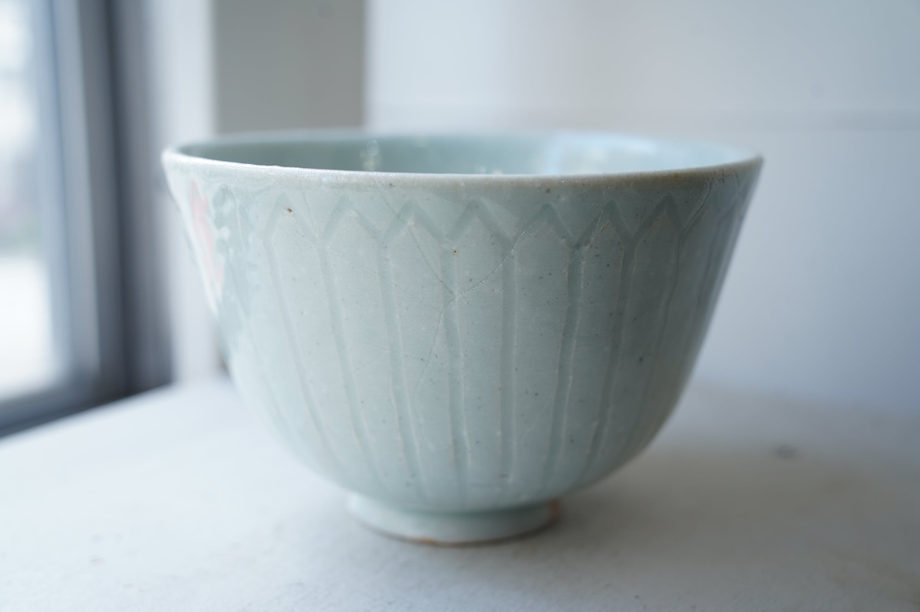 こちらは堅手という焼き〆とは違う磁器の作品ですが灰がかかる表情に富んでいます。