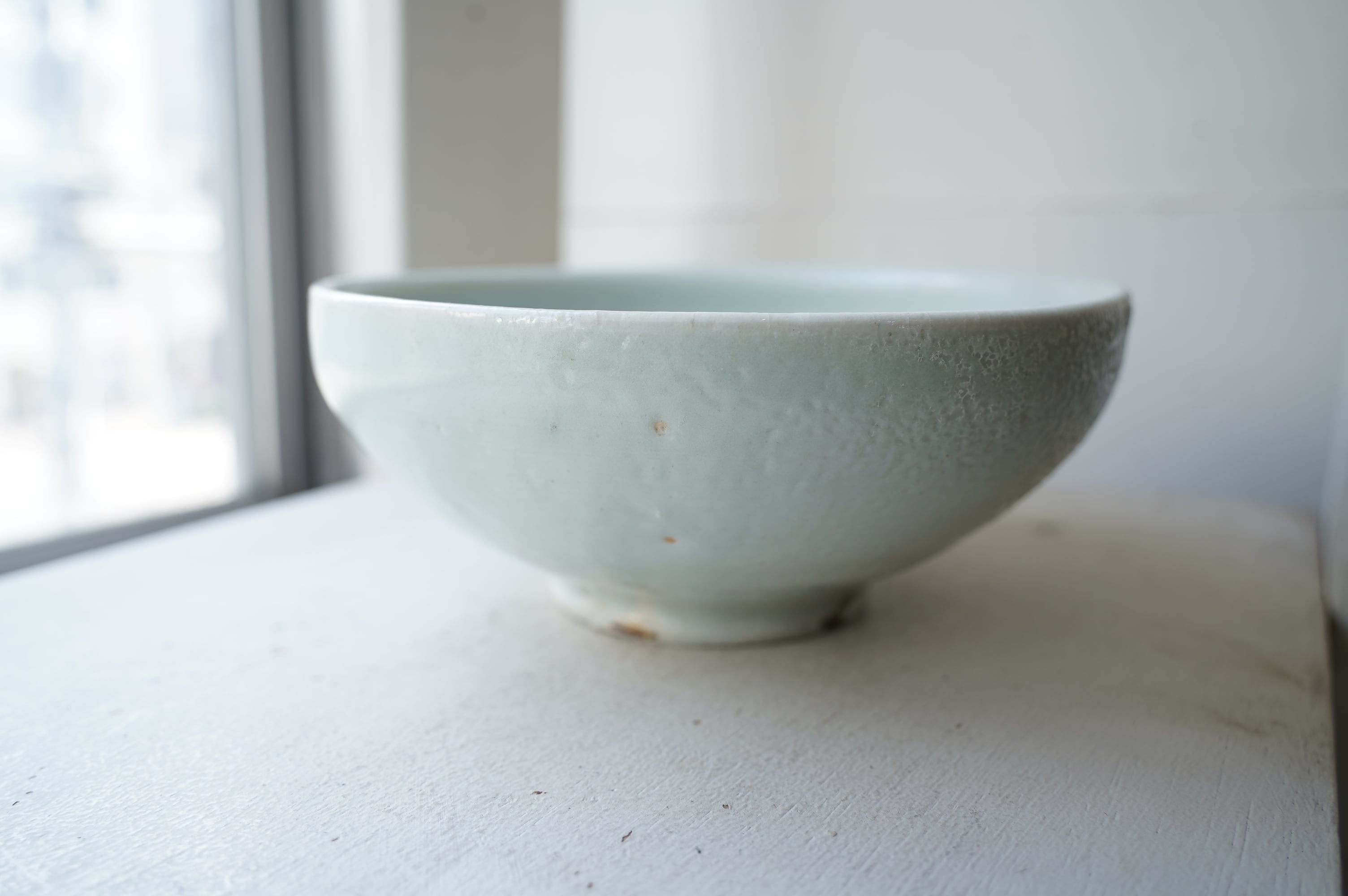 こちらは堅手という焼き〆とは違う磁器の作品ですが灰がかかる表情に富んでいます。