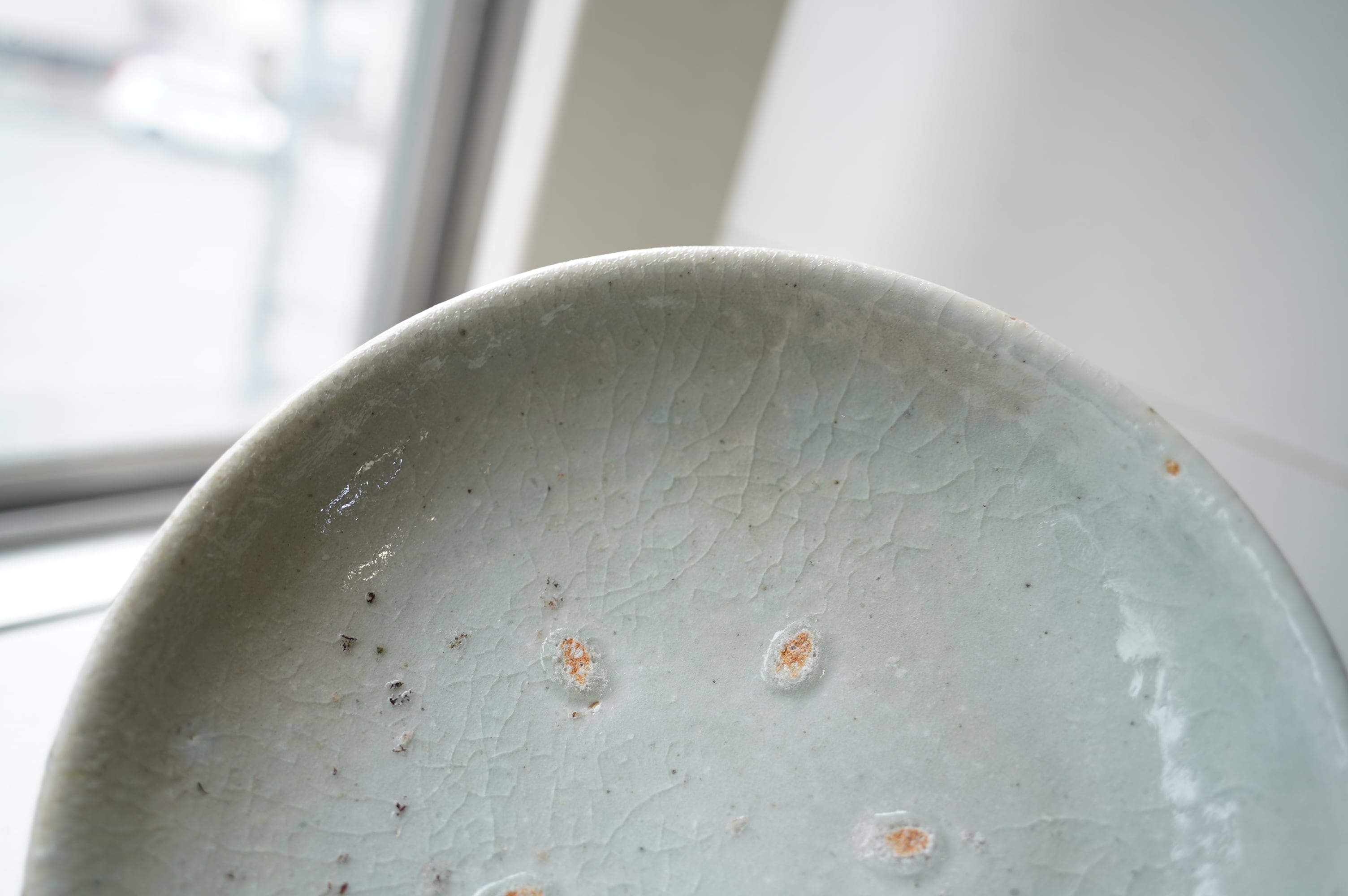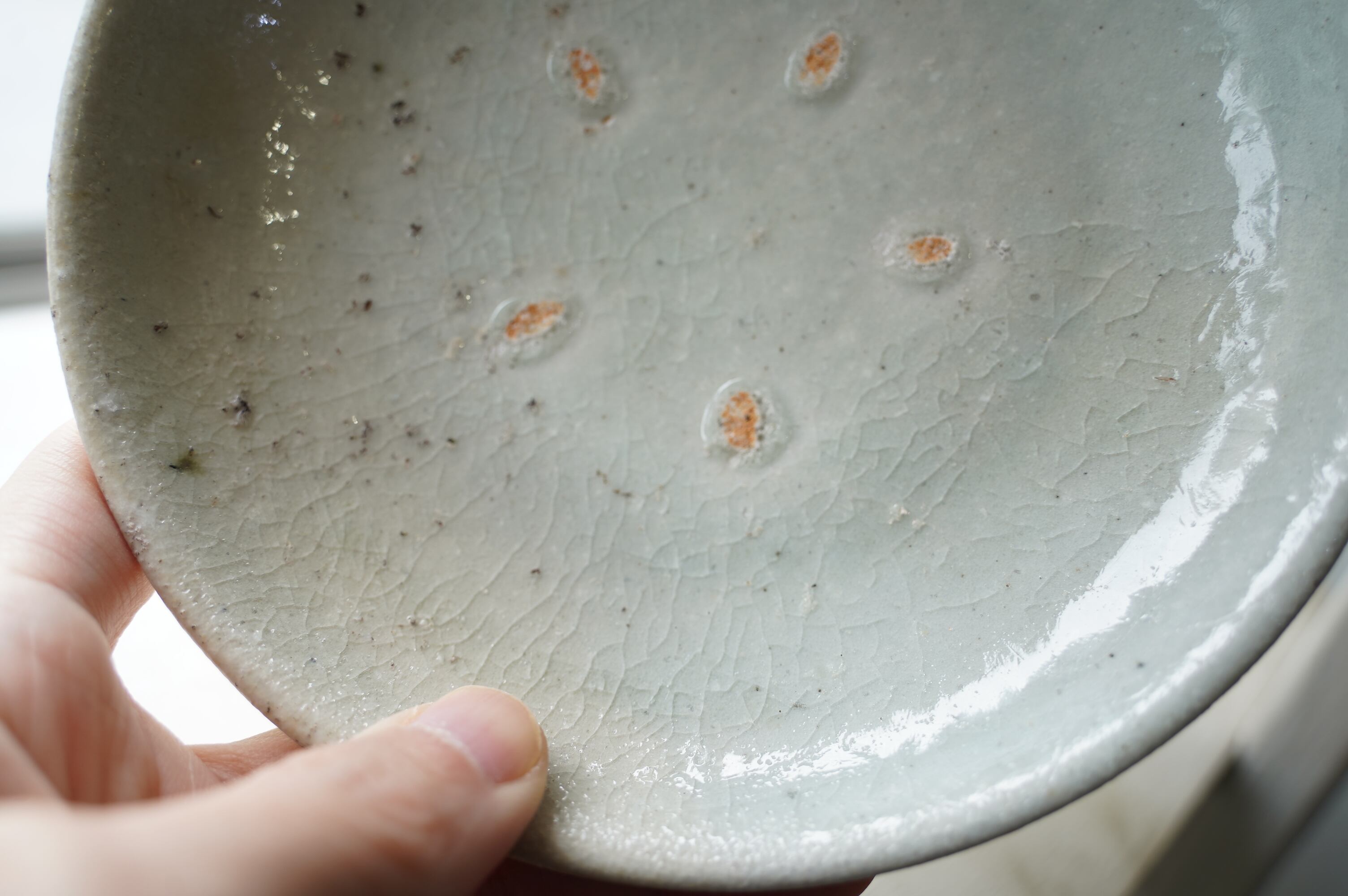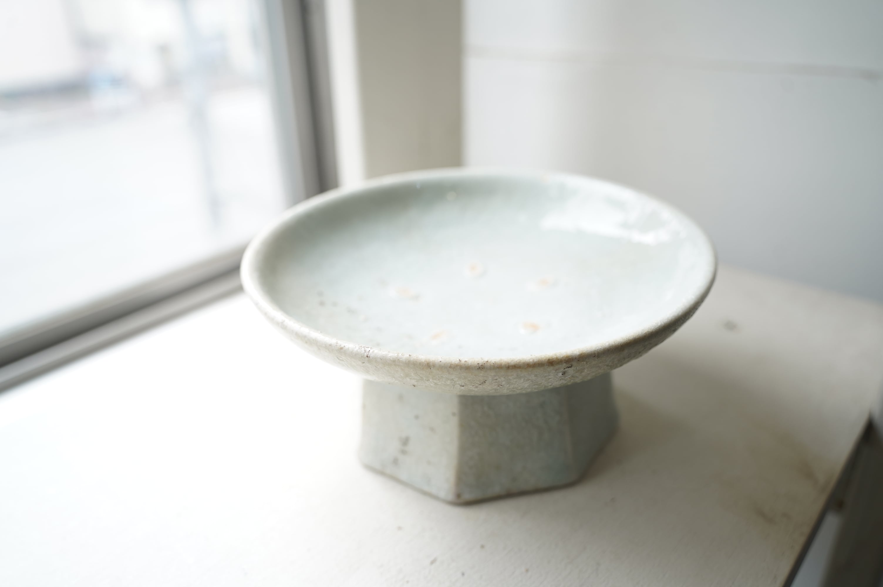 こちらは堅手という焼き〆とは違う磁器の作品ですが灰がかかる表情に富んでいます。