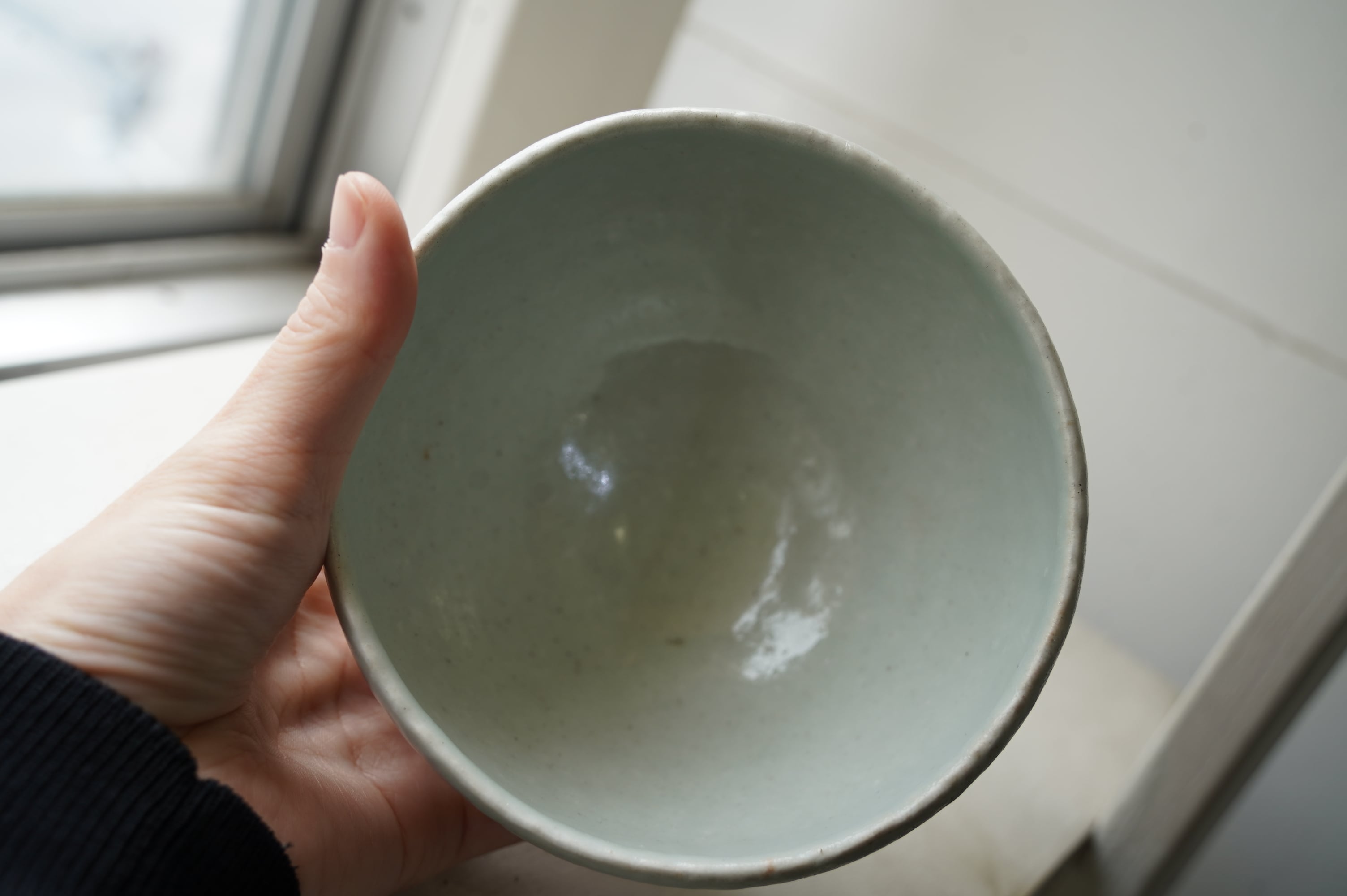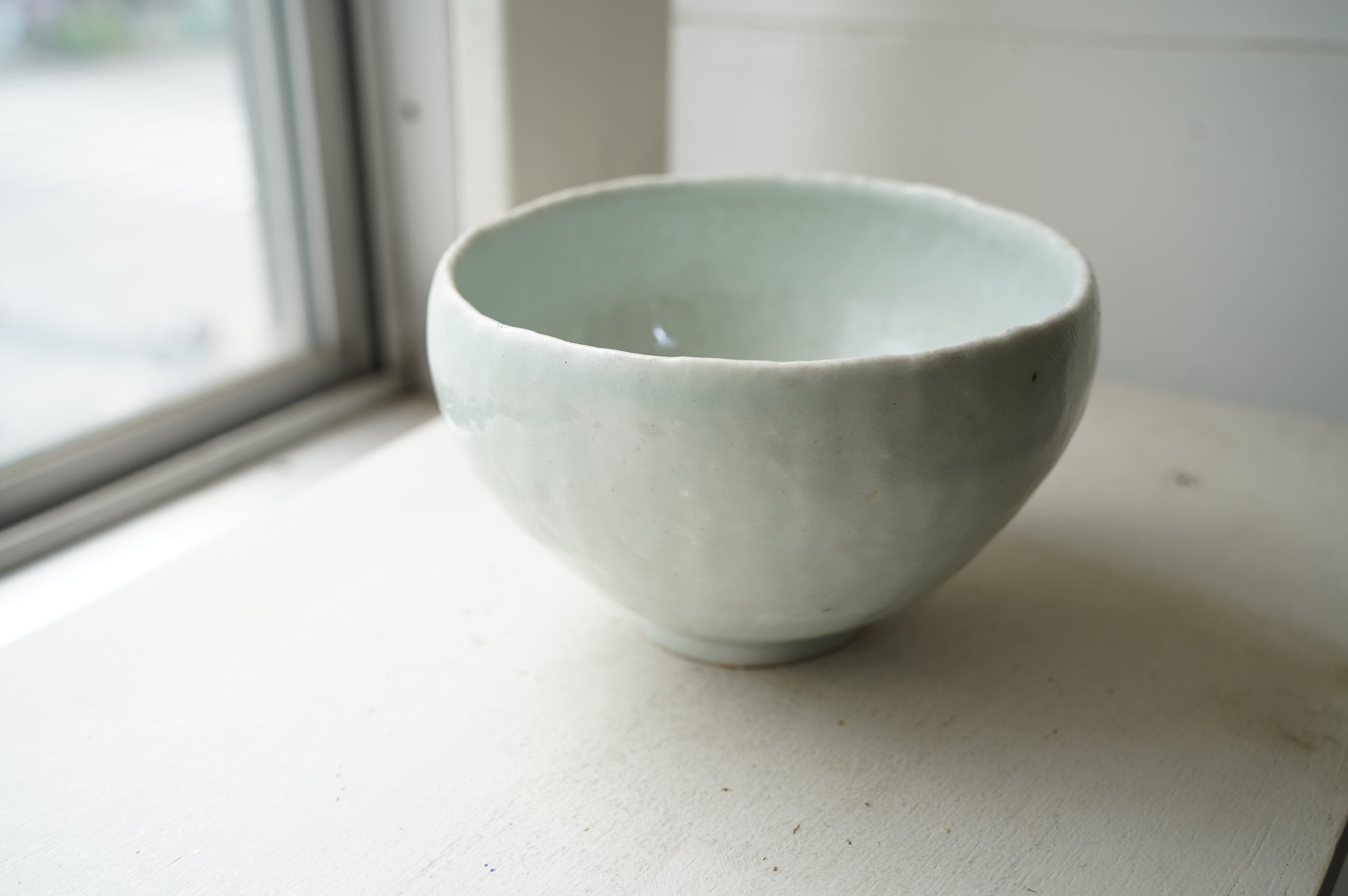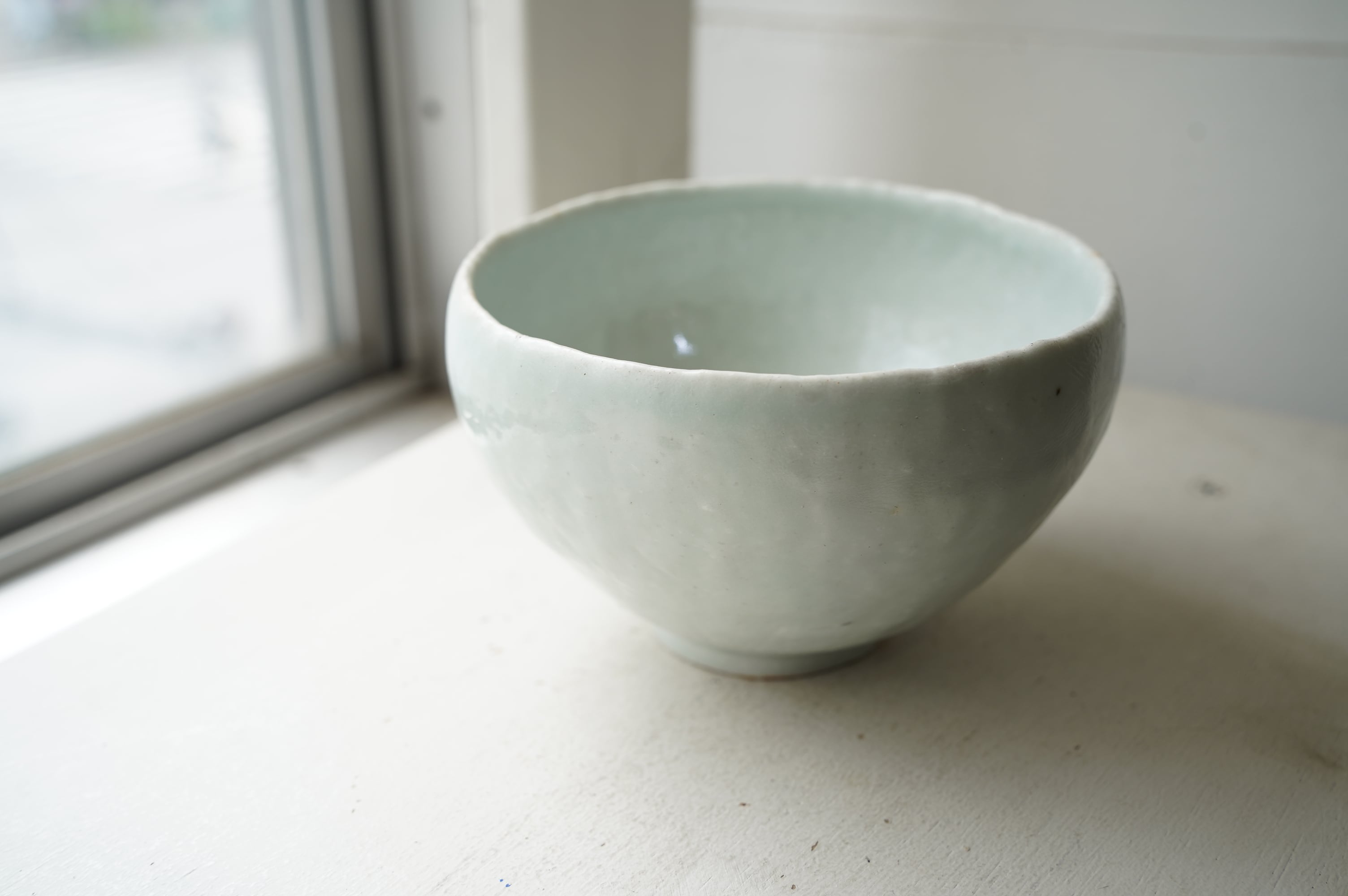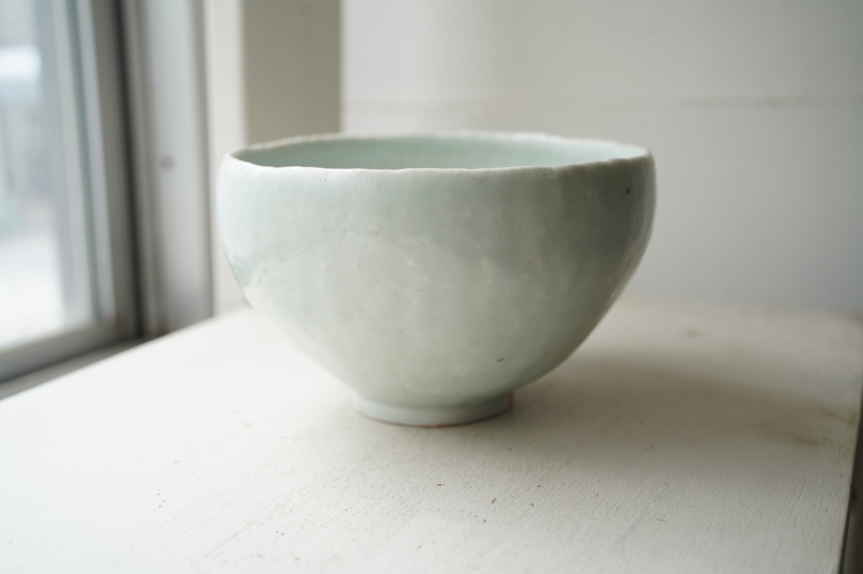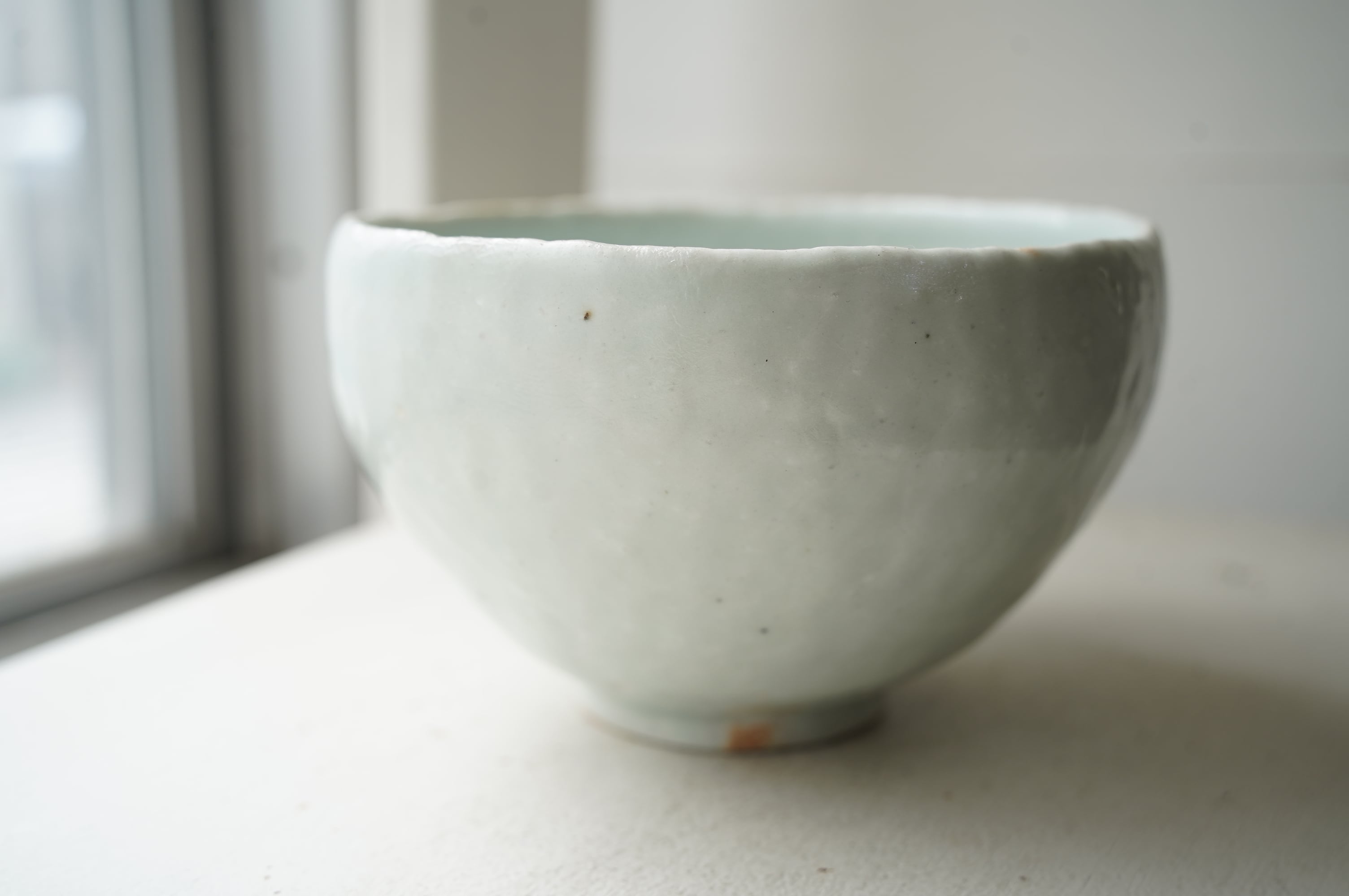 こちらは堅手という焼き〆とは違う磁器の作品ですが灰がかかる表情に富んでいます。