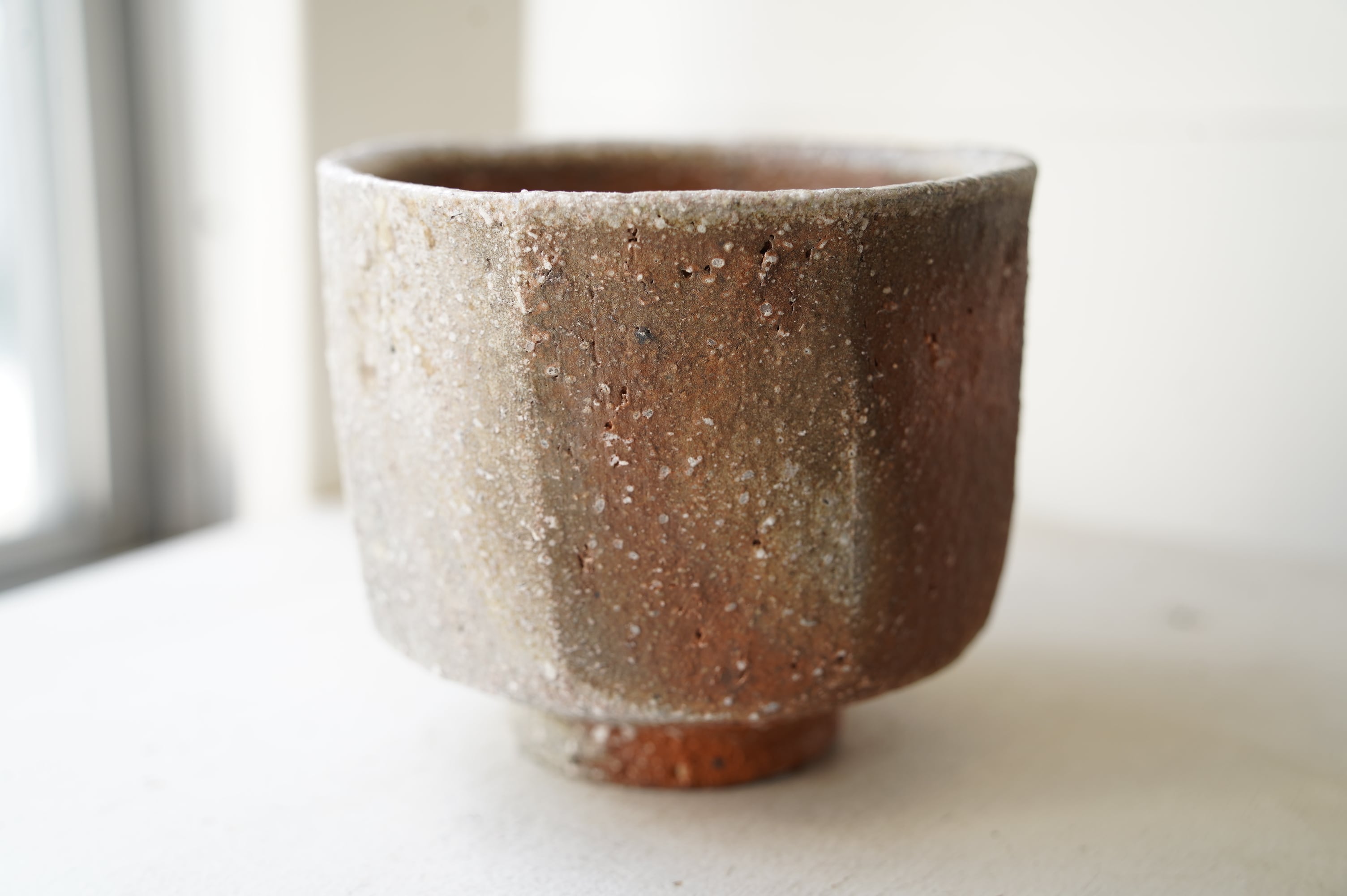 穴窯という原始的な薪窯で1週間もの長い時間じっくりと焼き上げられる作品達は固く焼き締まり、薪の灰や土そのものの表情が出ています。