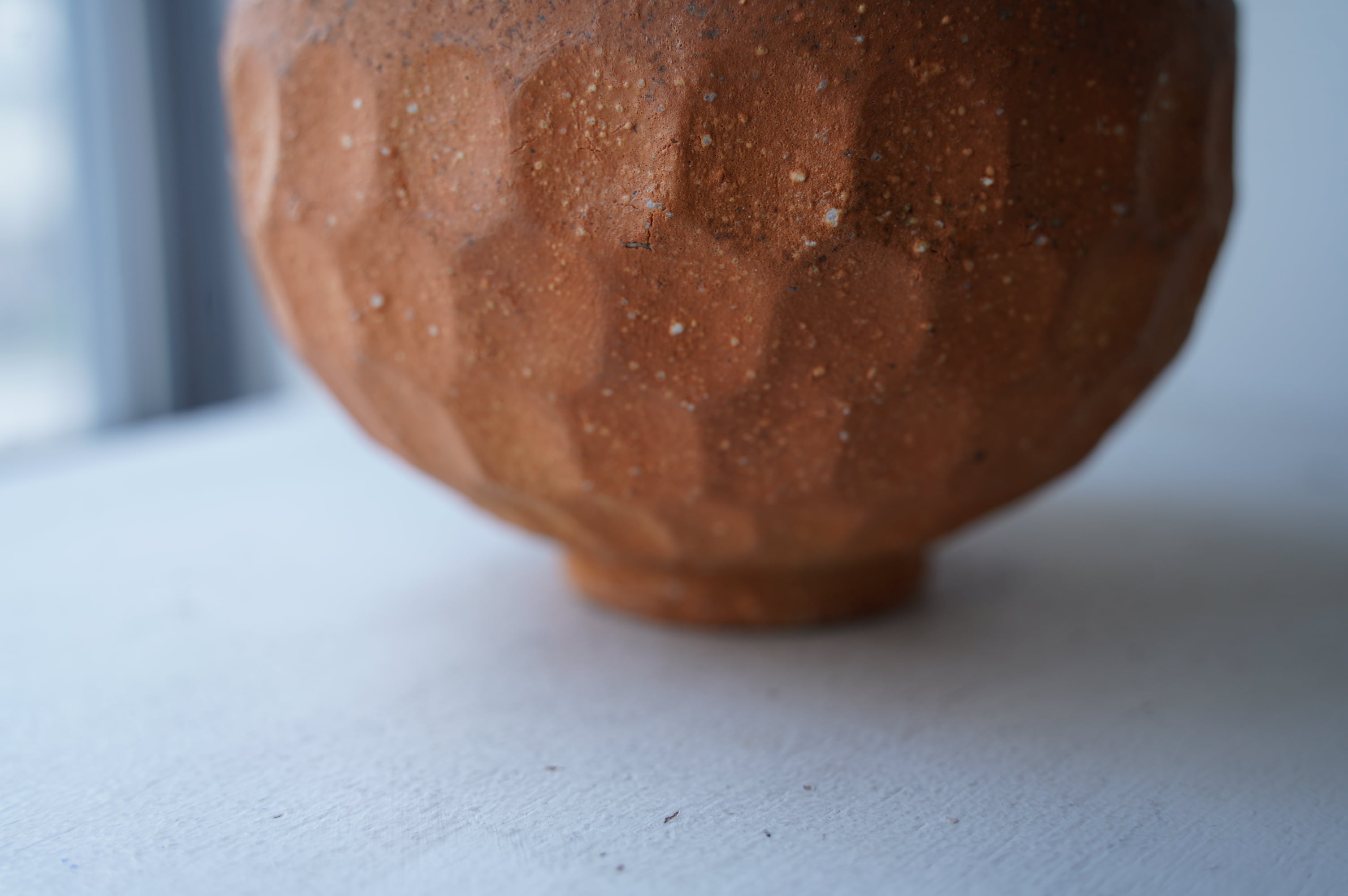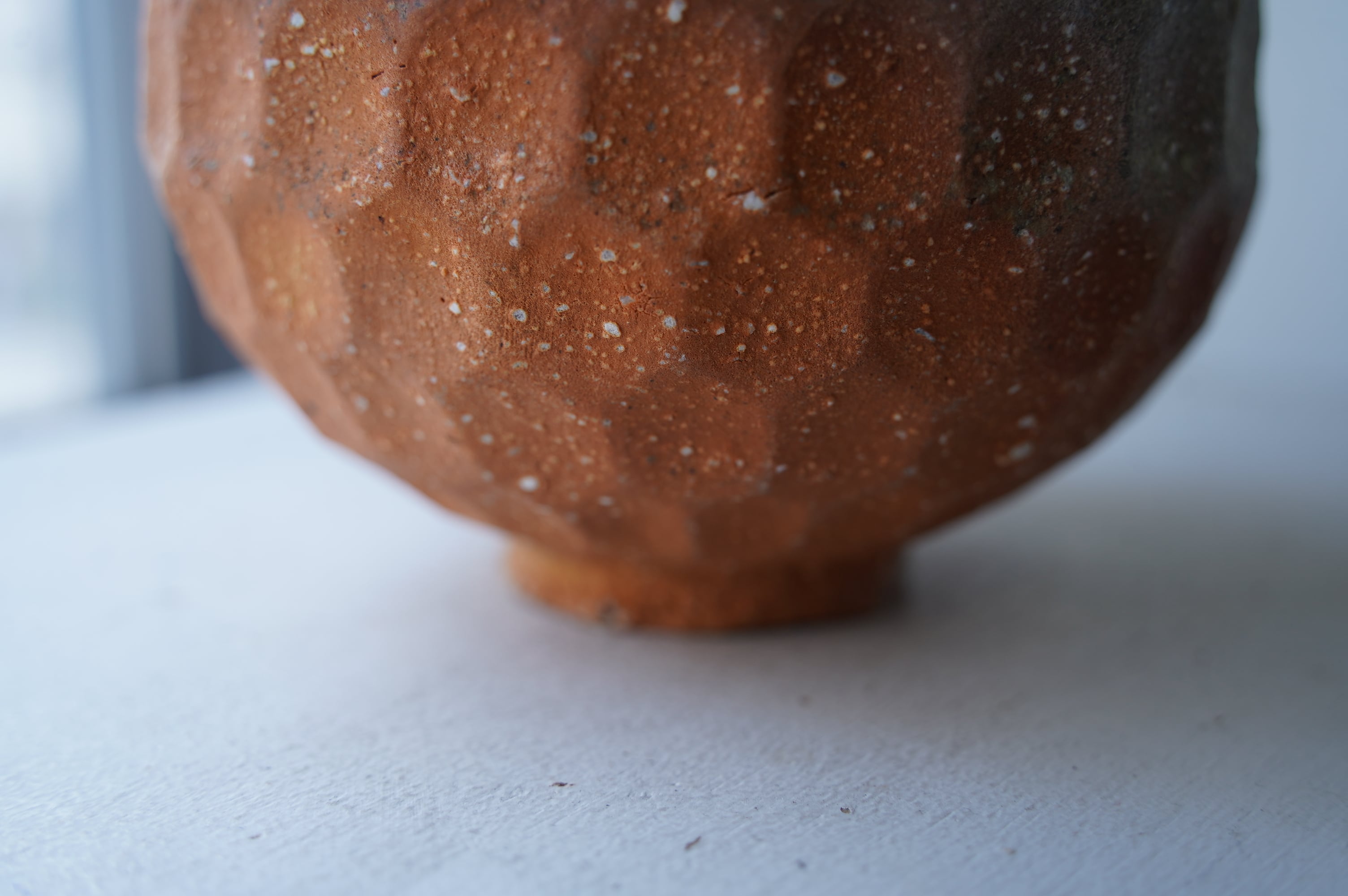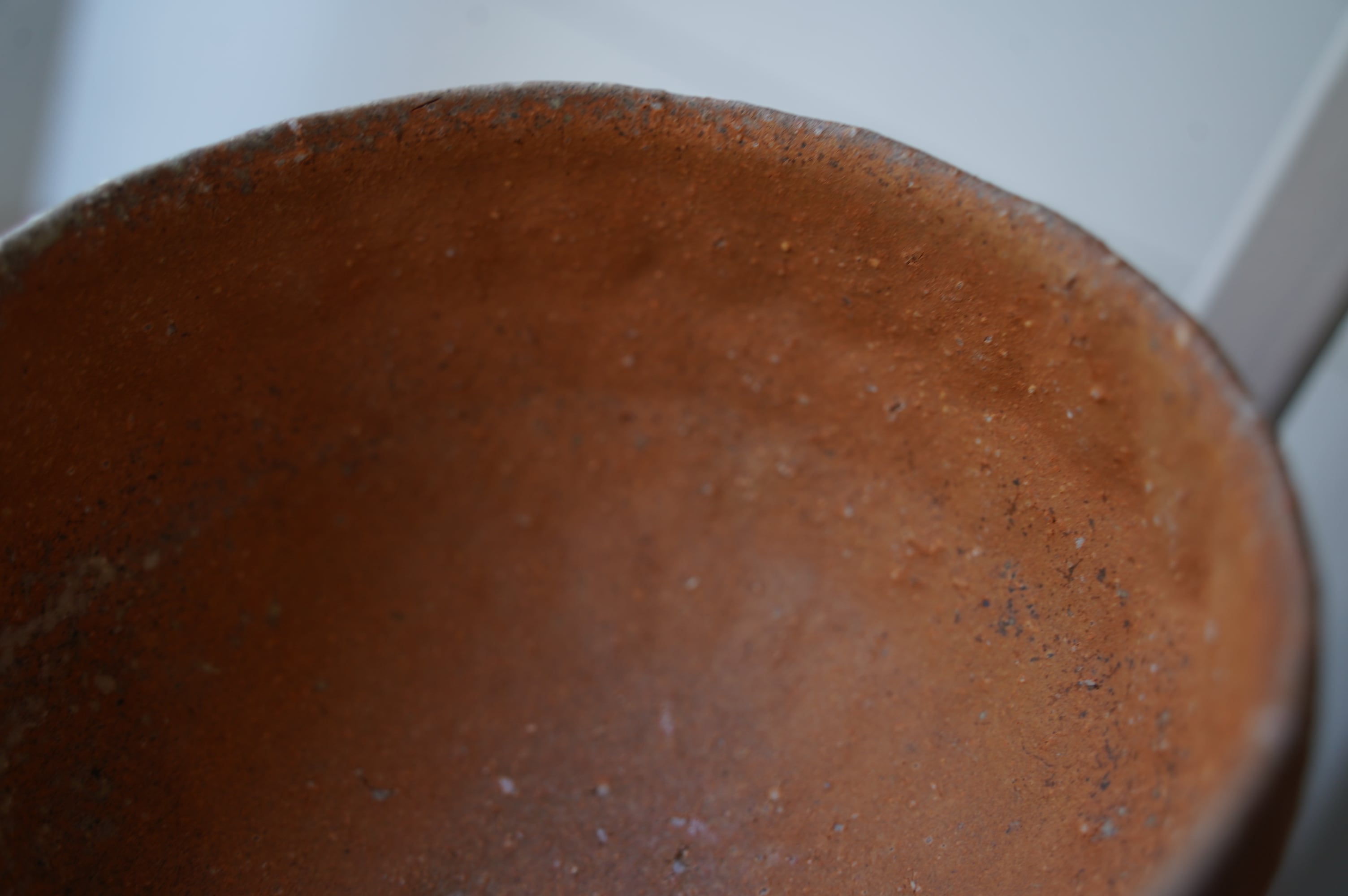 穴窯という原始的な薪窯で1週間もの長い時間じっくりと焼き上げられる作品達は固く焼き締まり、薪の灰や土そのものの表情が出ています。