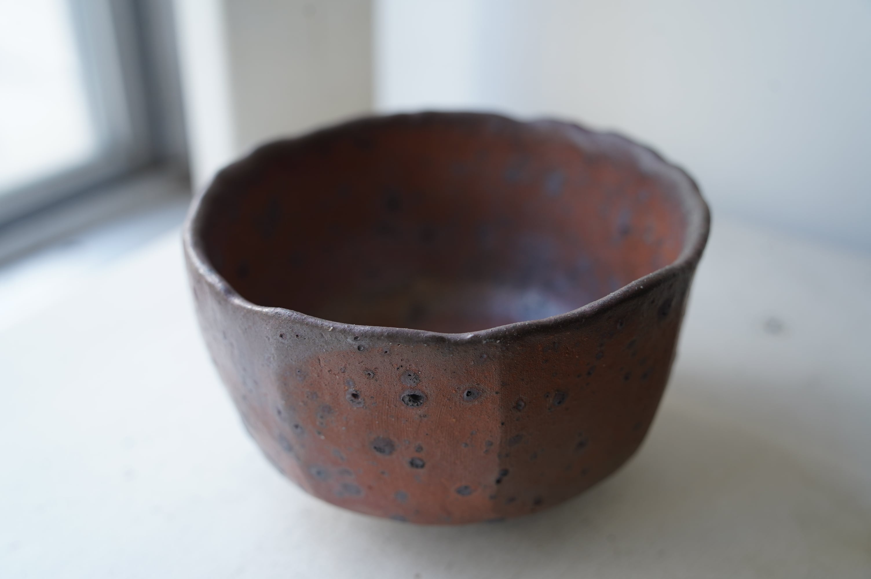 穴窯という原始的な薪窯で1週間もの長い時間じっくりと焼き上げられる作品達は固く焼き締まり、薪の灰や土そのものの表情が出ています。