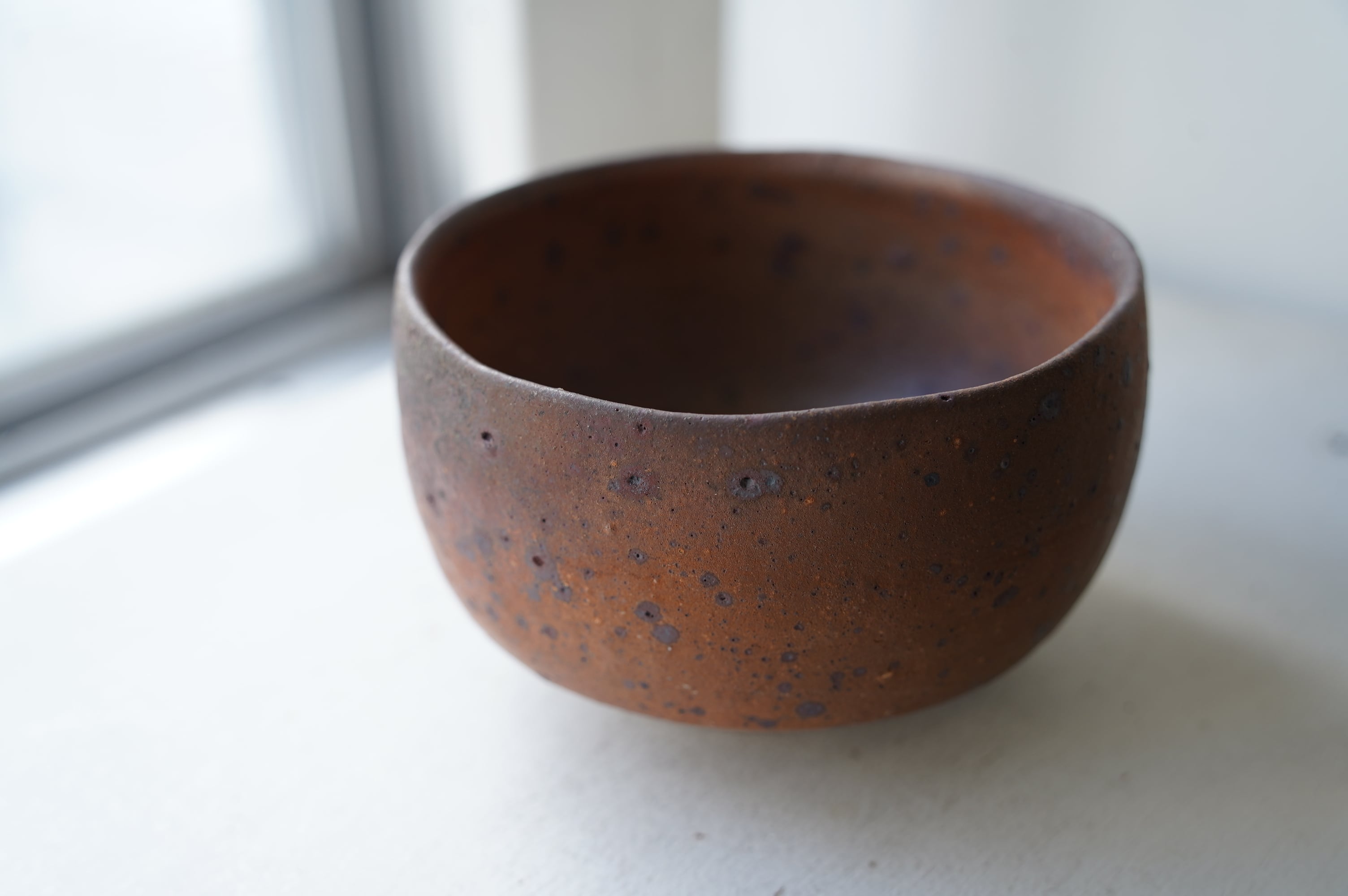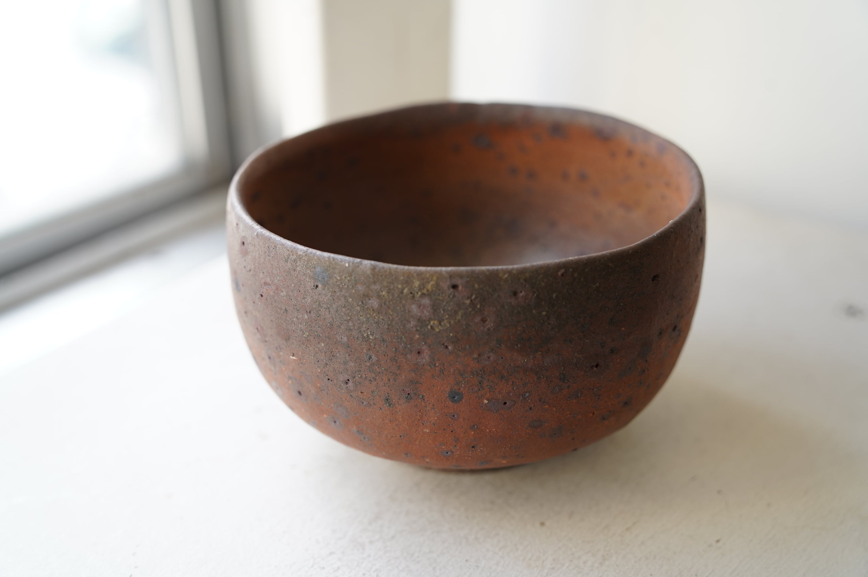 穴窯という原始的な薪窯で1週間もの長い時間じっくりと焼き上げられる作品達は固く焼き締まり、薪の灰や土そのものの表情が出ています。
