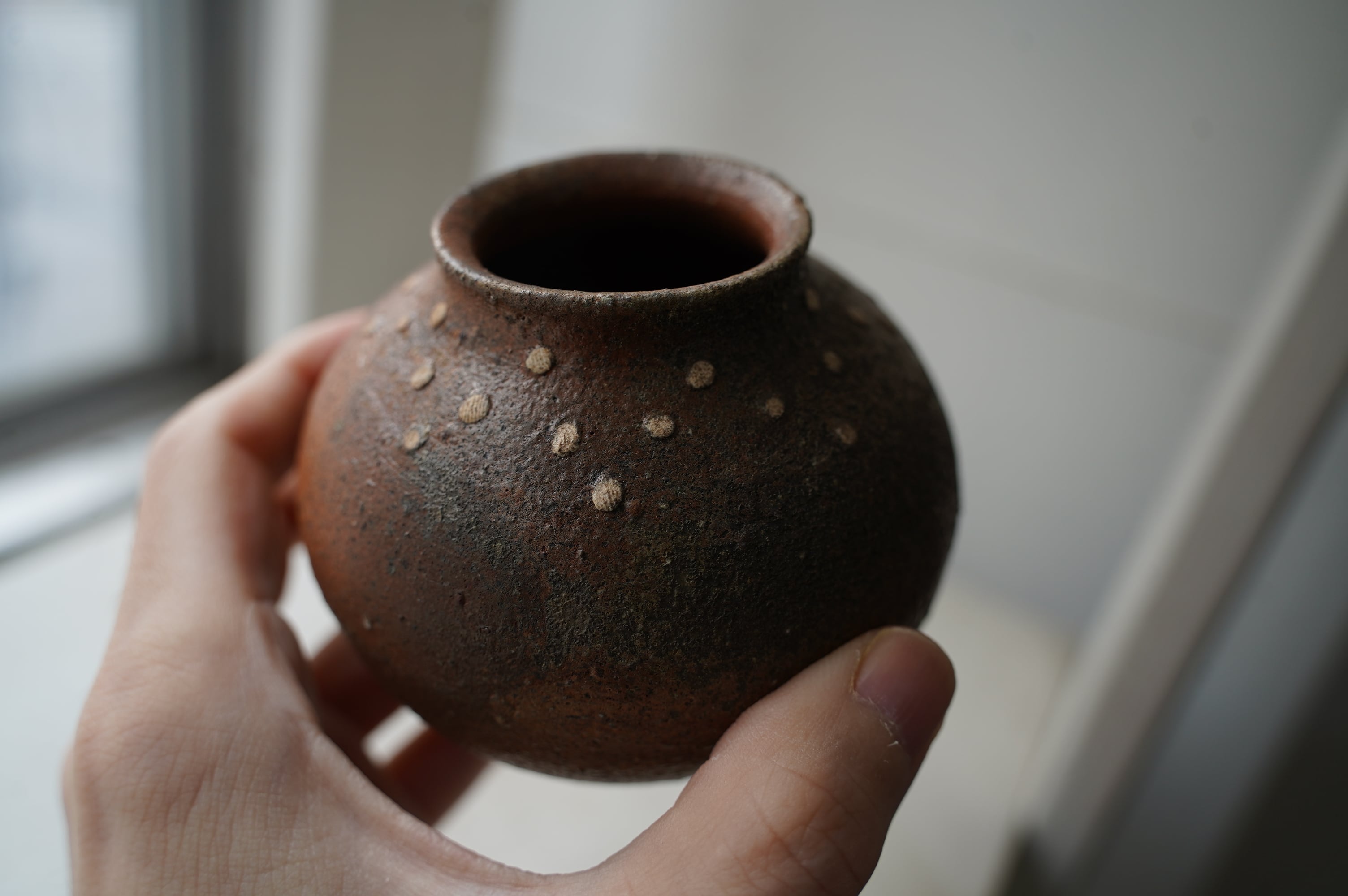 店主自身、備前焼などの焼き締めの作品をどうしても好きにはなれなかったのですが、田中さんの南蛮焼き締めはそう言ったものより更に原始的な佇まいで力強く生命に溢れている気がしてとても惹かれました。