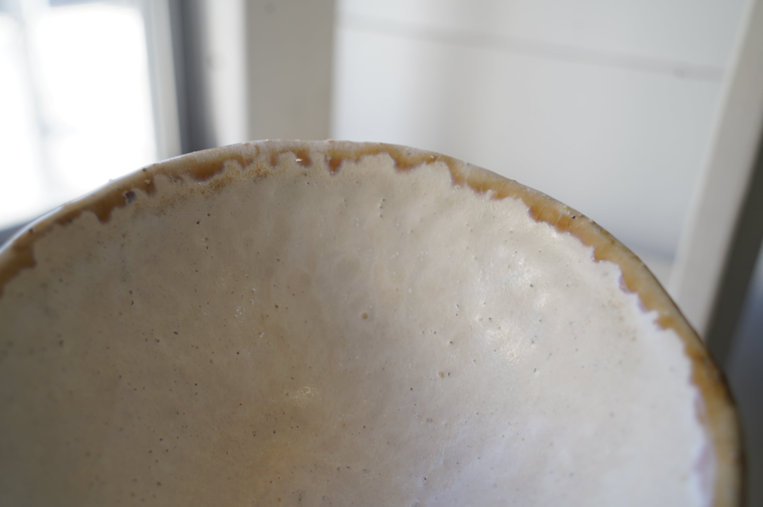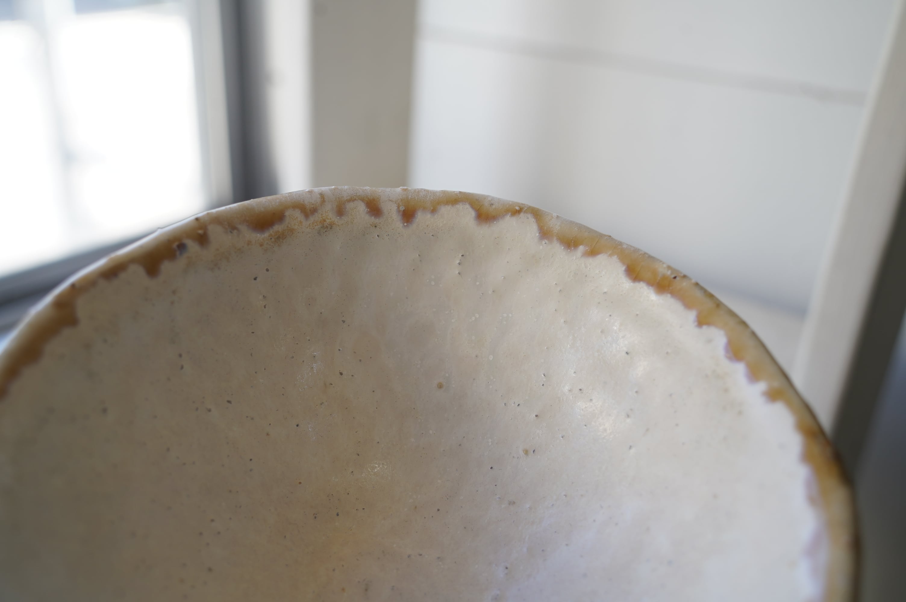 自分とは少し離れていることや遠くに見えるもの・遠くにいることなどを制作のキーワードにし、釉薬で淡くそして鮮やかに装飾を施しています。