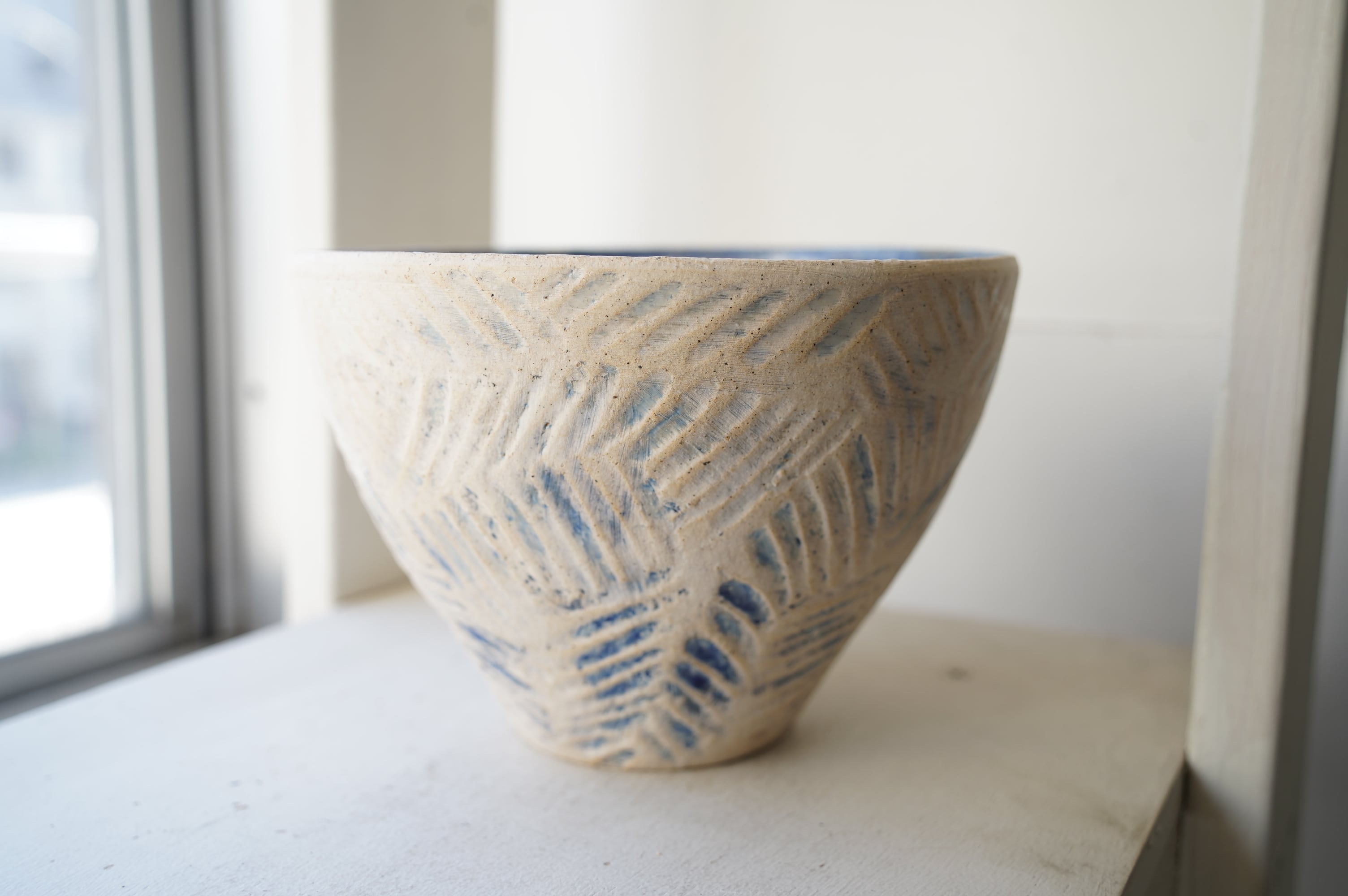 化粧土の上から自由に描かれる模様は古い記憶を積み重ね、褪せた日記のような。
