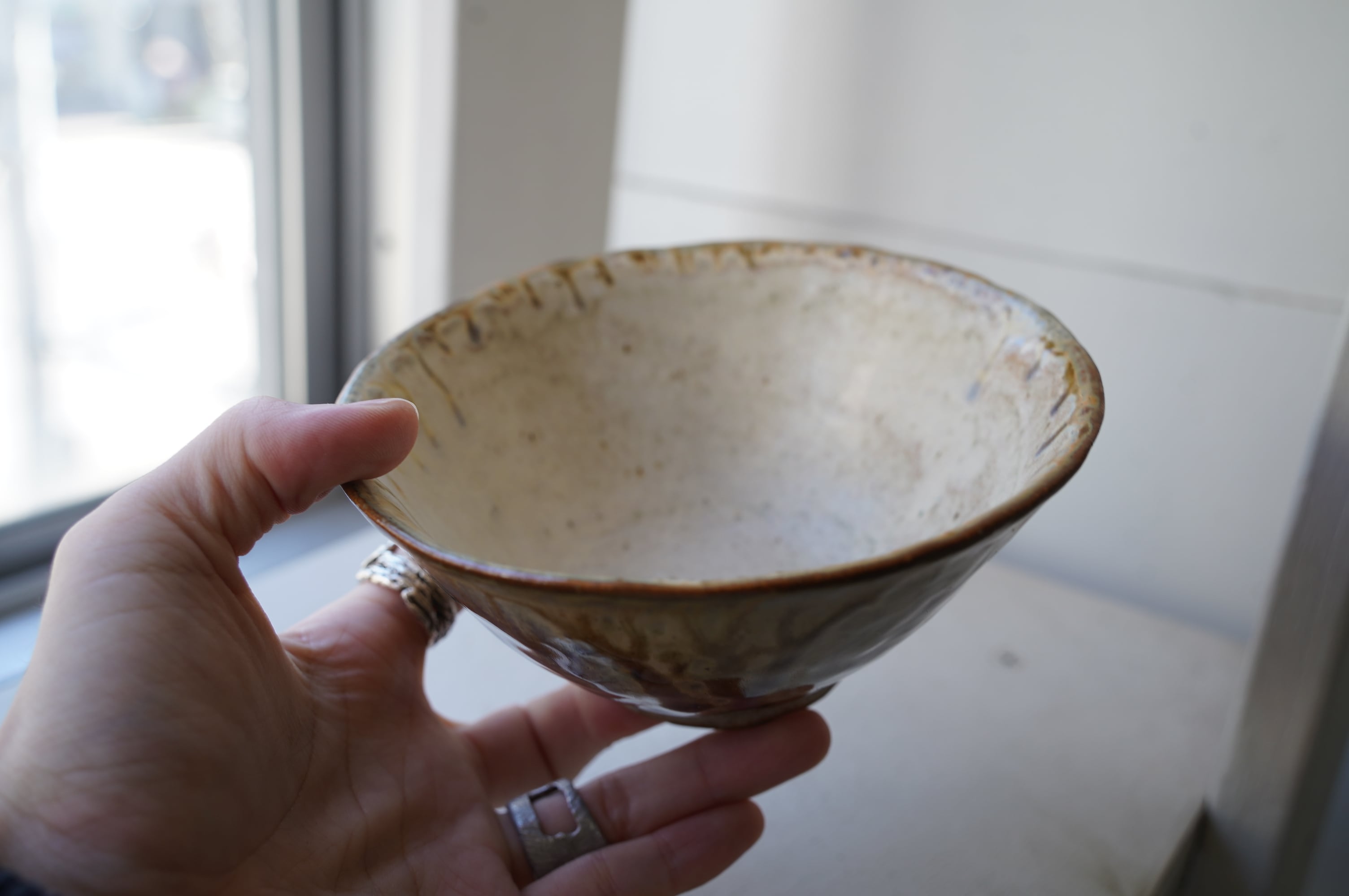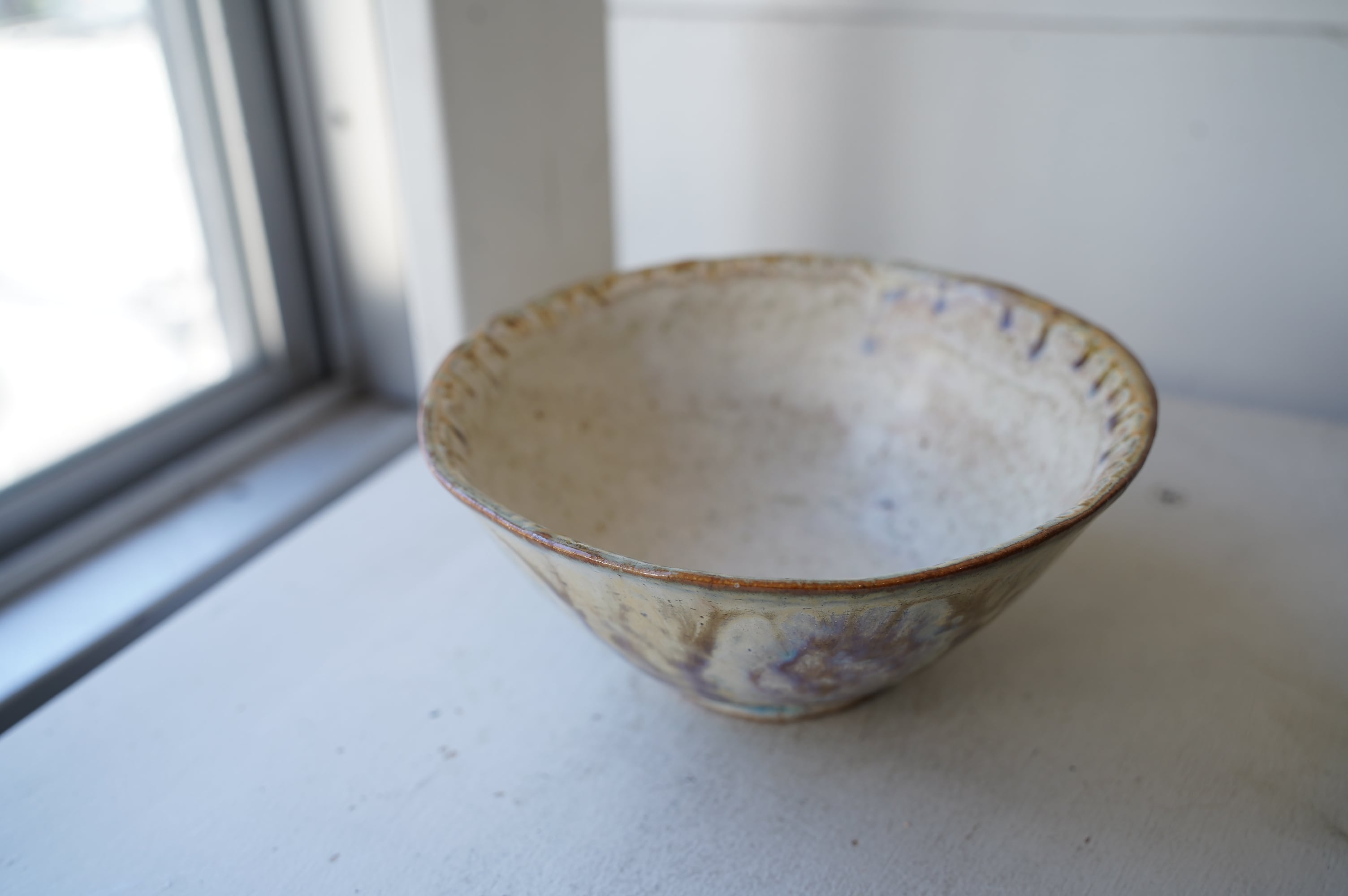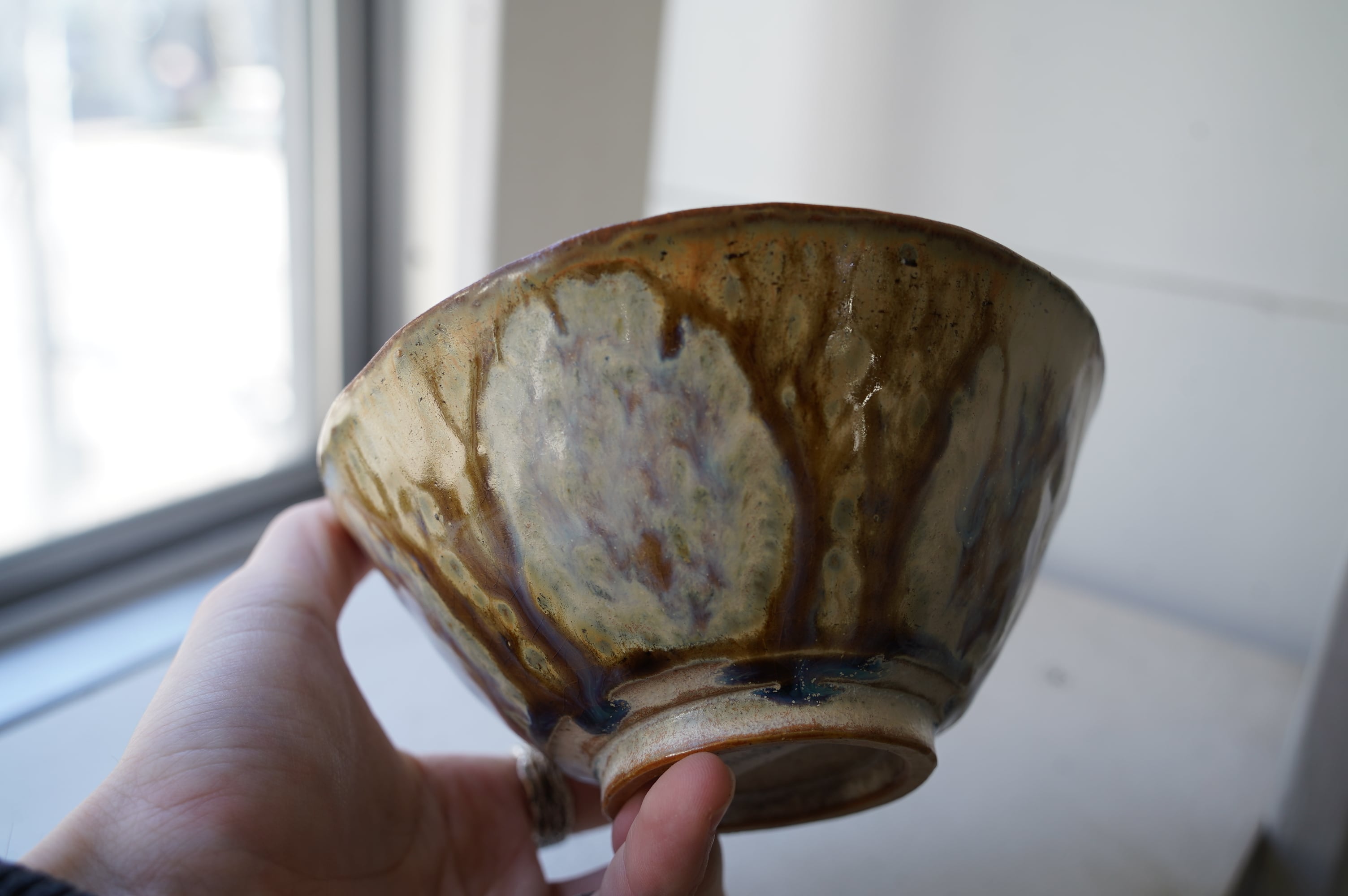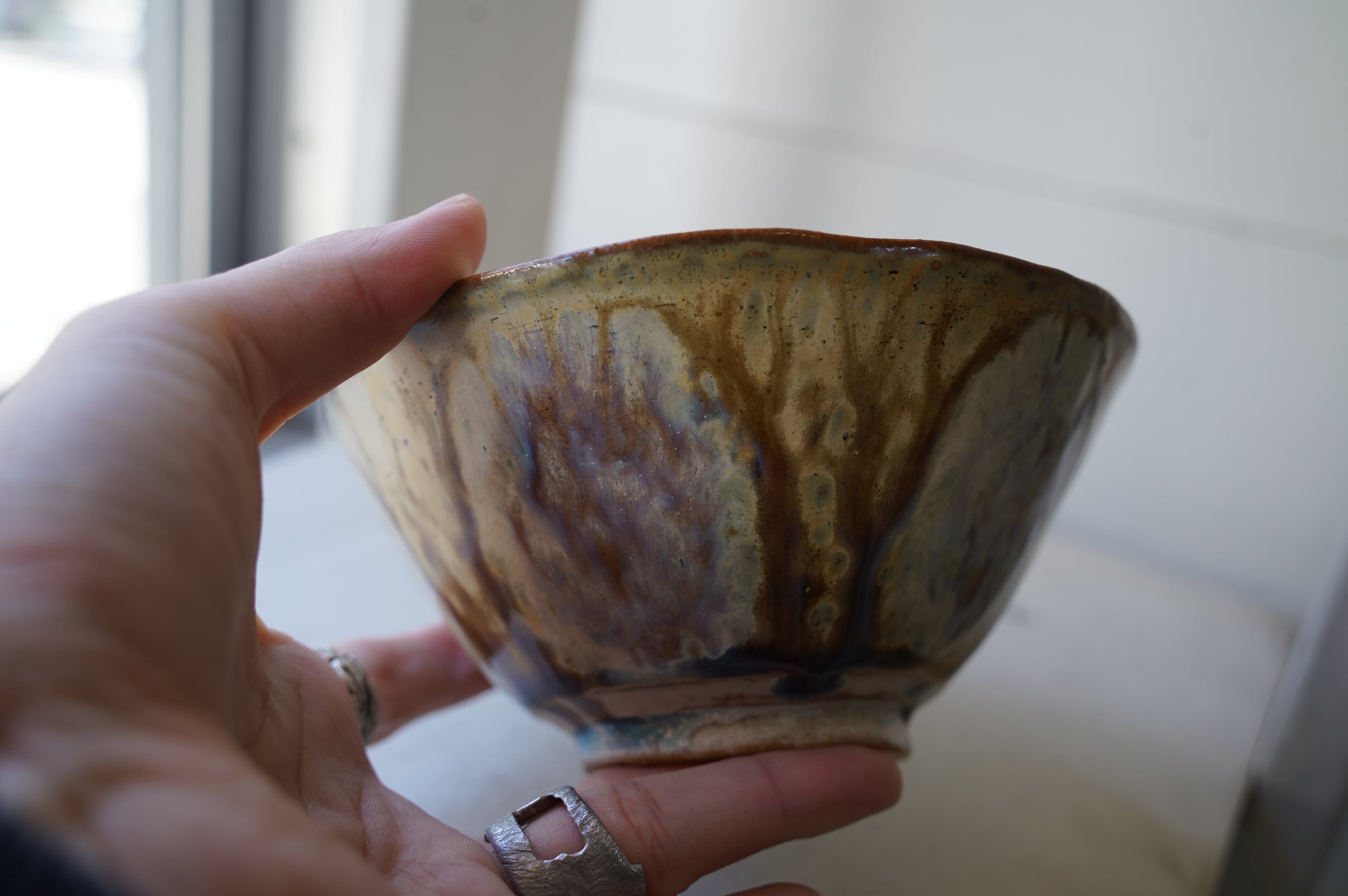 自分とは少し離れていることや遠くに見えるもの・遠くにいることなどを制作のキーワードにし、釉薬で淡くそして鮮やかに装飾を施しています。