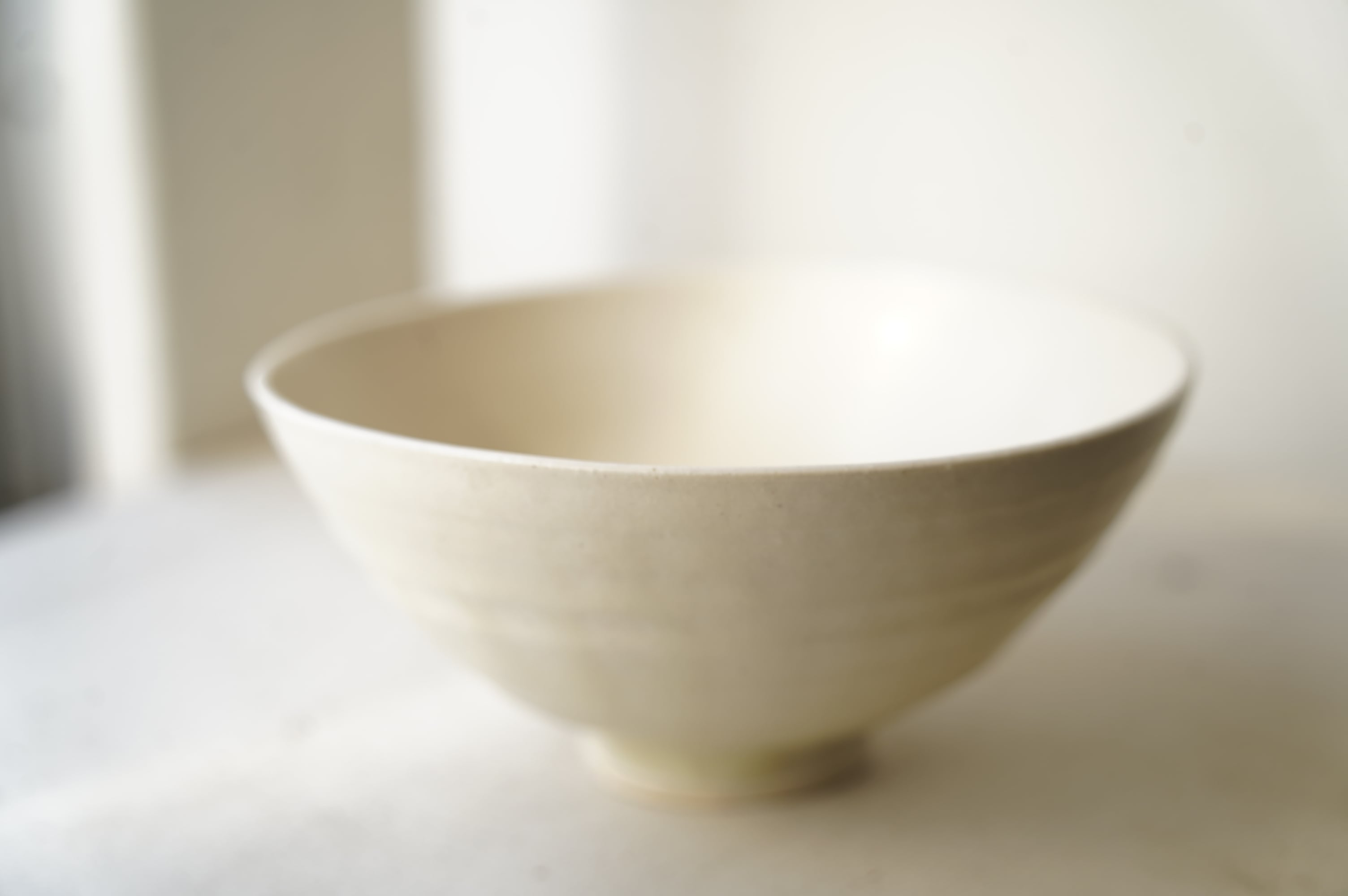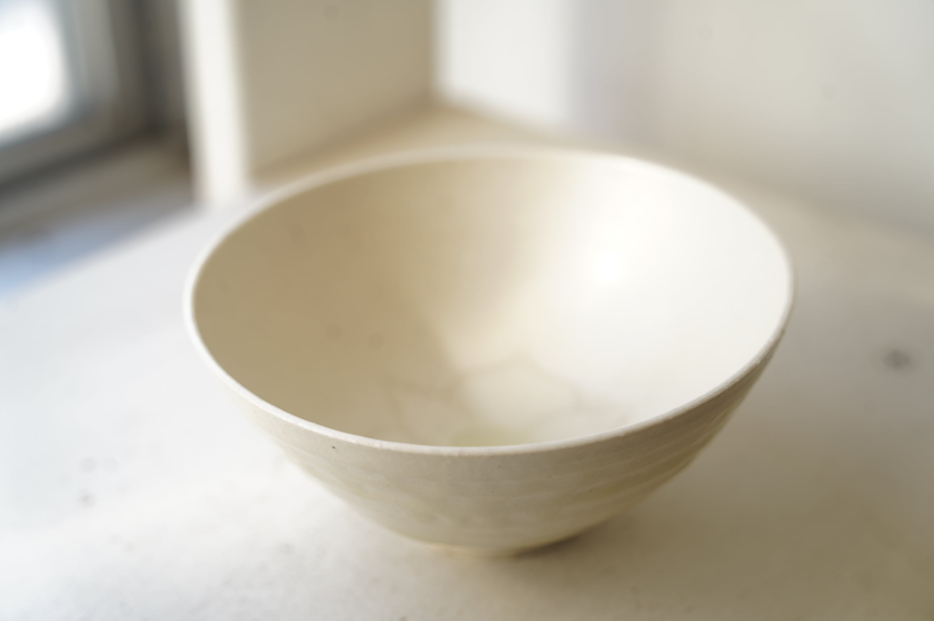 「紅磁」というオリジナルの技法で磁土を赤く発色させており、一般的な白磁などの持つ清涼で硬質なイメージとはまた違う温かさや柔らかさを持つ作品を作っています。