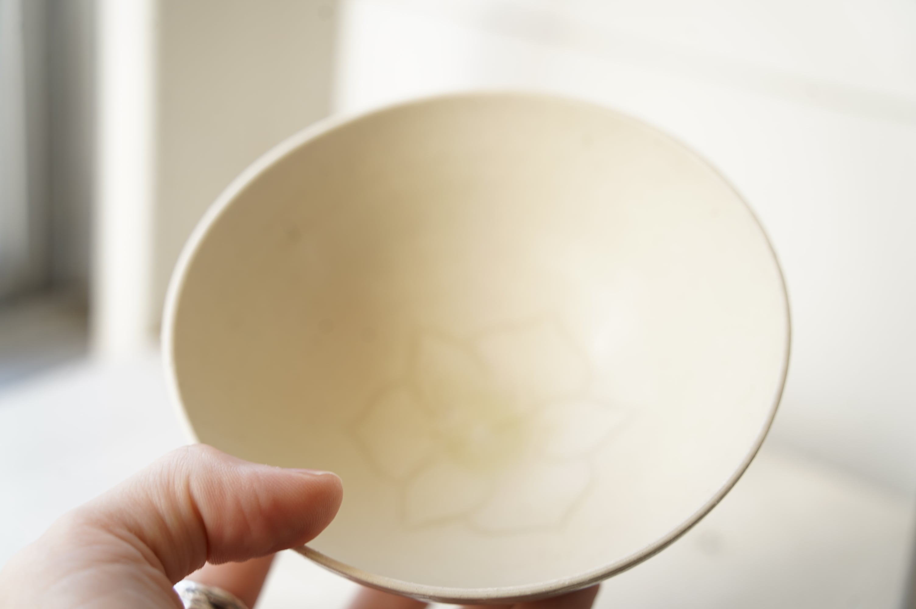 「紅」とありますが一口に赤い器とは言えないような深みや奥行きのある赤色で、その器に中国骨董の古くからある文様をシンプルな線彫りから陽刻、陰刻、掻き落とし、型打ち、様々な技法を用いて描いております。