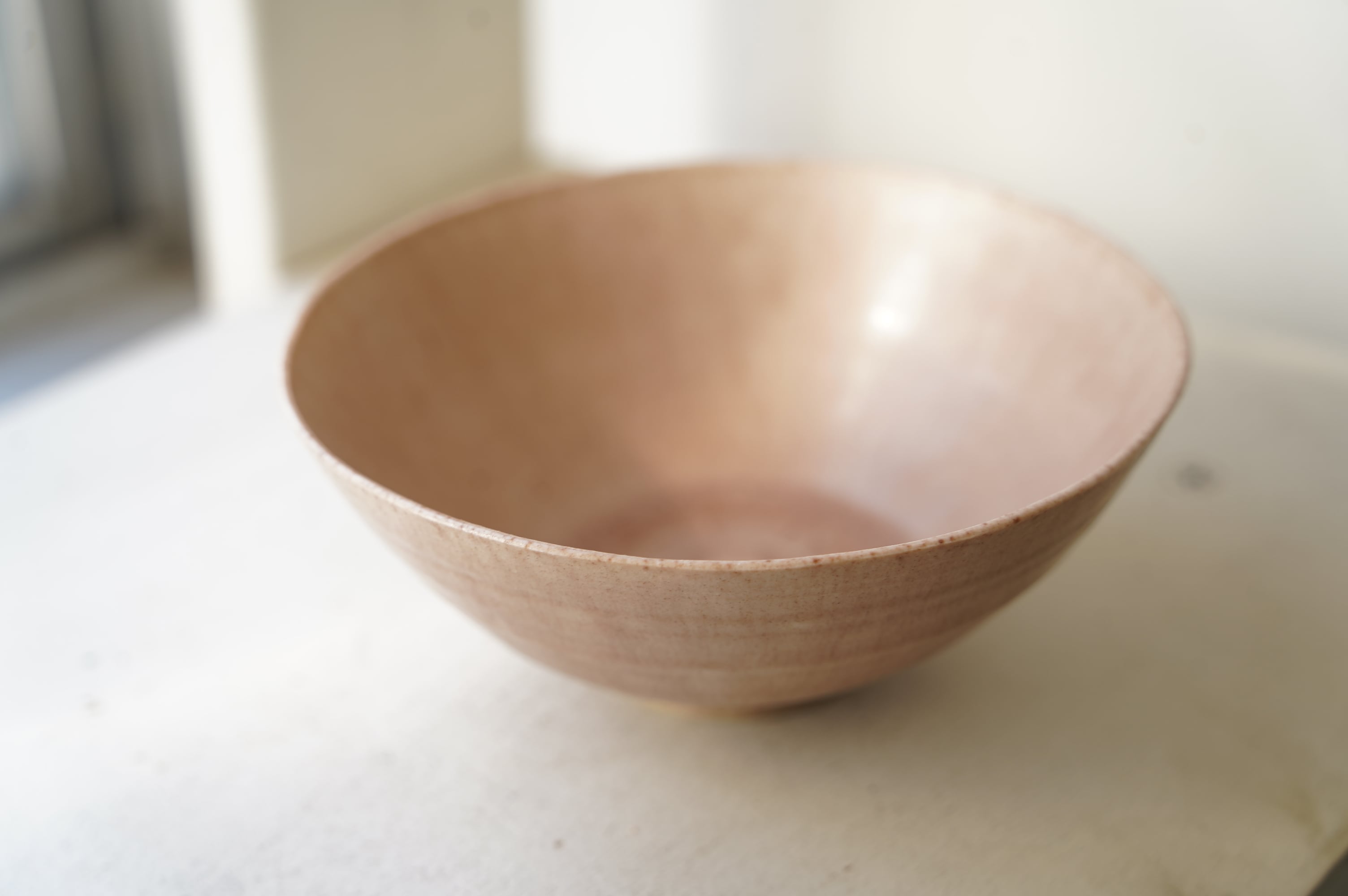 「紅磁」というオリジナルの技法で磁土を赤く発色させており、一般的な白磁などの持つ清涼で硬質なイメージとはまた違う温かさや柔らかさを持つ作品を作っています。
