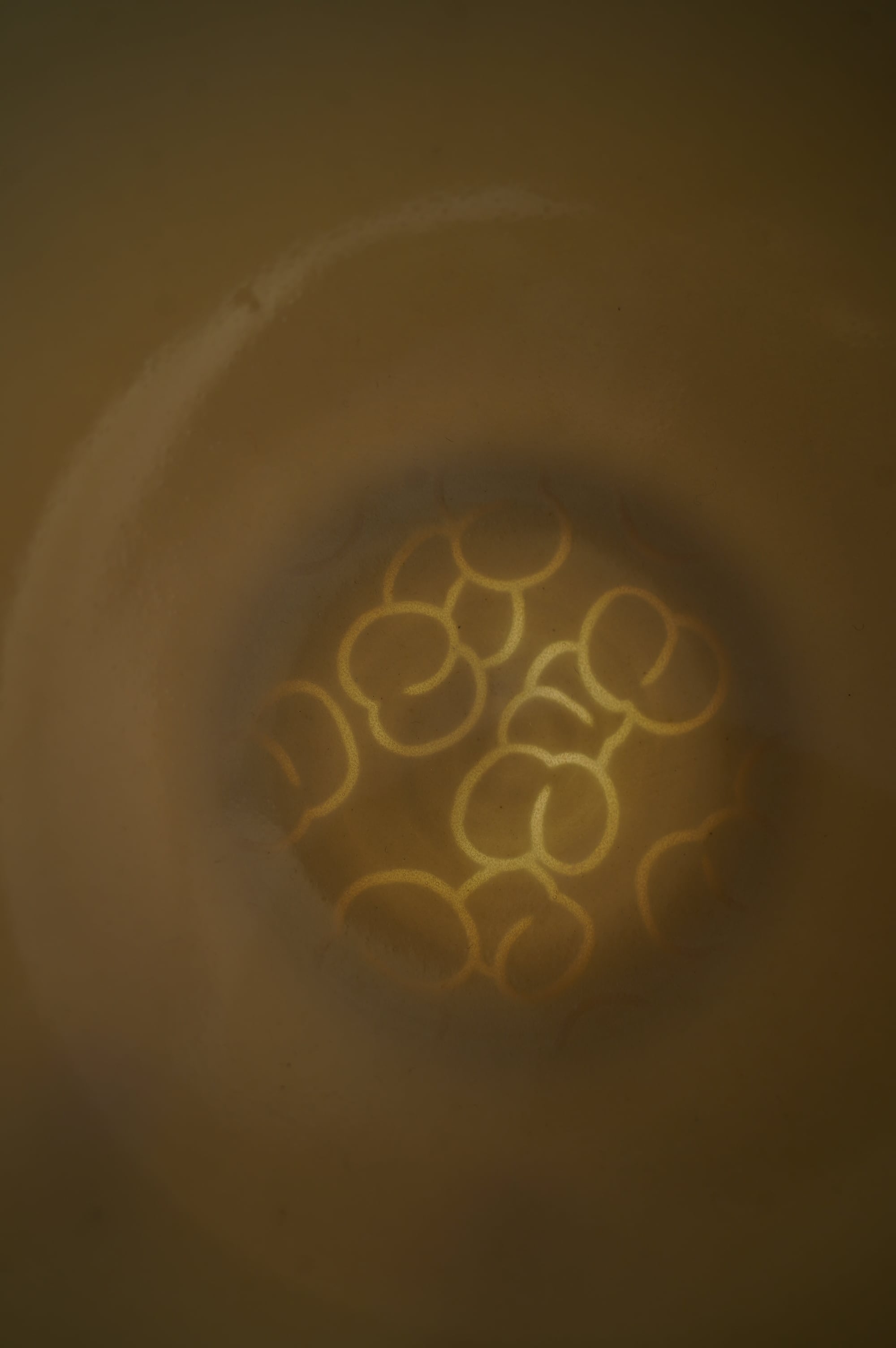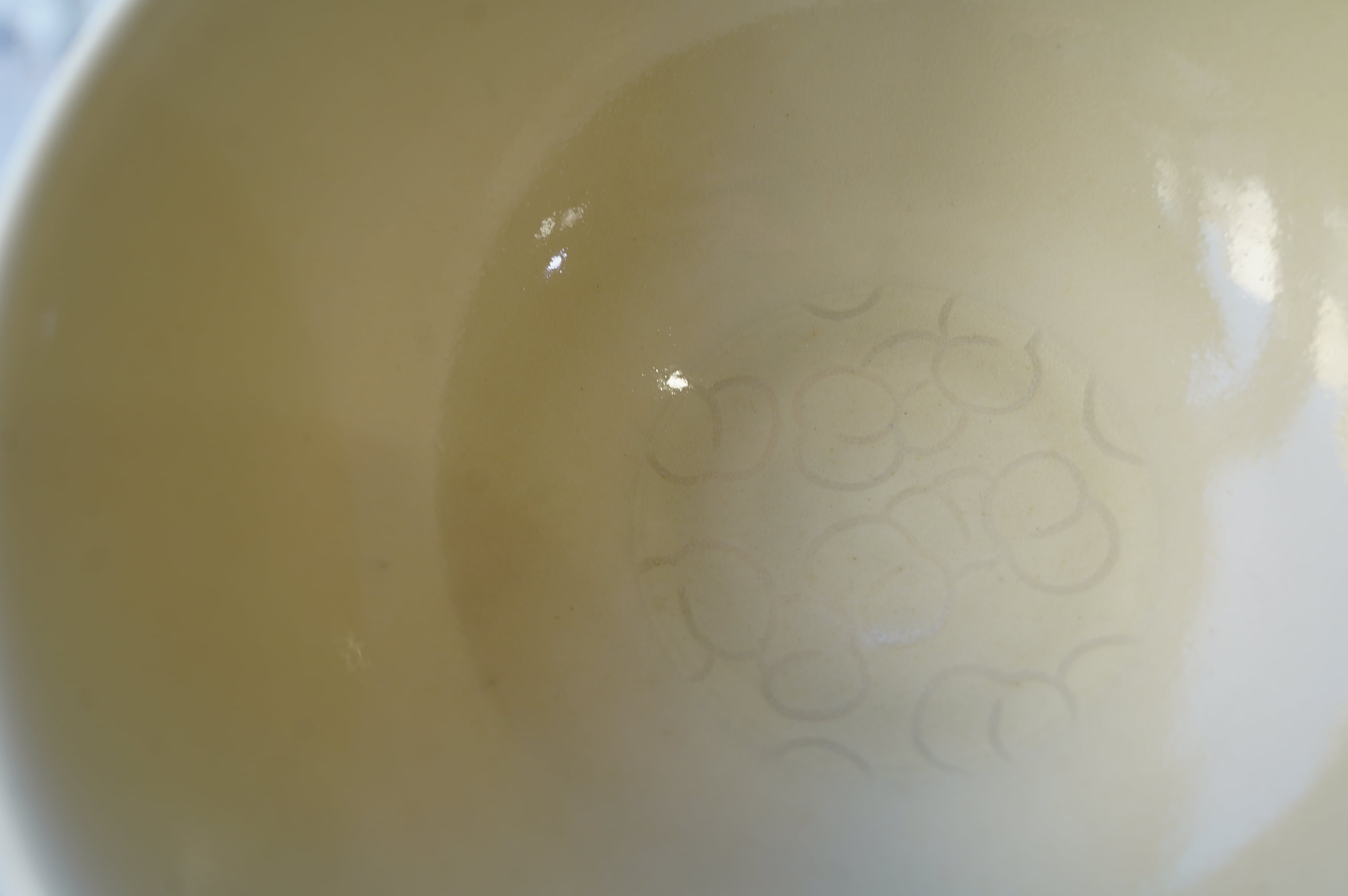 塗った化粧土を引っ掻いて落とす事で模様を浮き立たせています。形、釉調ともに使いやすくできています。