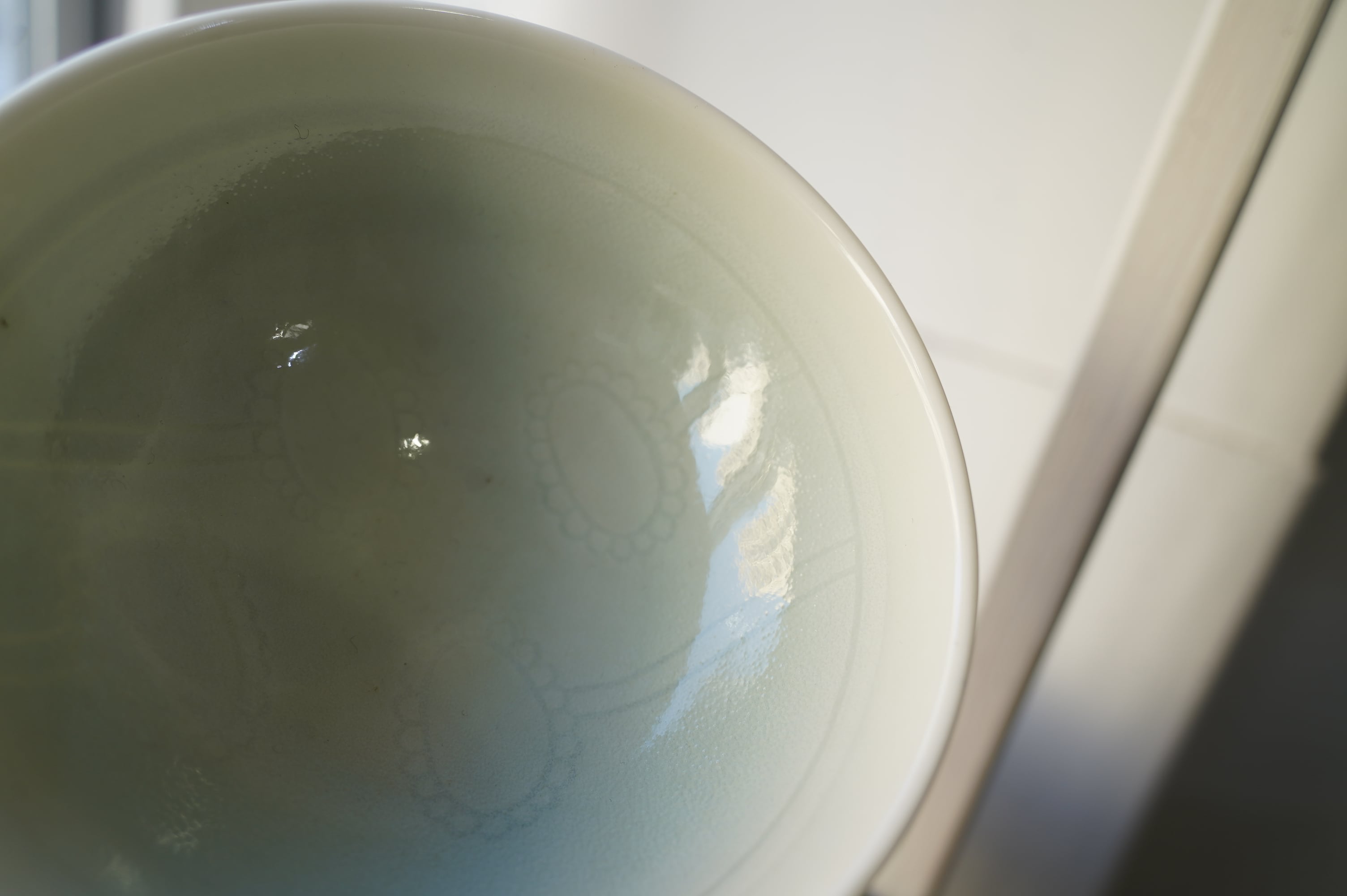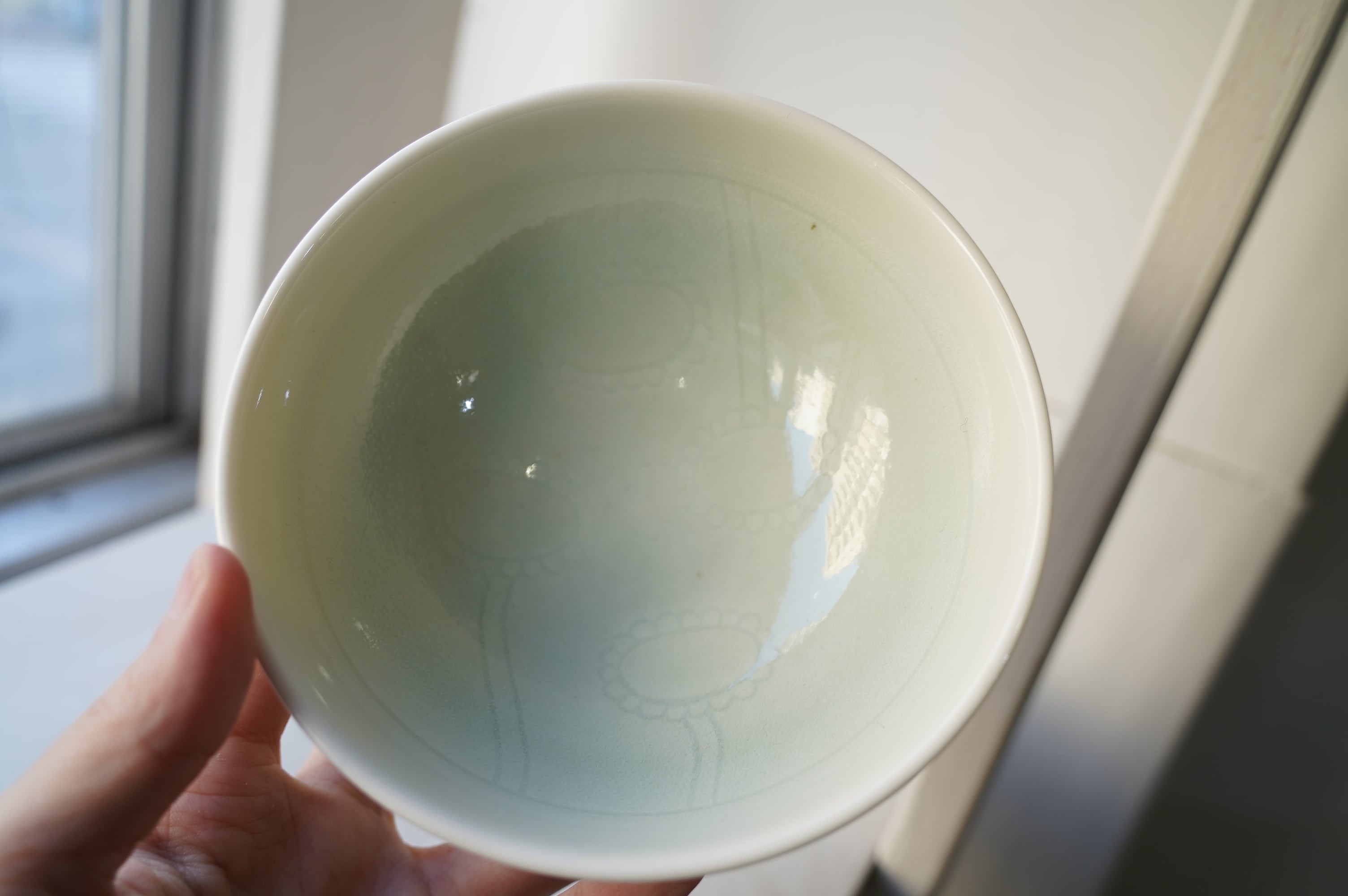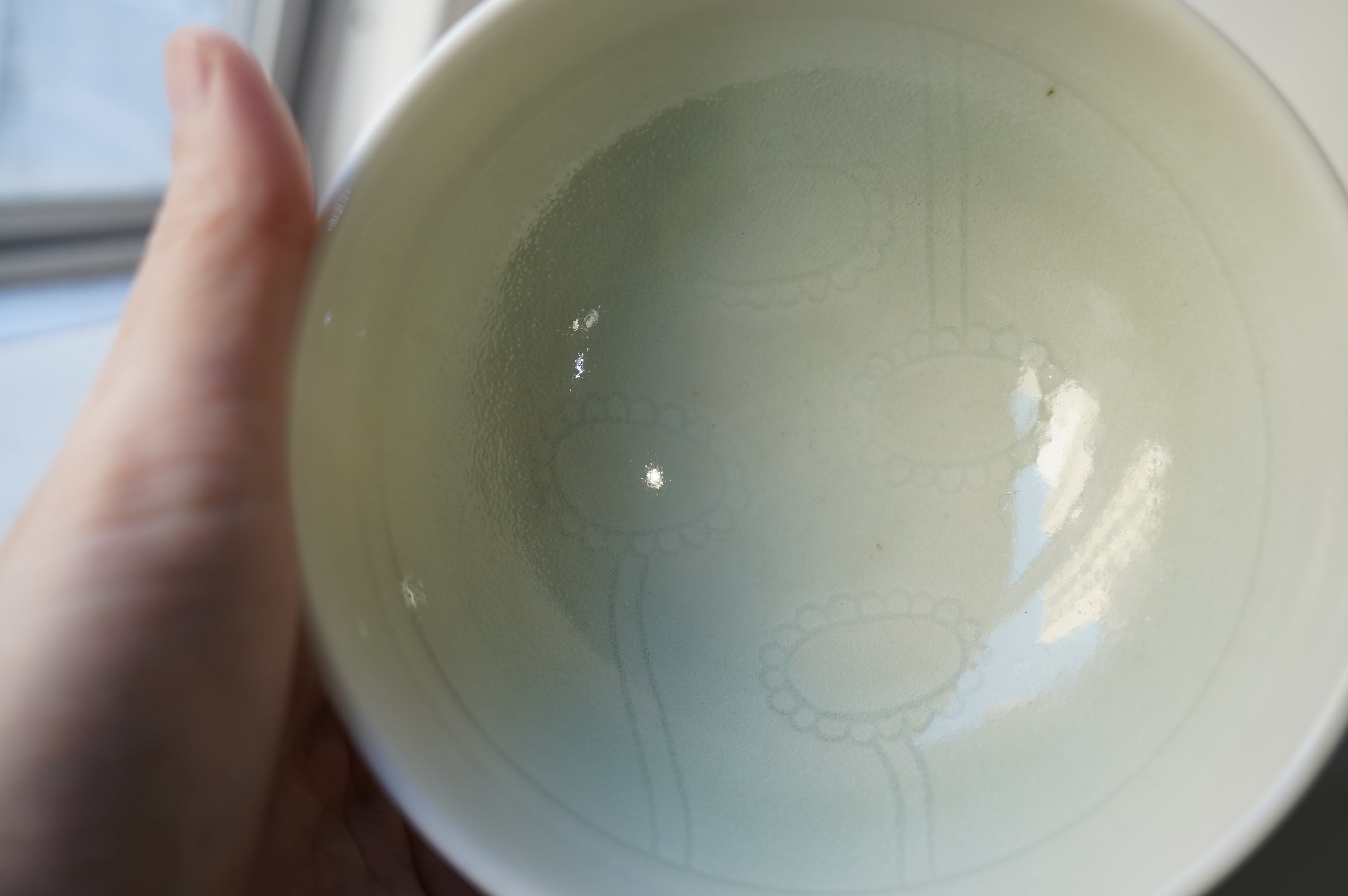 塗った化粧土を引っ掻いて落とす事で模様を浮き立たせています。形、釉調ともに使いやすくできています。