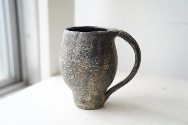 素焼き、炭化焼成、上絵をした後の焼き、と三回焼くことによって醸し出される土と色の存在感は見れば見るほど味わい深く、決まった重さの土を手に取り赴くままに形作られるリズミカルなフォルムはどれも一点物。