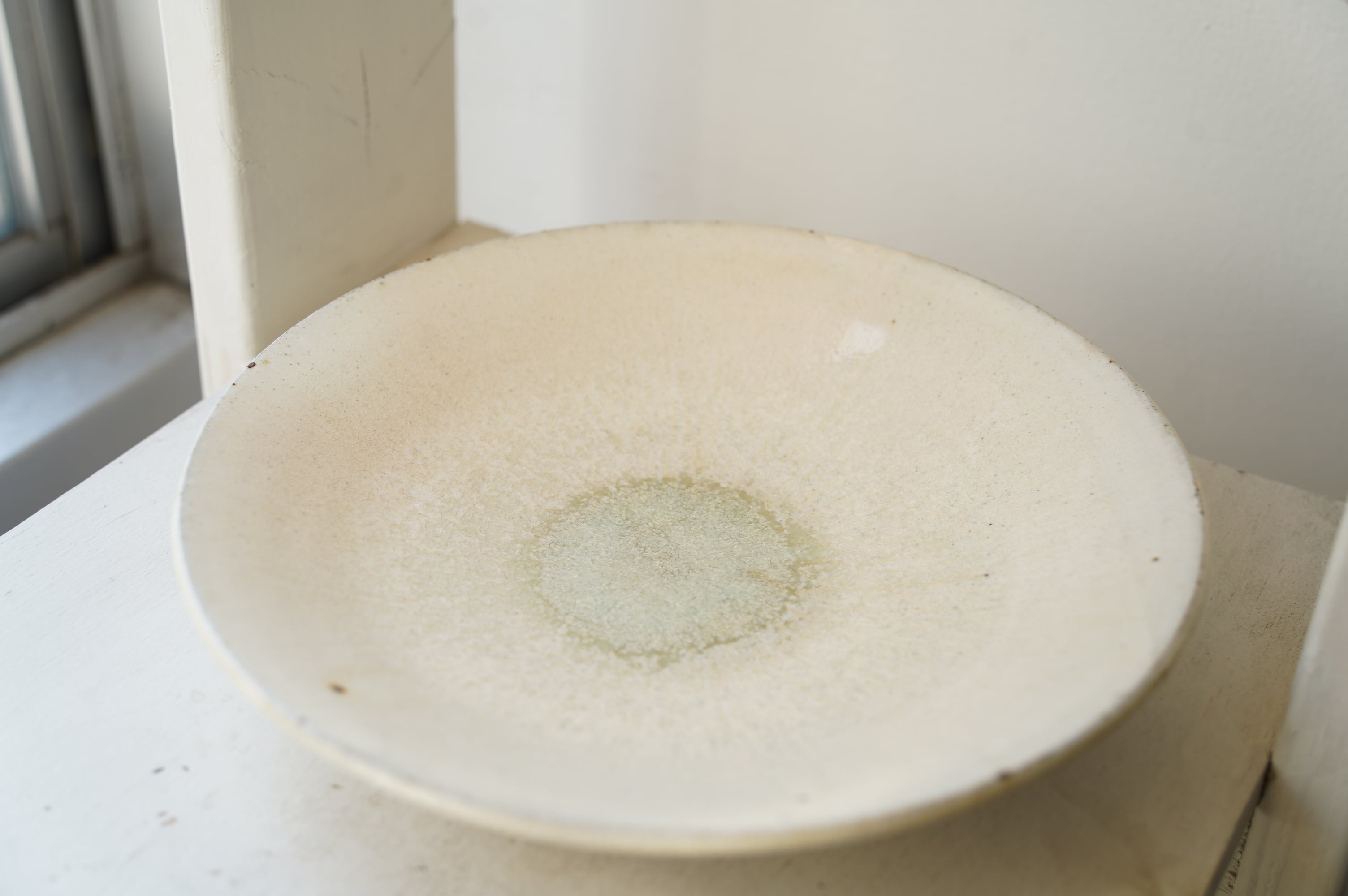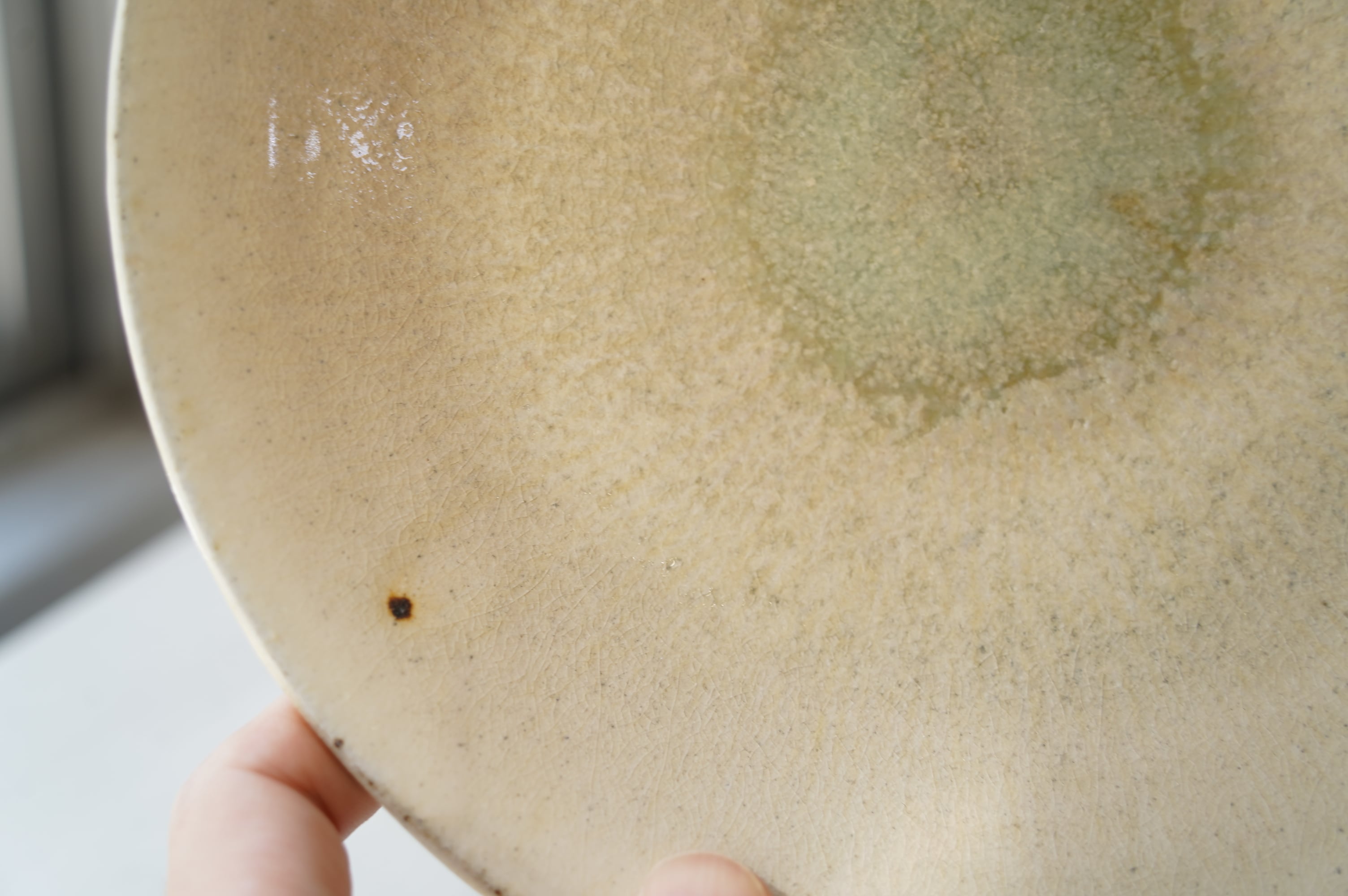 灰粉引というやり方で、化粧土を刷毛で塗り素焼きし、もう一度化粧土をかけ素焼き、