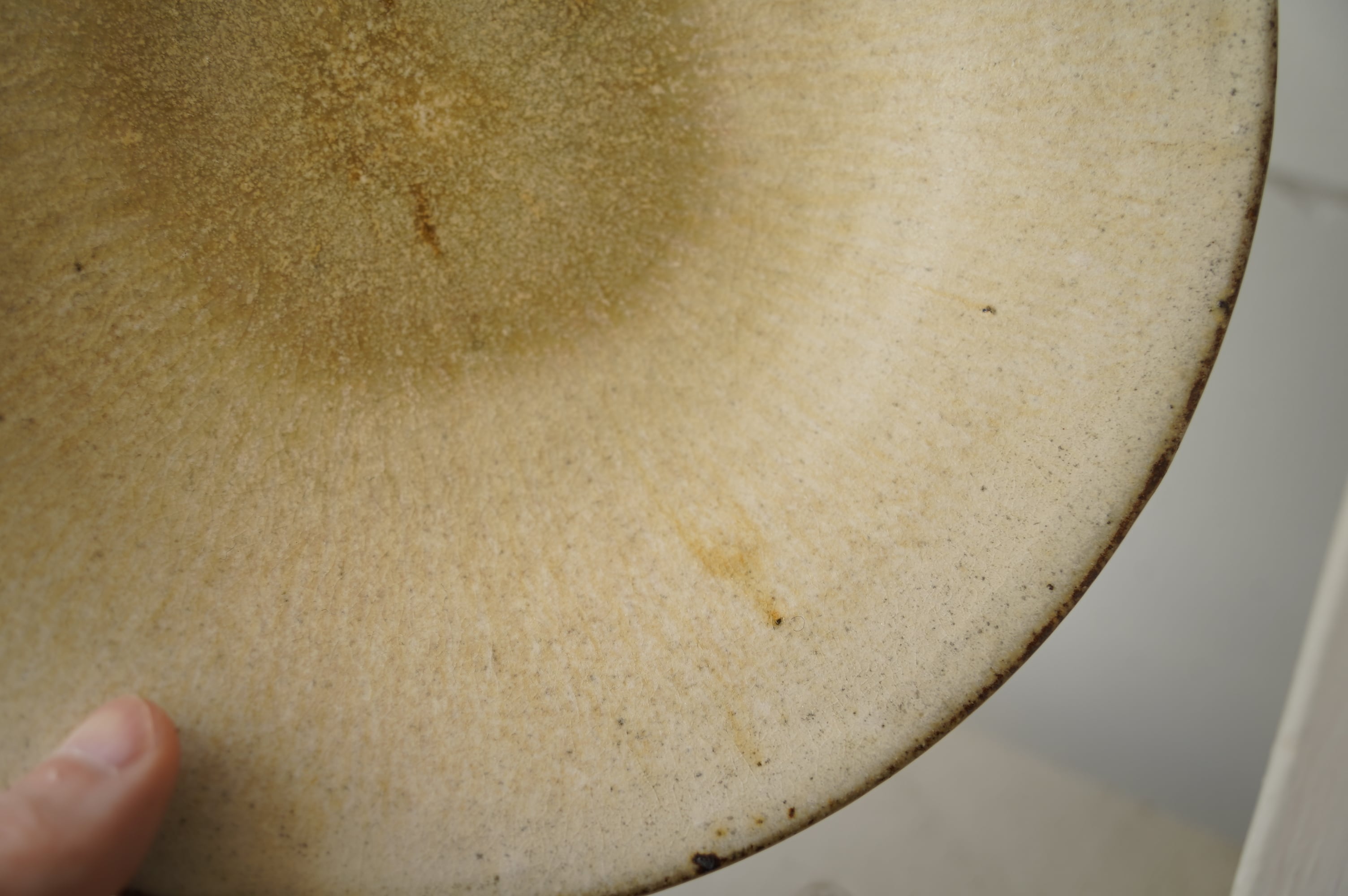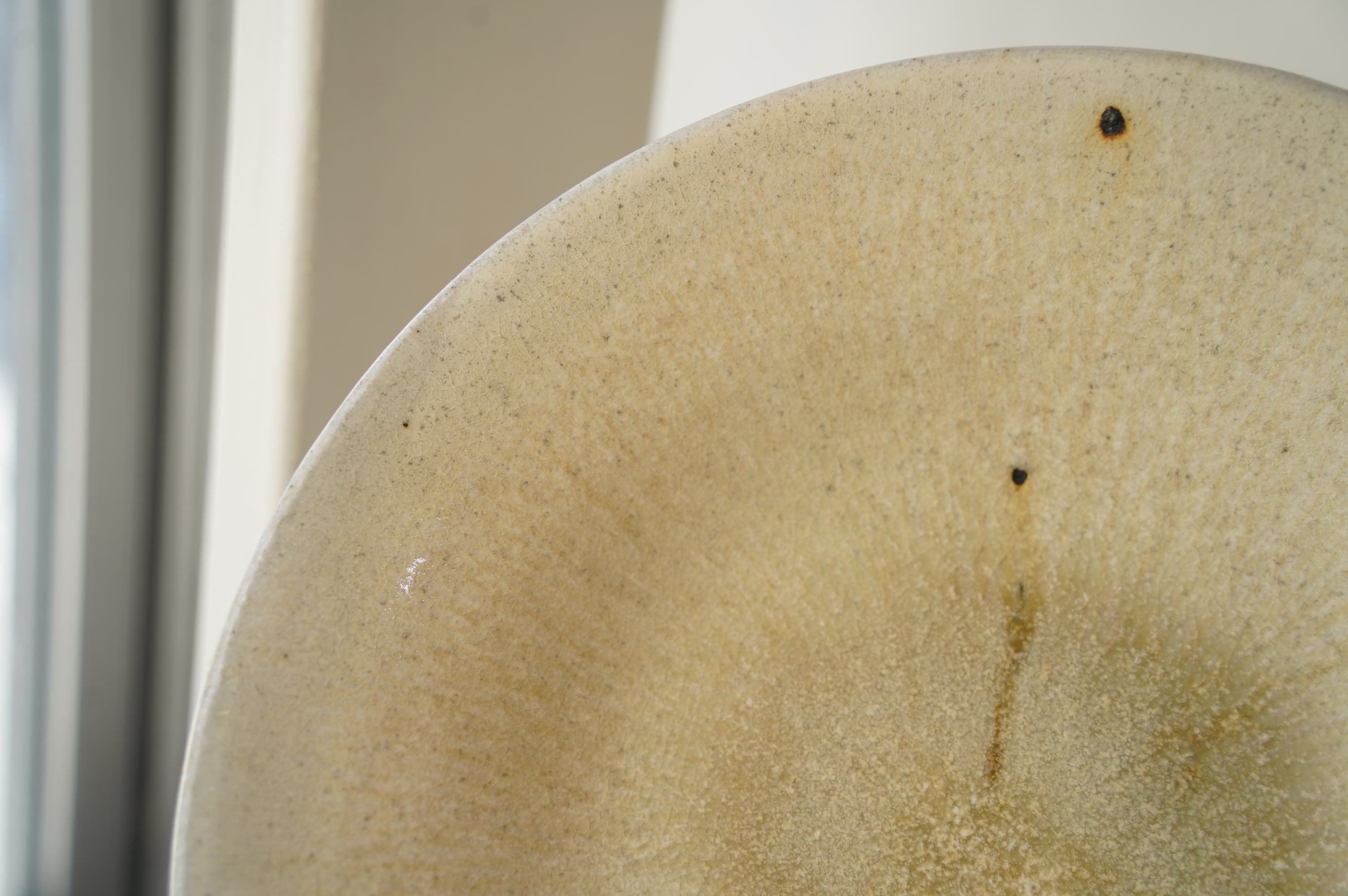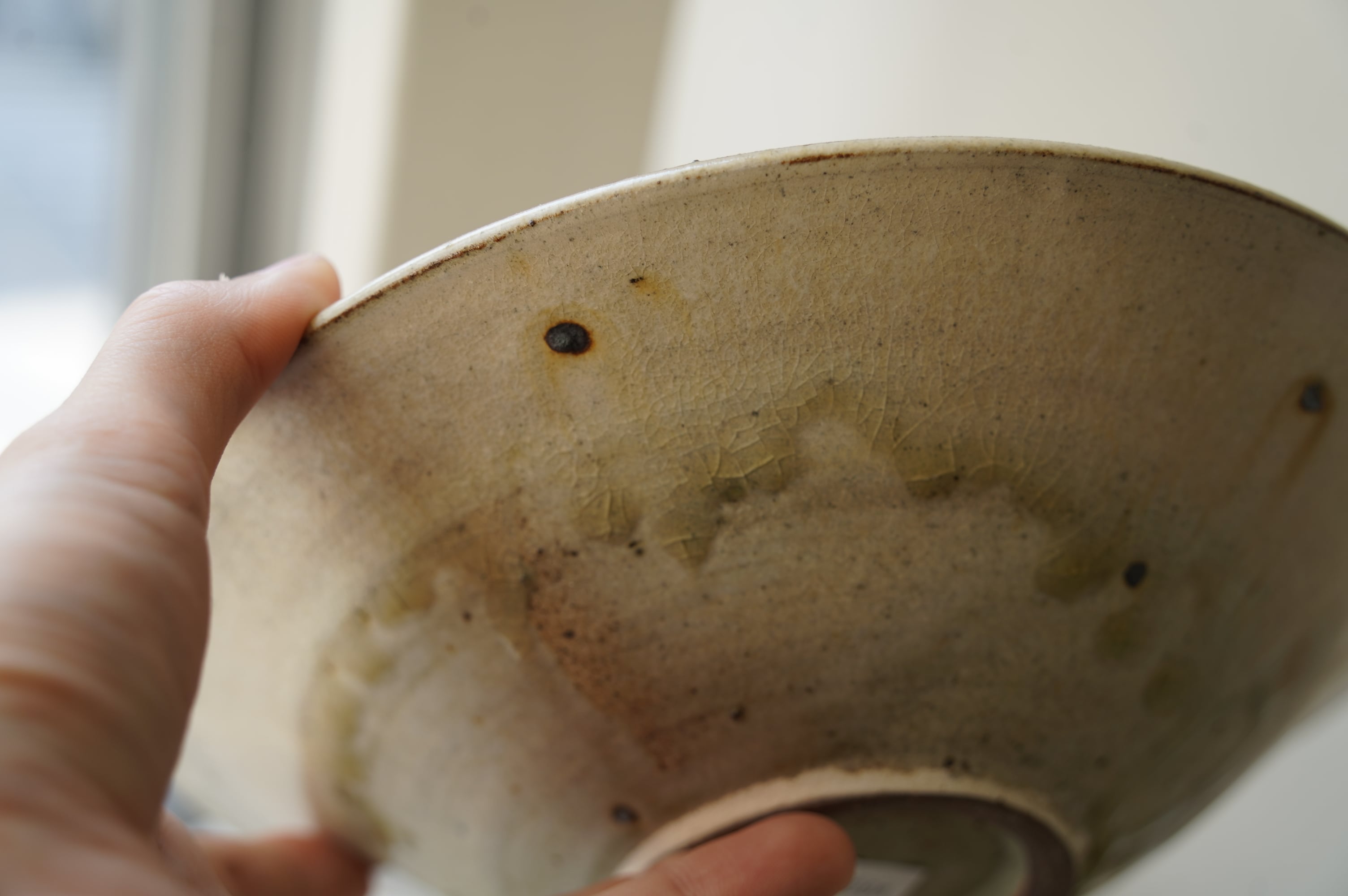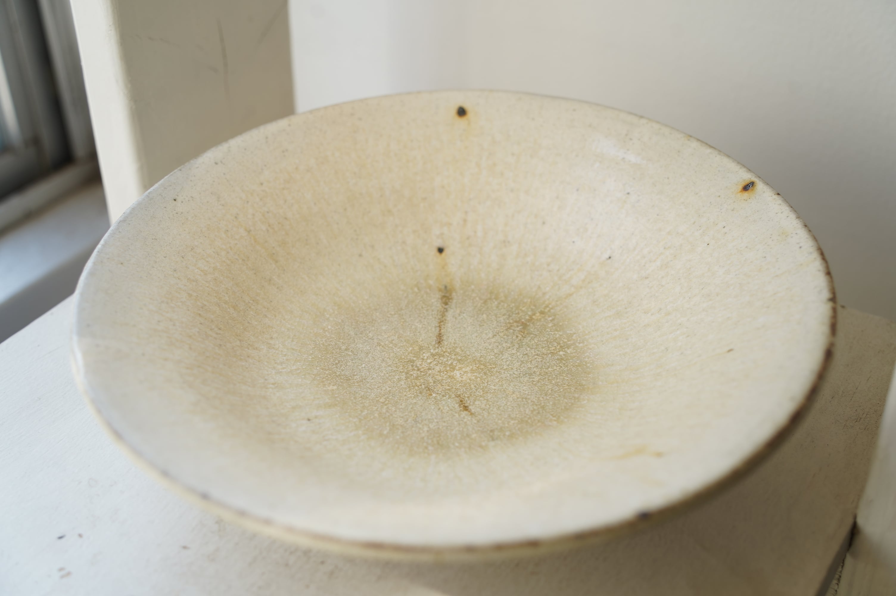灰粉引というやり方で、化粧土を刷毛で塗り素焼きし、もう一度化粧土をかけ素焼き、