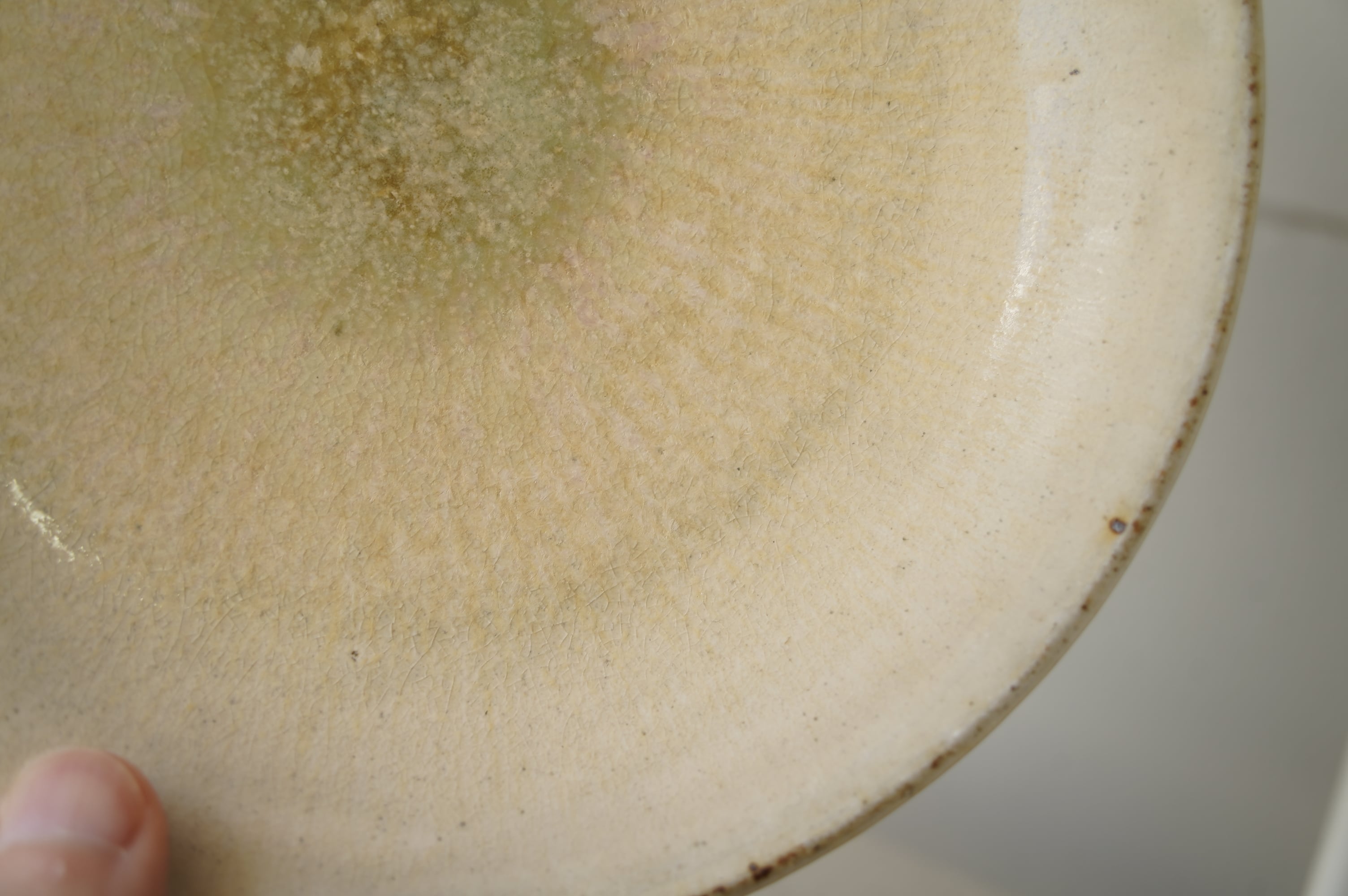 灰粉引というやり方で、化粧土を刷毛で塗り素焼きし、もう一度化粧土をかけ素焼き、