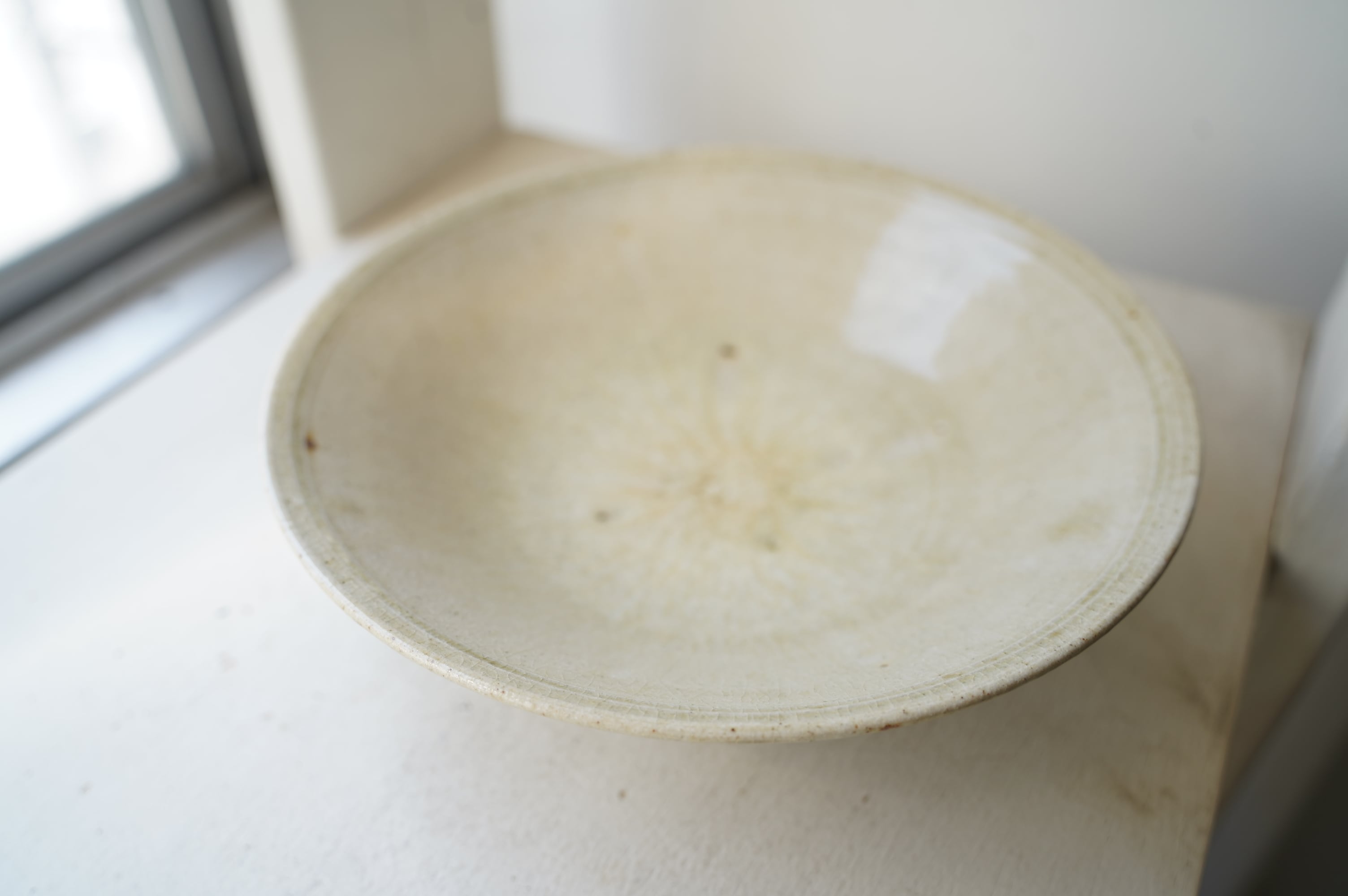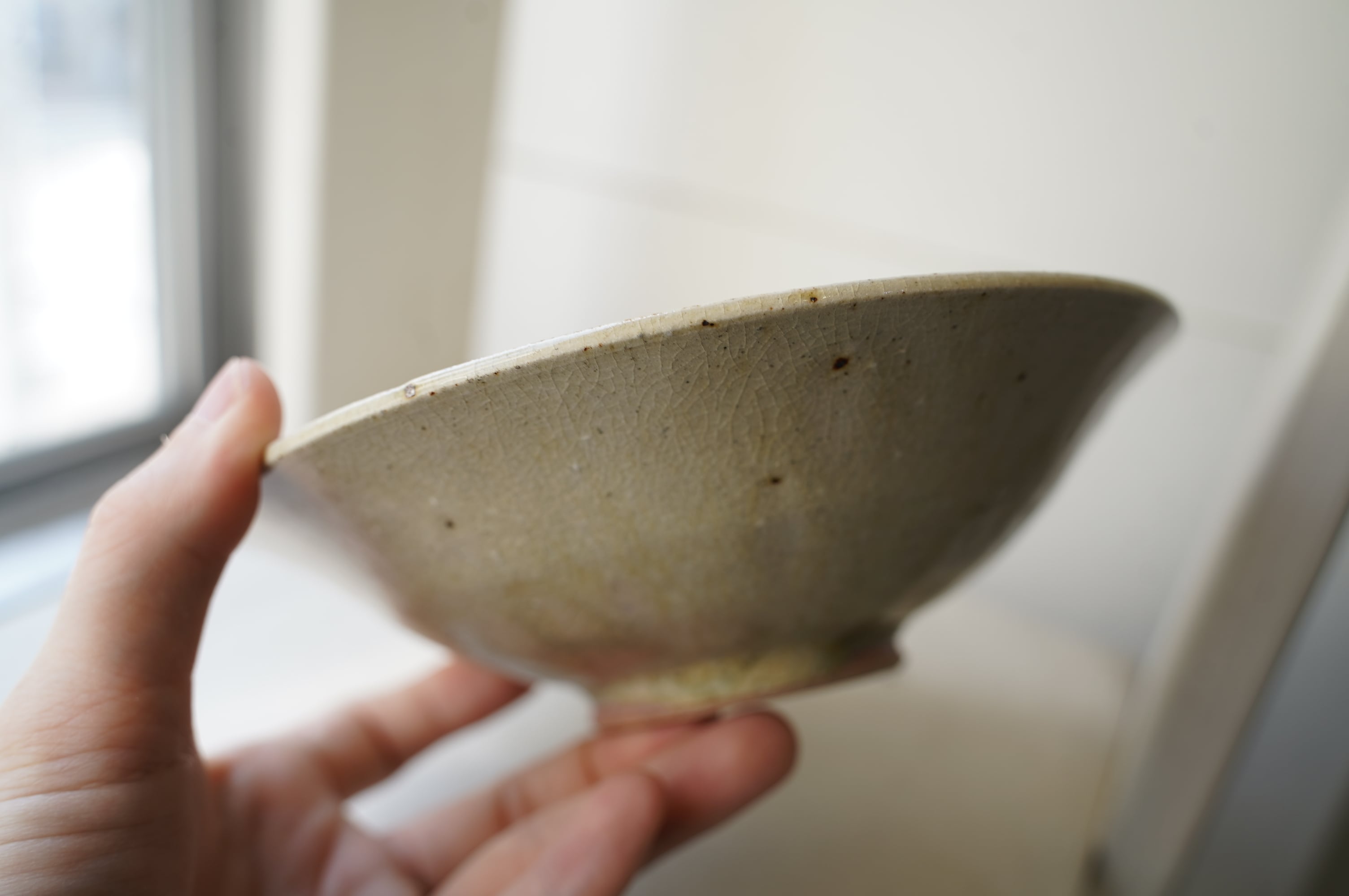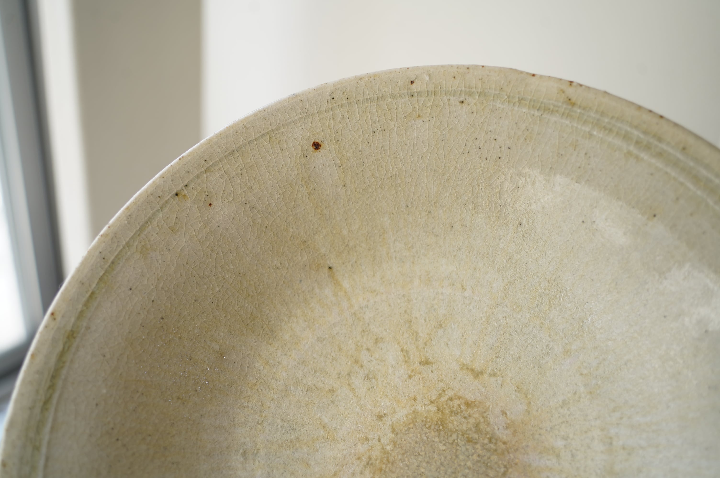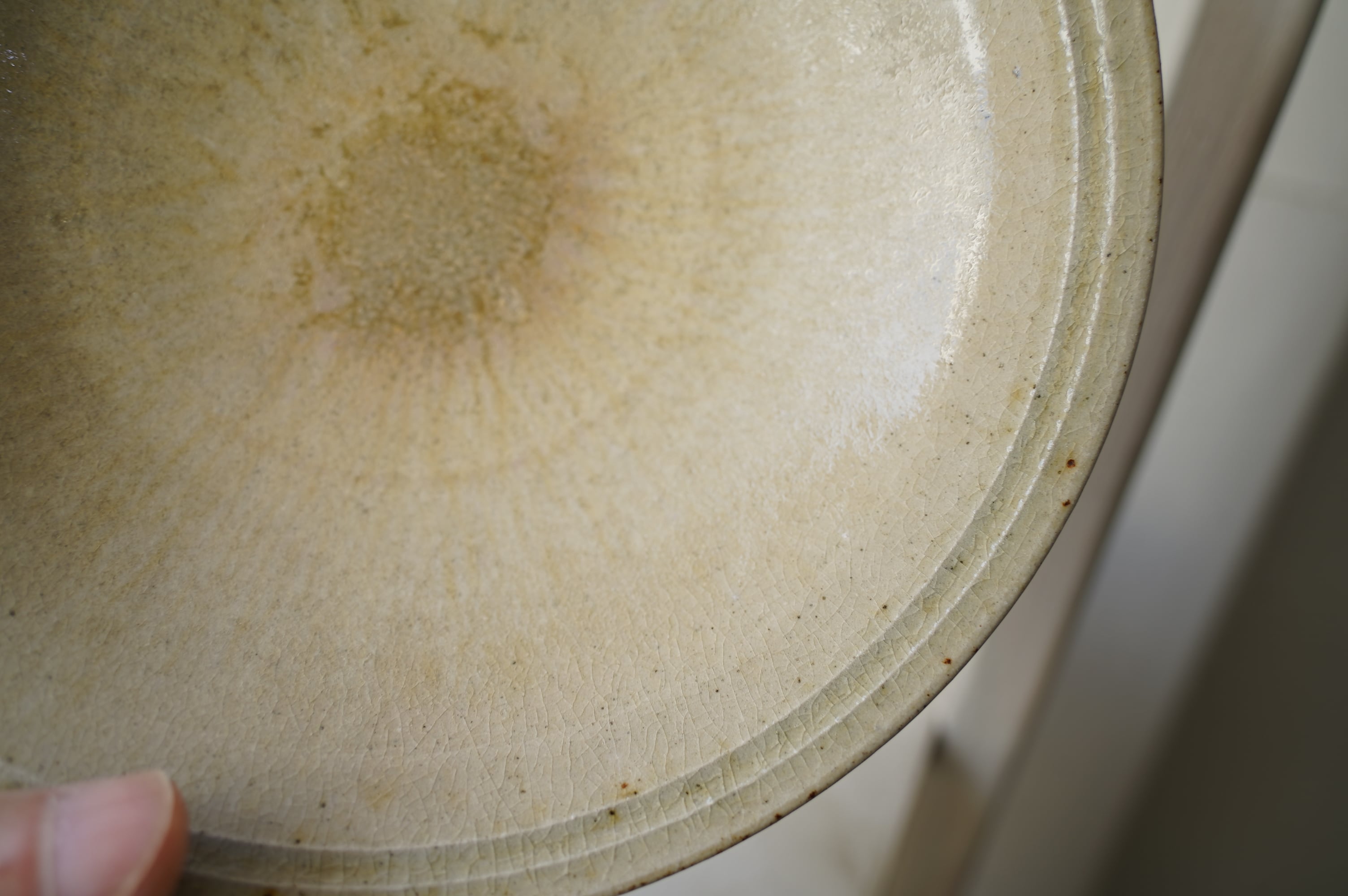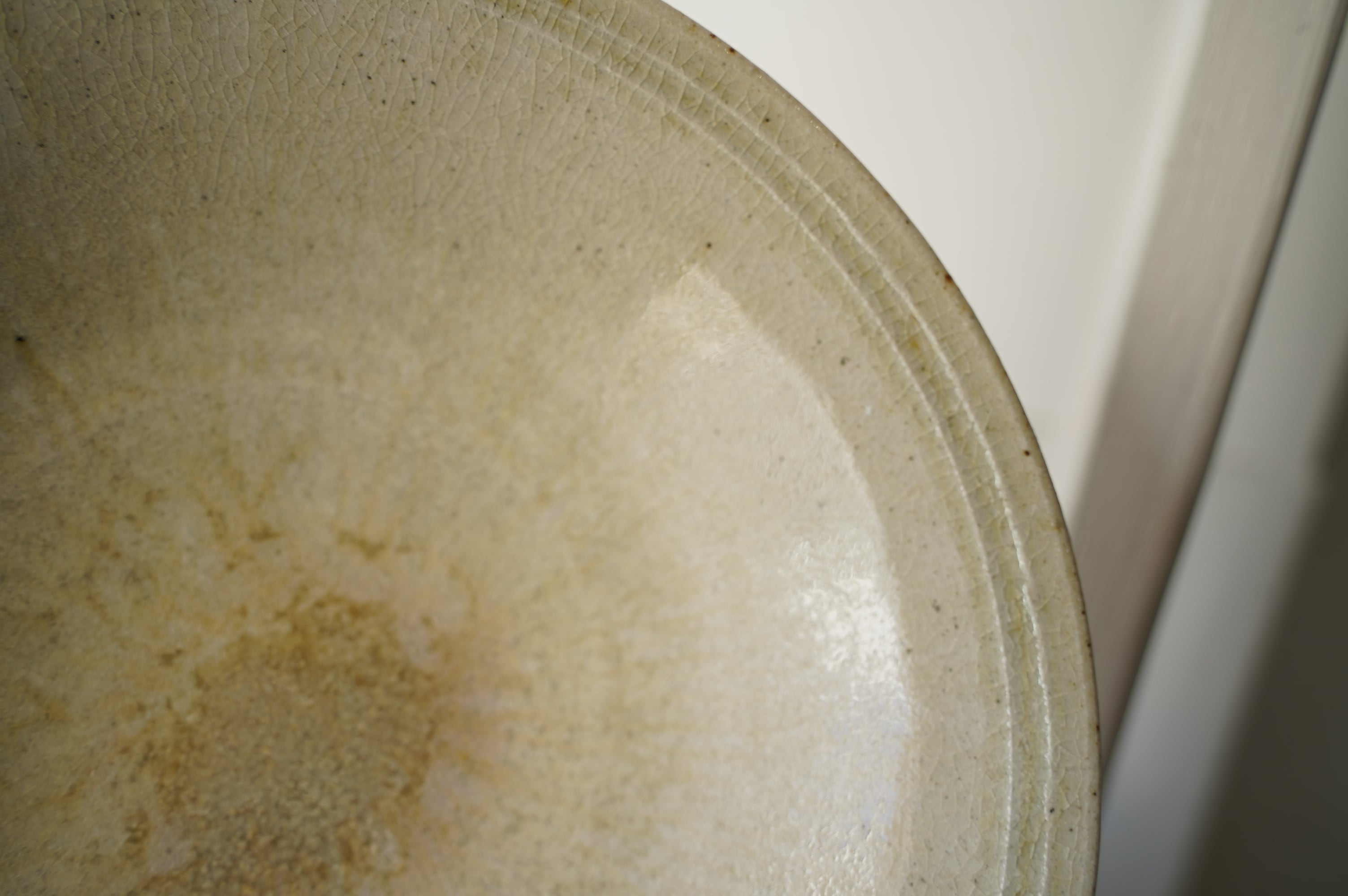 唐津の土に木の灰の釉薬を掛けて焼いたミニマルな作品。
