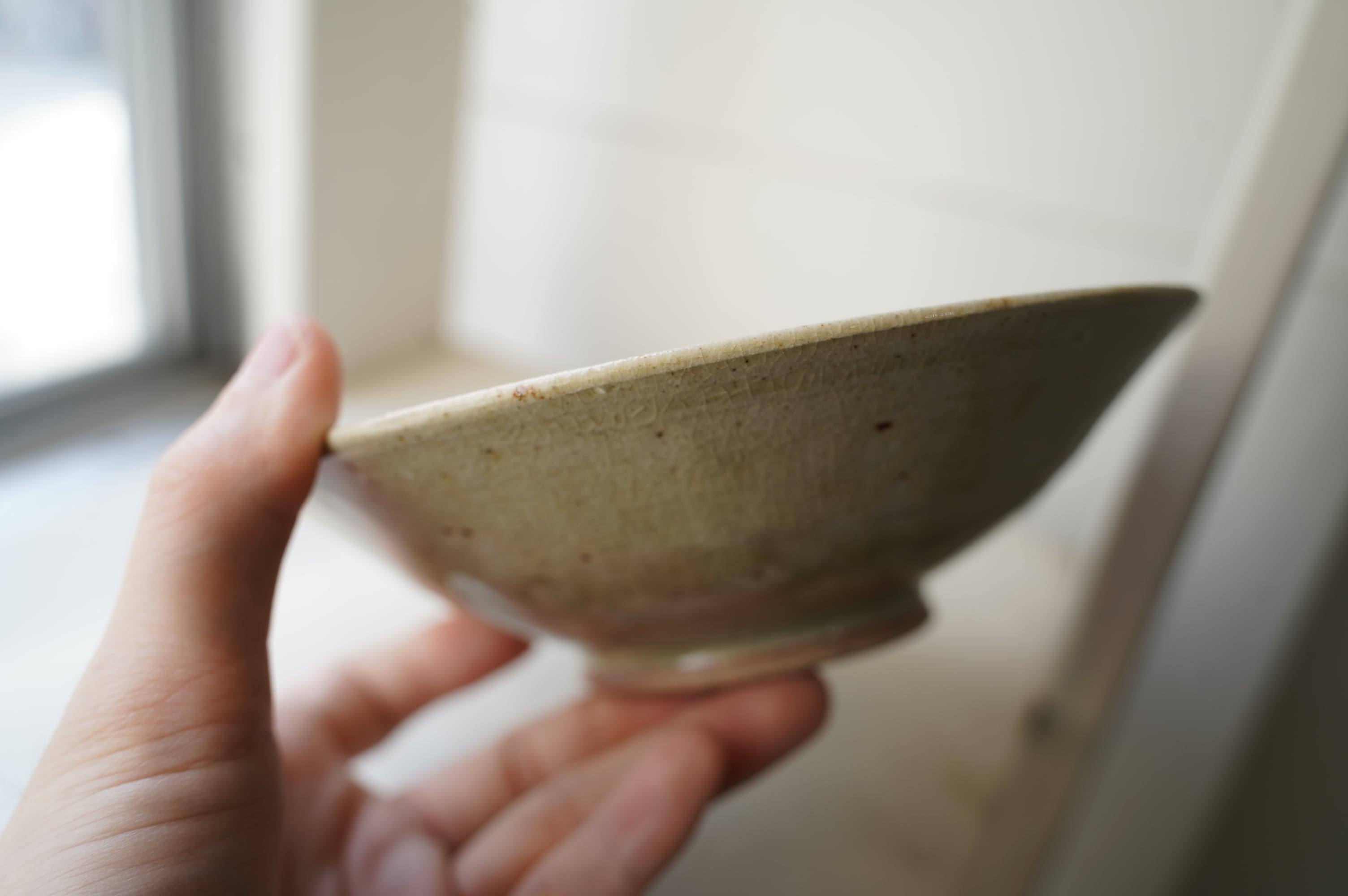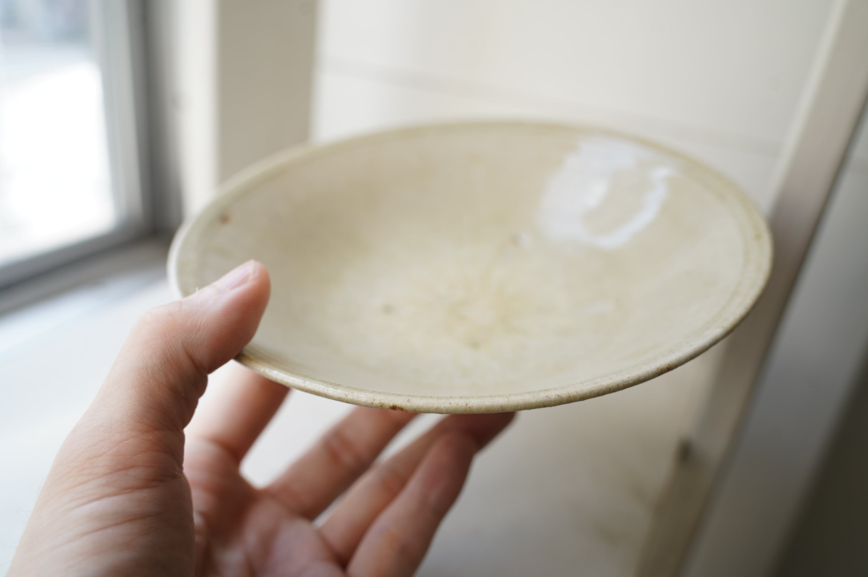 唐津の土に木の灰の釉薬を掛けて焼いたミニマルな作品。
