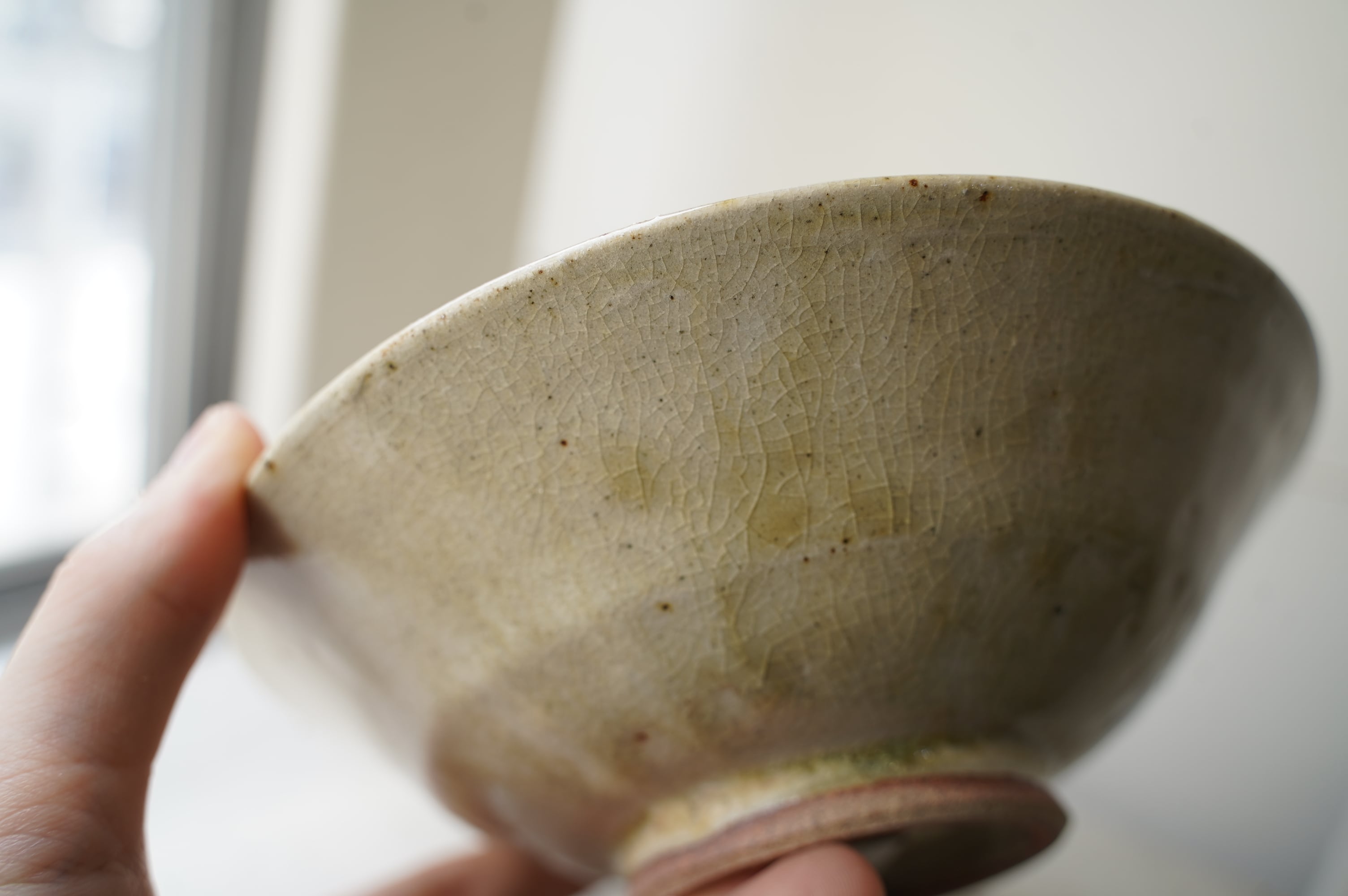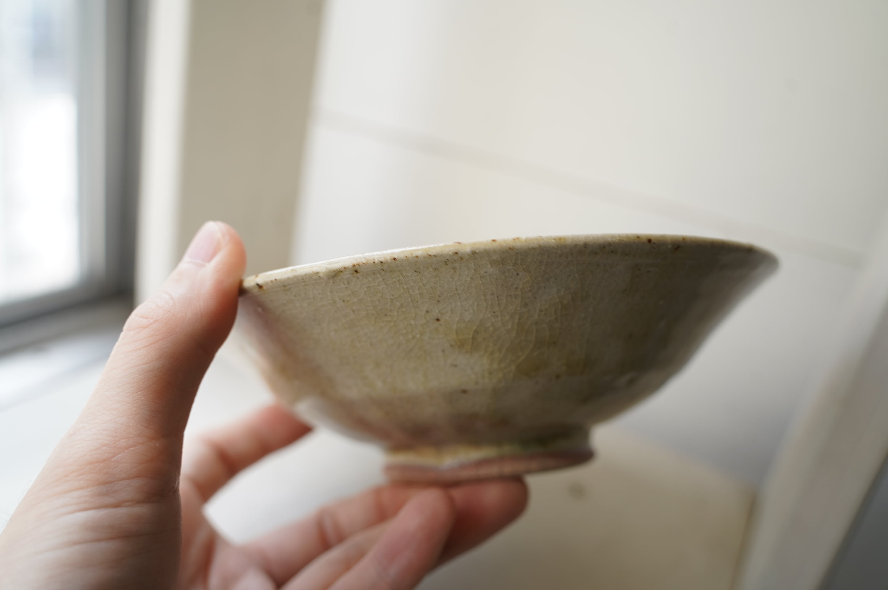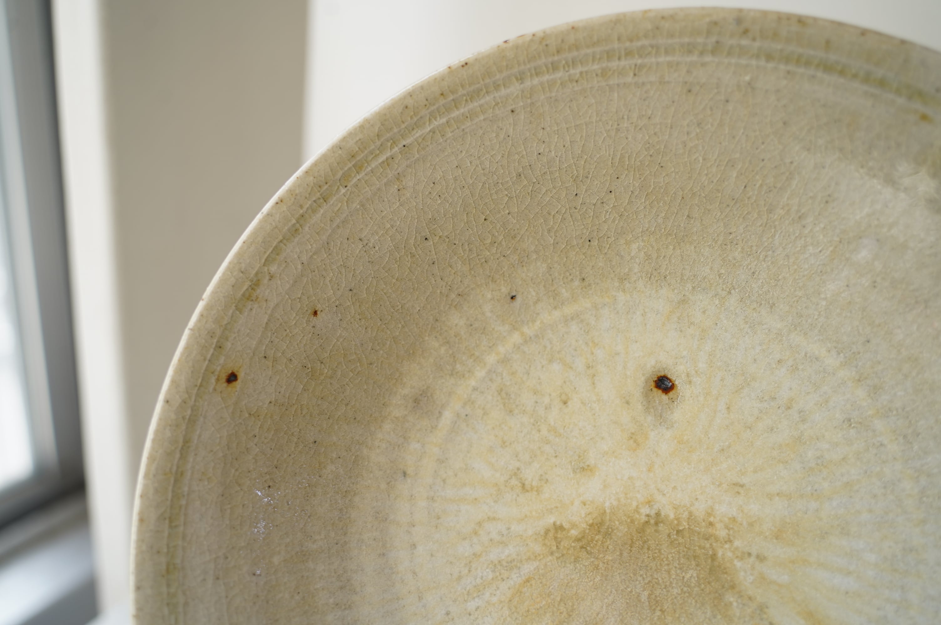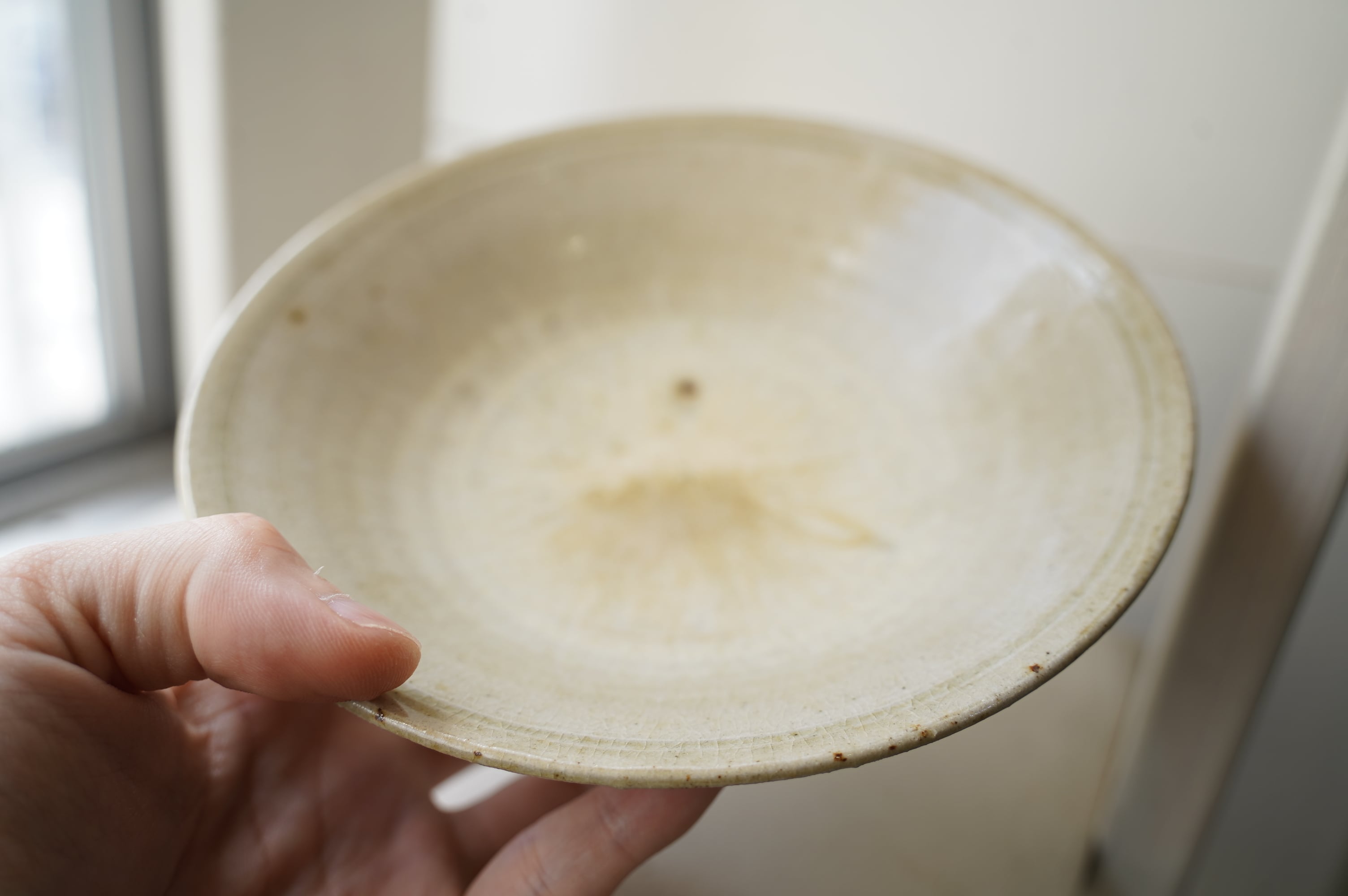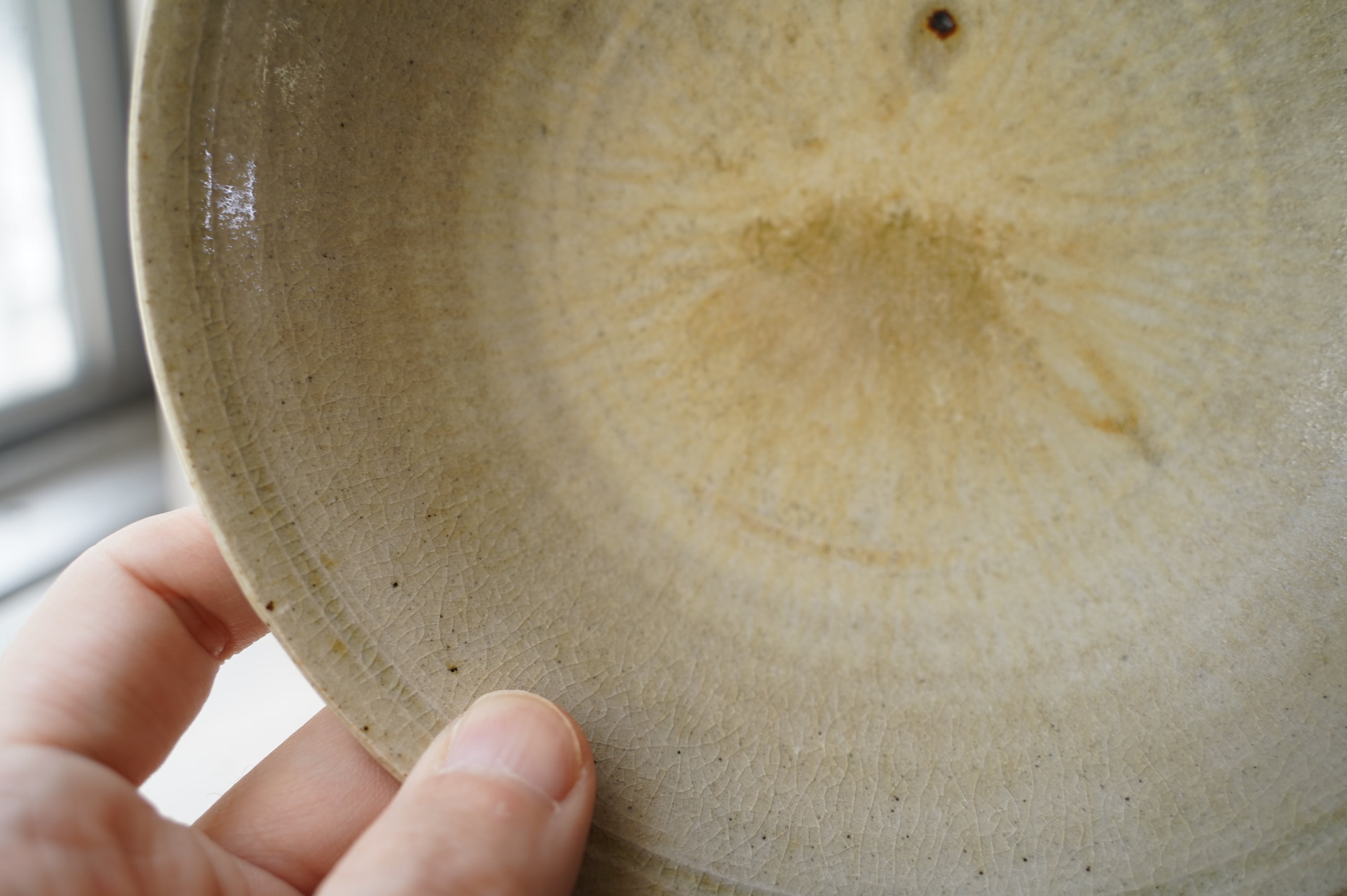 唐津の土に木の灰の釉薬を掛けて焼いたミニマルな作品。