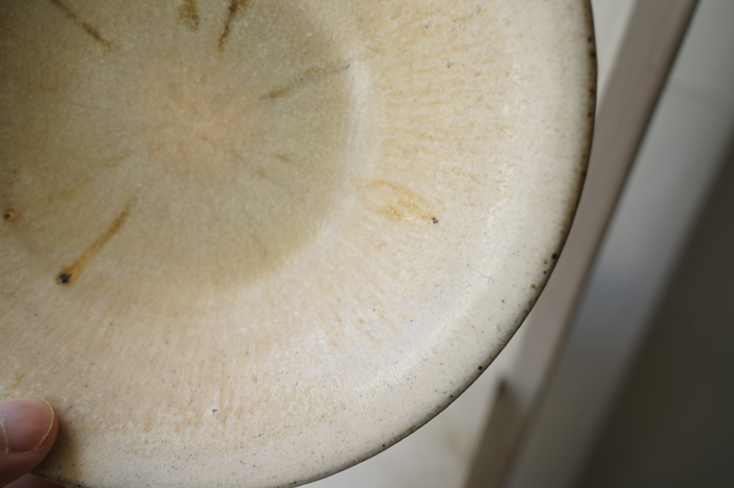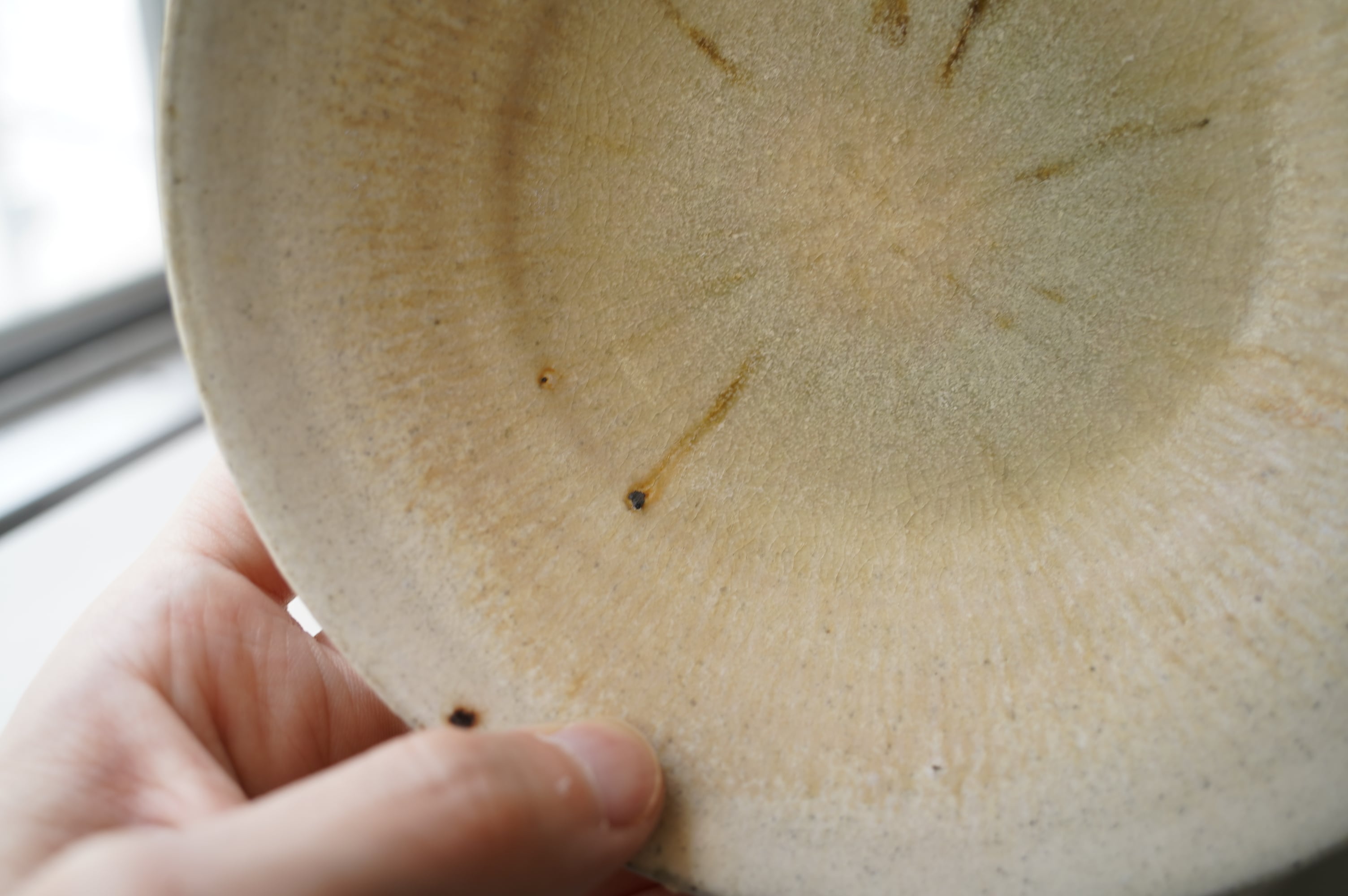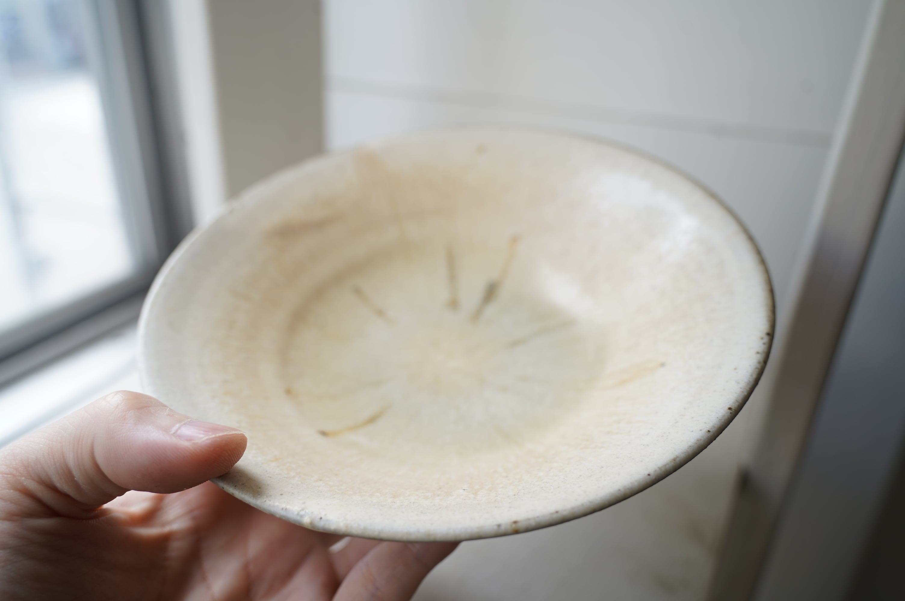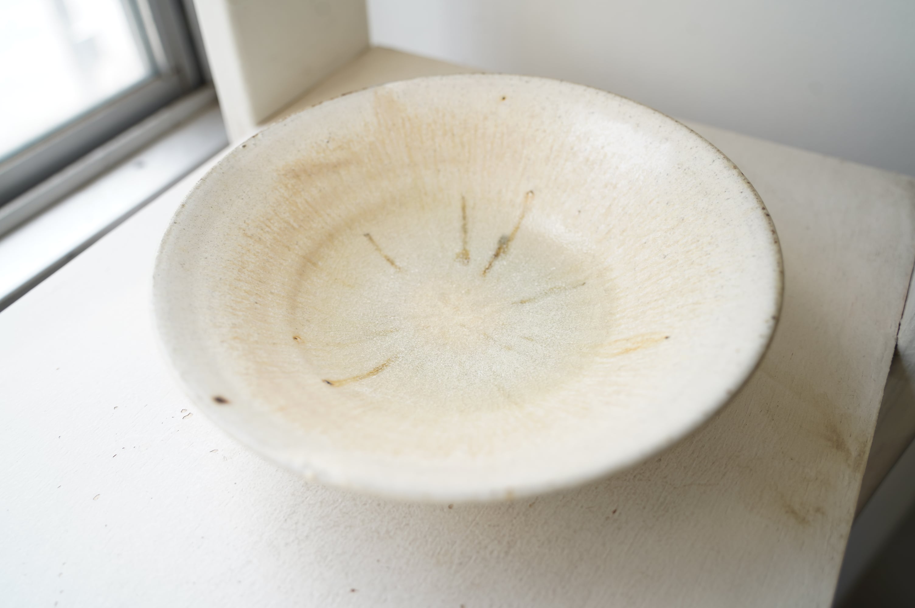 灰粉引というやり方で、化粧土を刷毛で塗り素焼きし、もう一度化粧土をかけ素焼き、