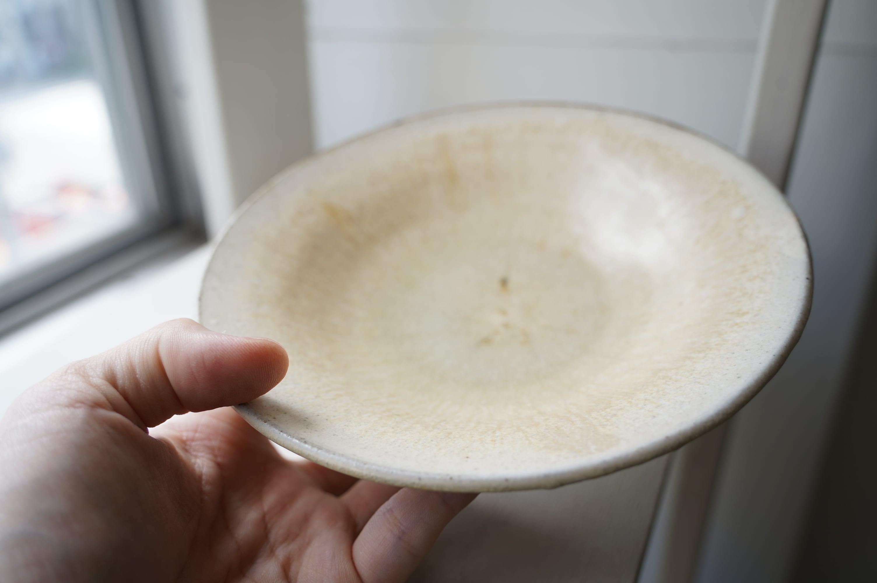 灰粉引というやり方で、化粧土を刷毛で塗り素焼きし、もう一度化粧土をかけ素焼き、