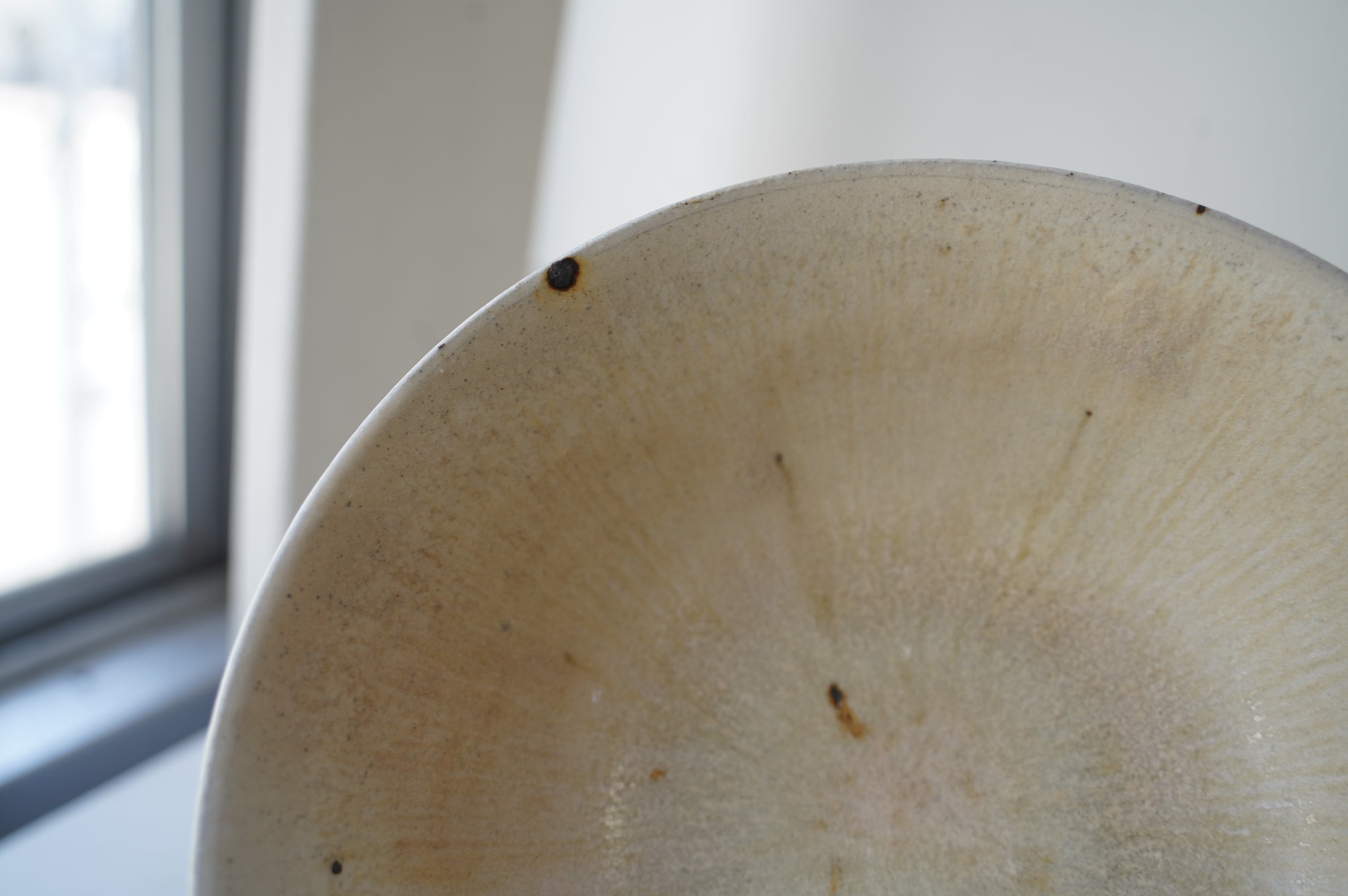 灰粉引というやり方で、化粧土を刷毛で塗り素焼きし、もう一度化粧土をかけ素焼き、