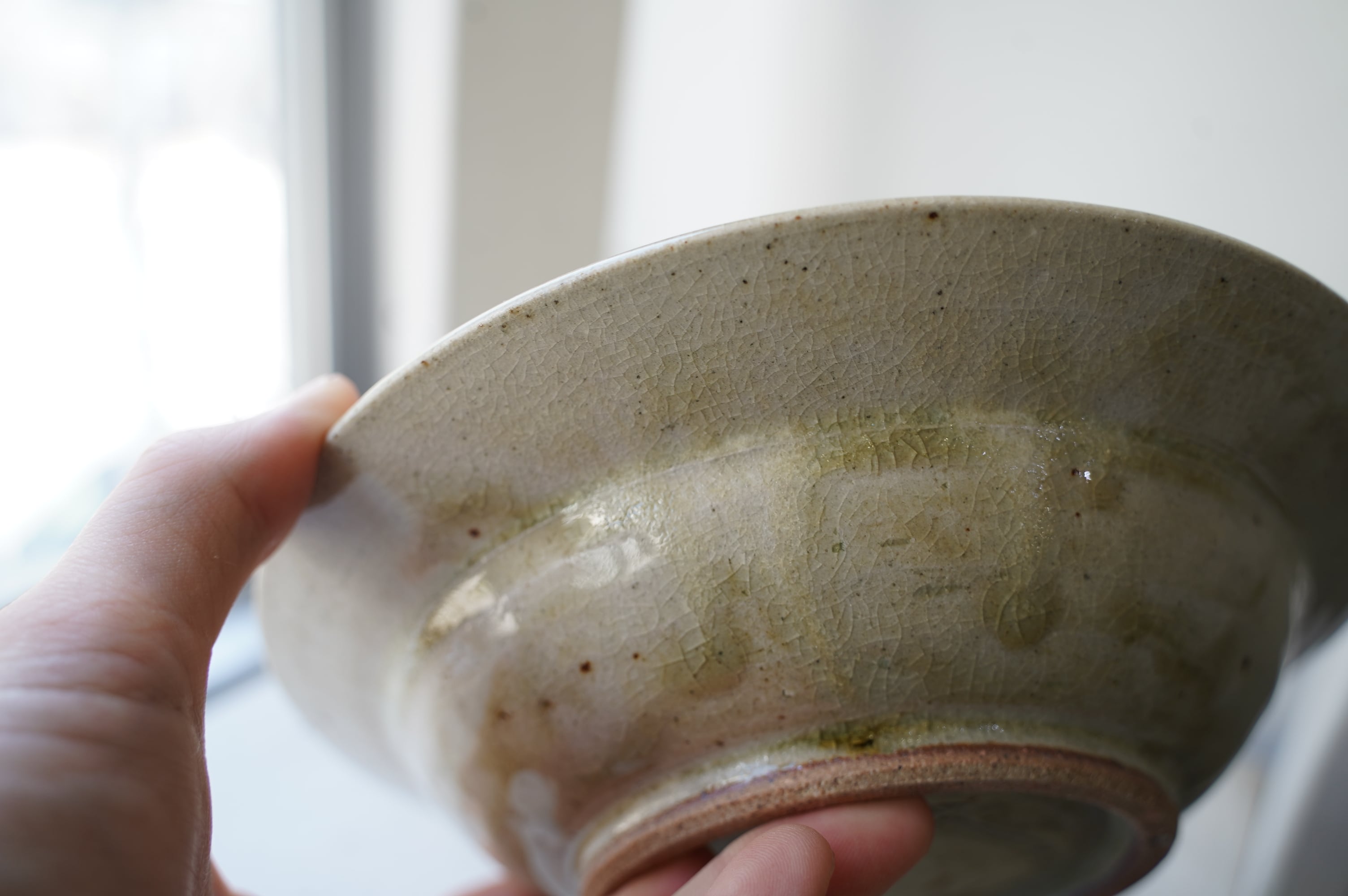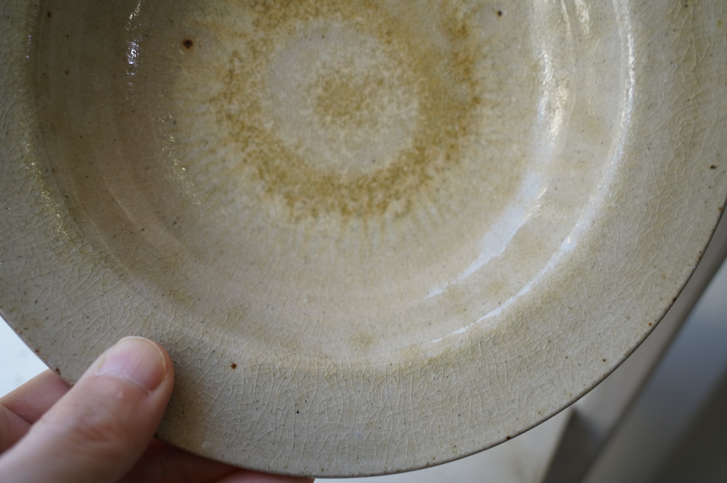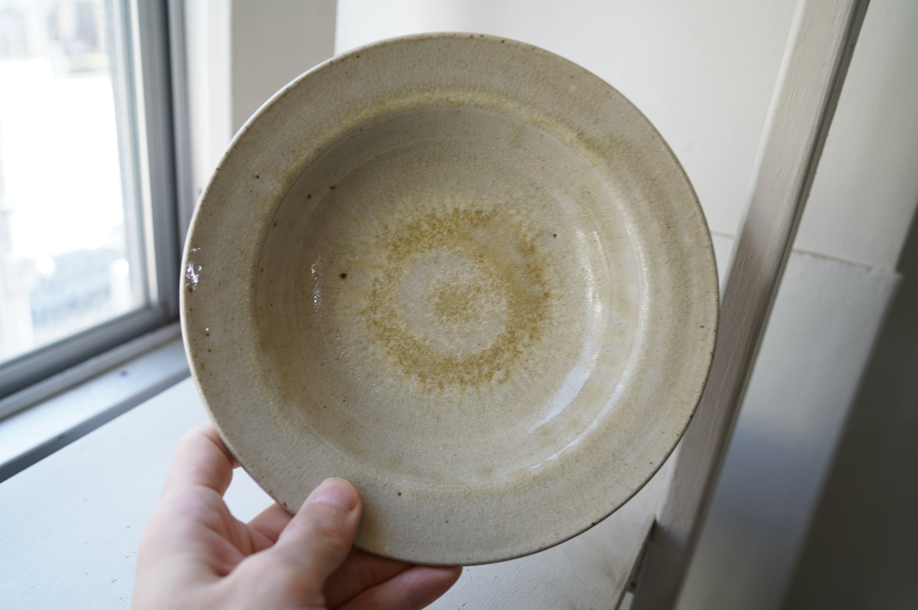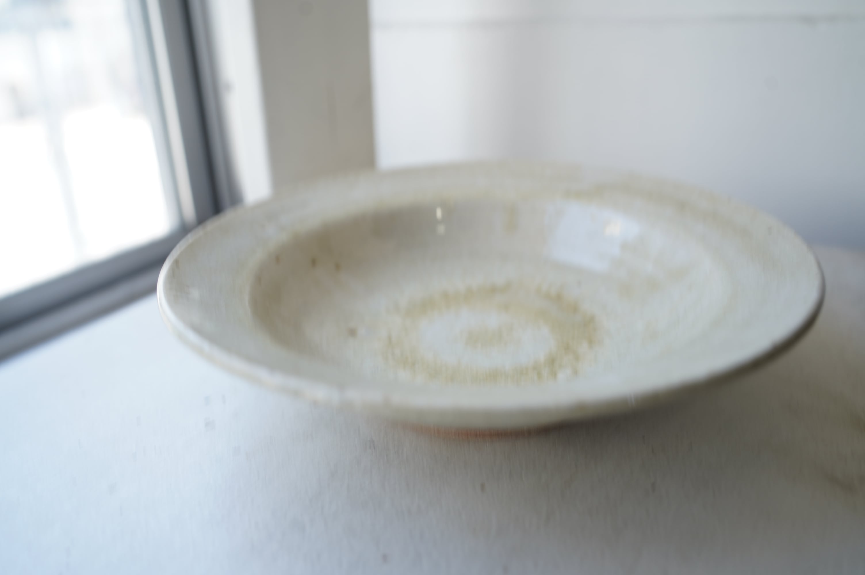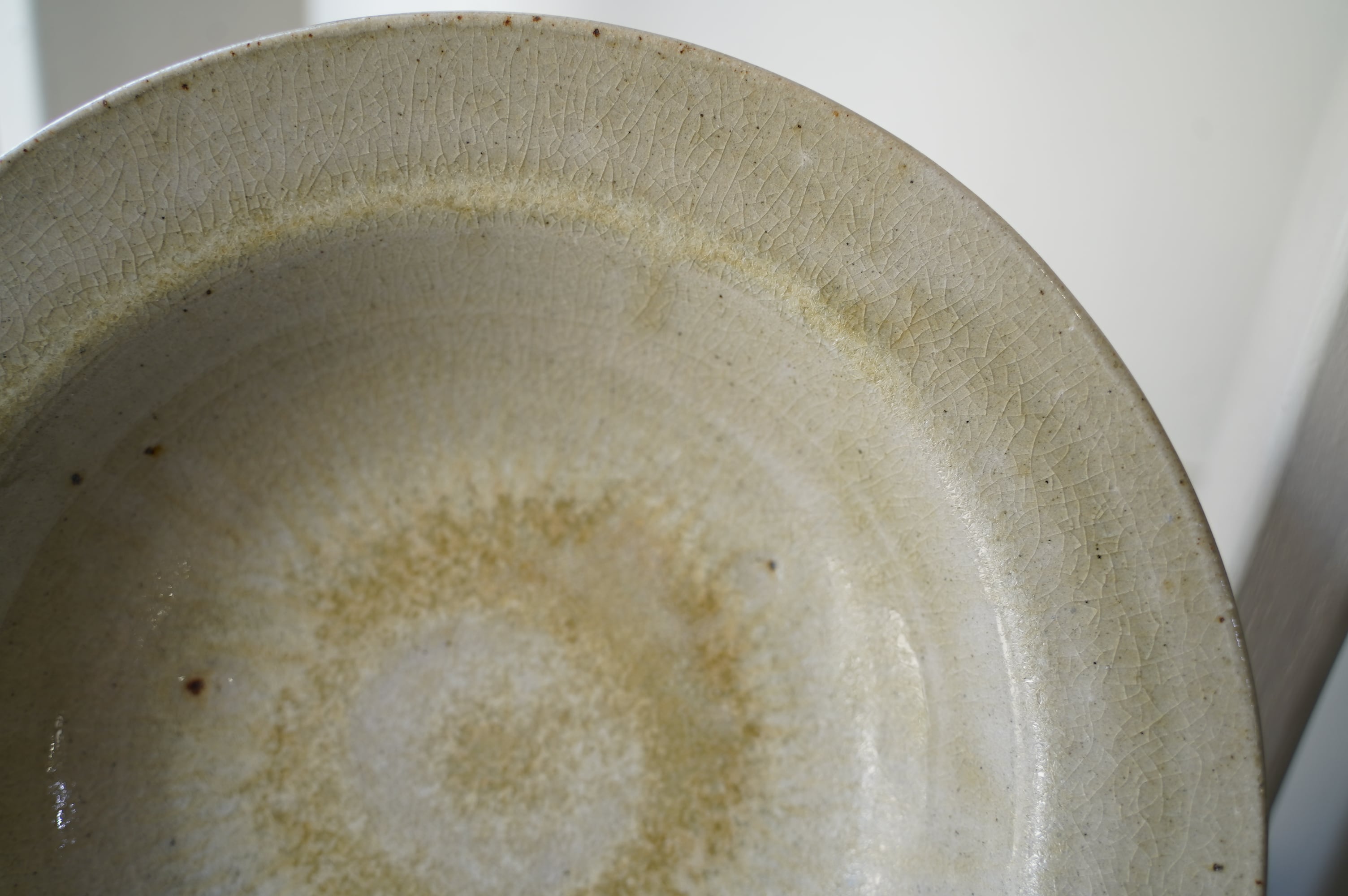 唐津の土に木の灰の釉薬を掛けて焼いたミニマルな作品。