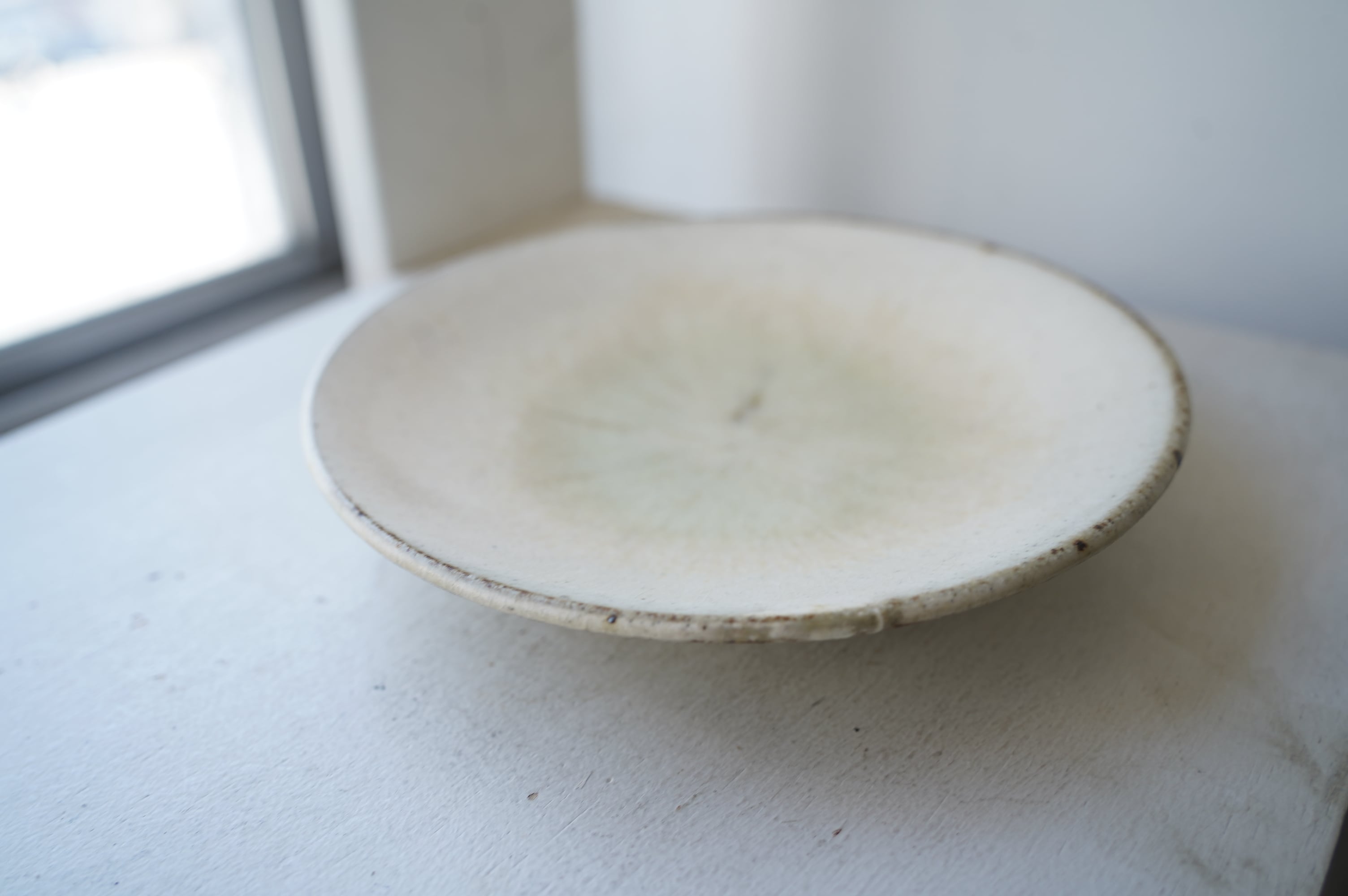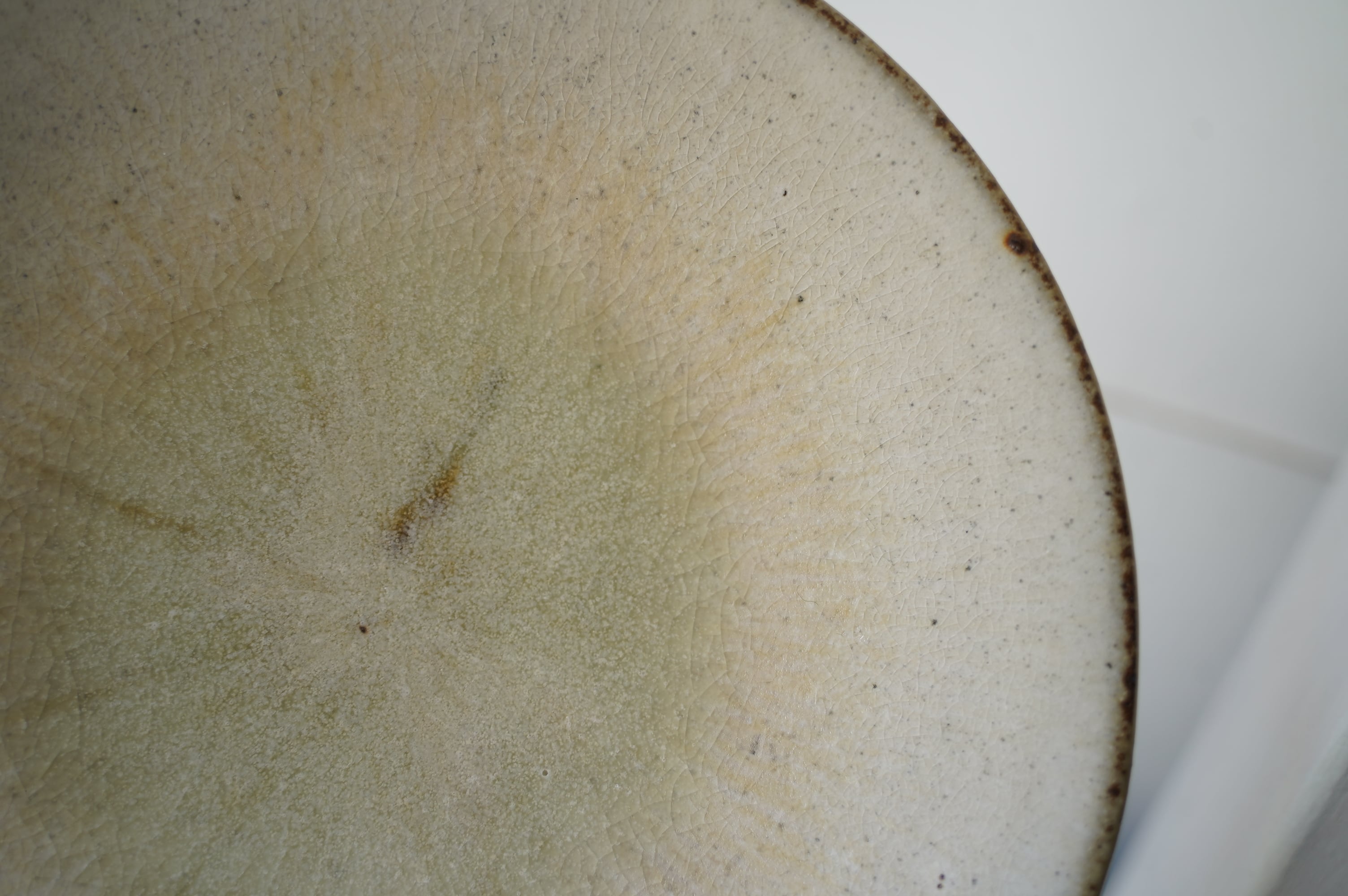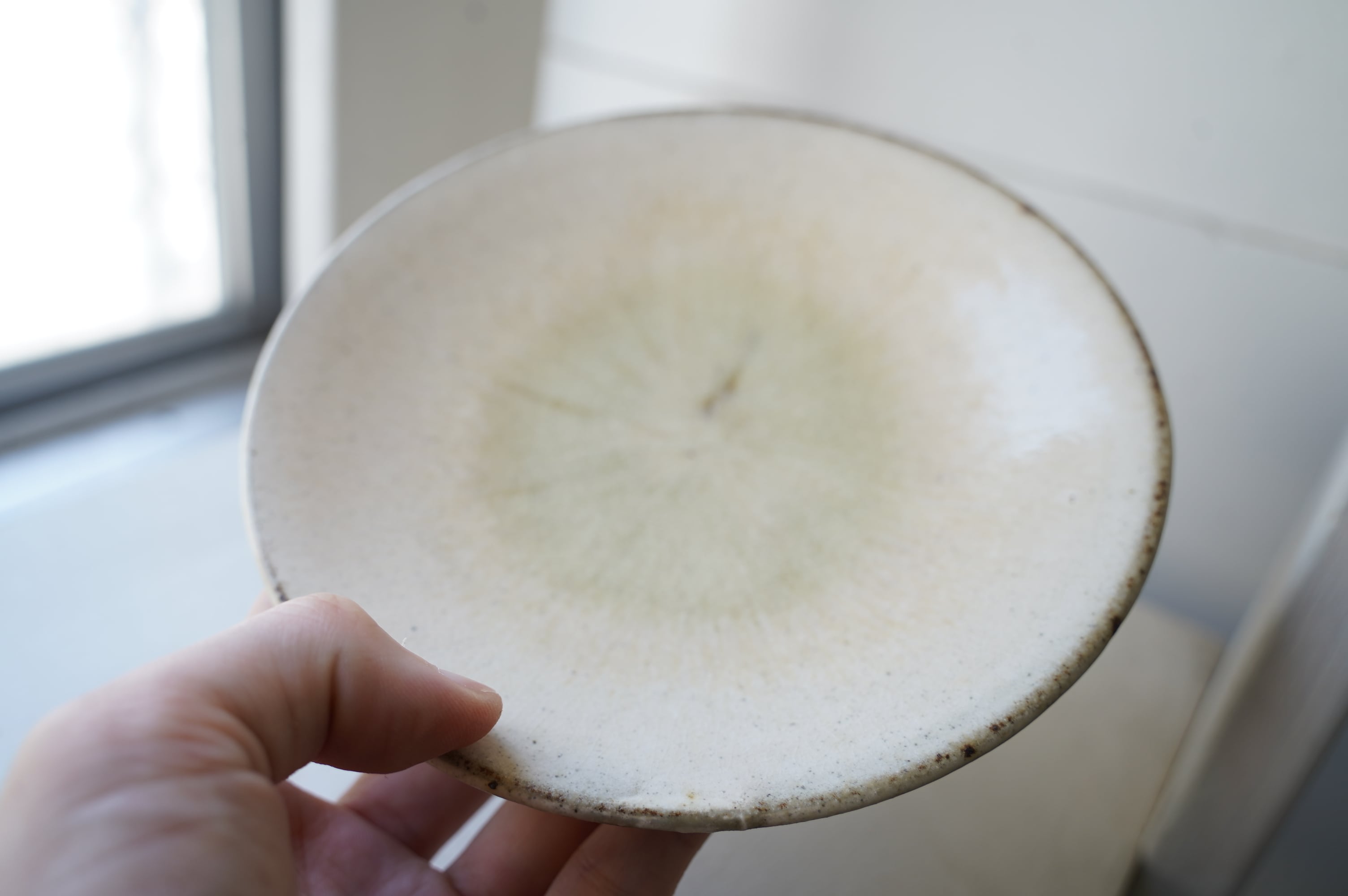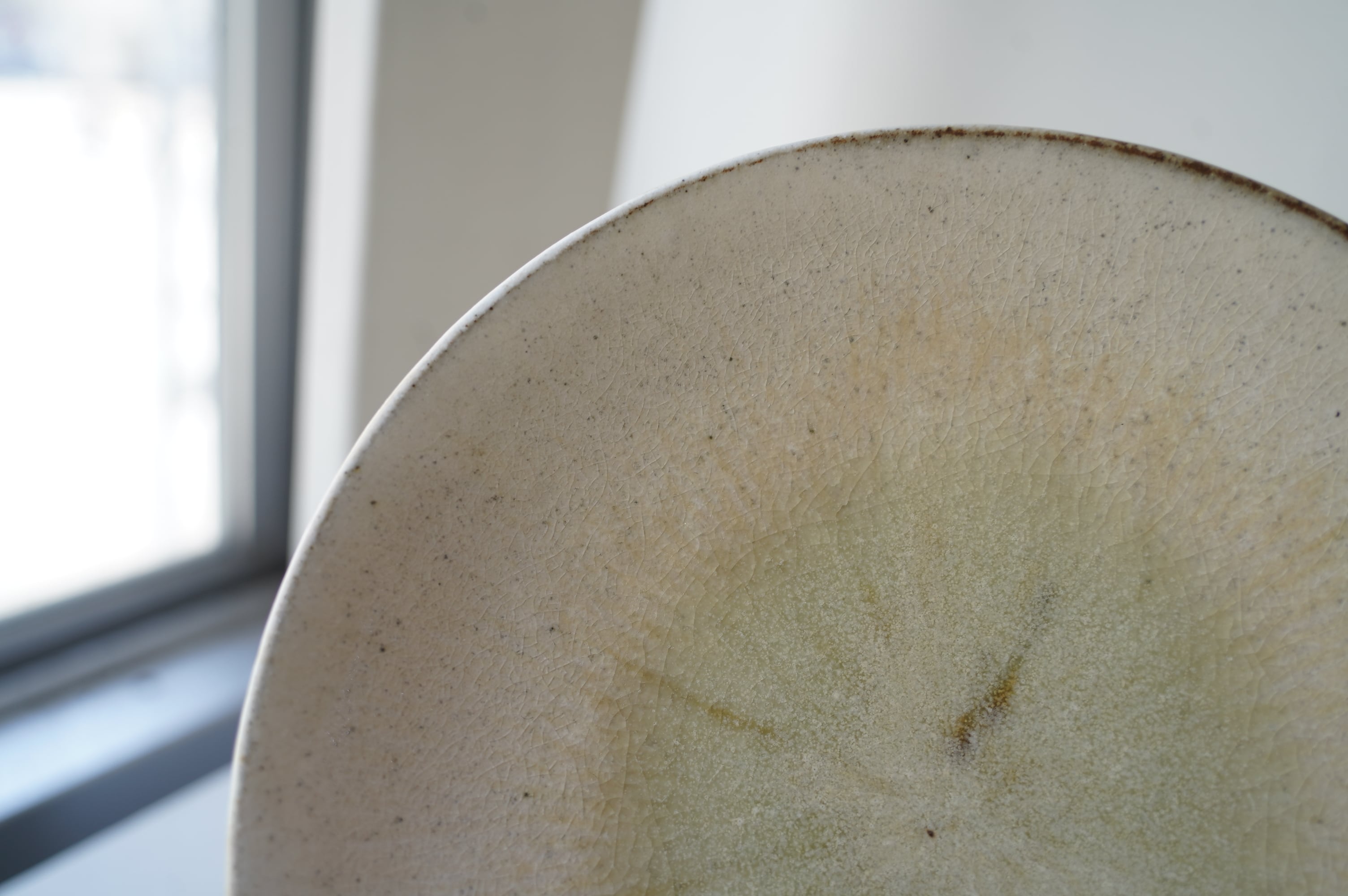 灰粉引というやり方で、化粧土を刷毛で塗り素焼きし、もう一度化粧土をかけ素焼き、