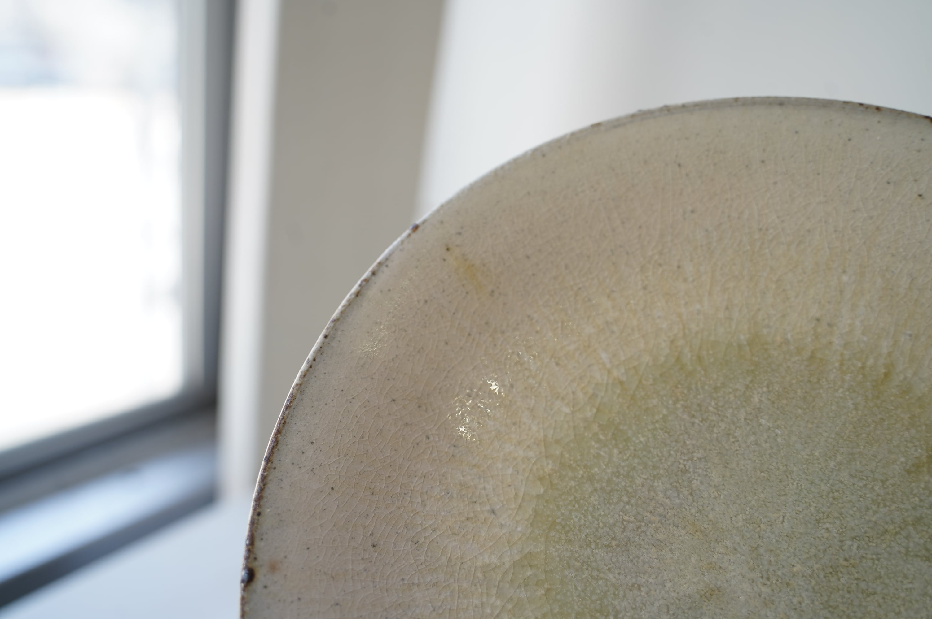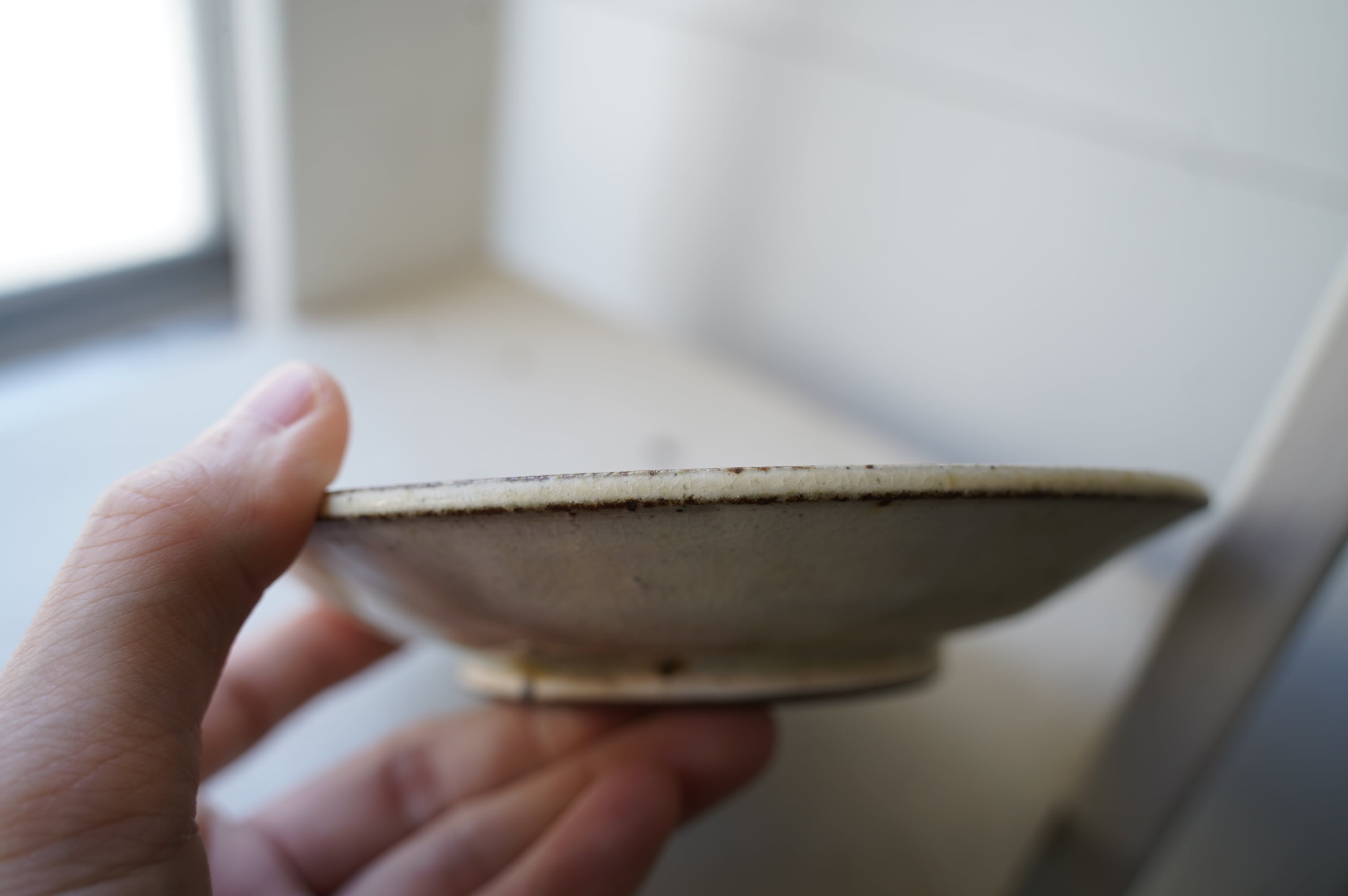 灰粉引というやり方で、化粧土を刷毛で塗り素焼きし、もう一度化粧土をかけ素焼き、