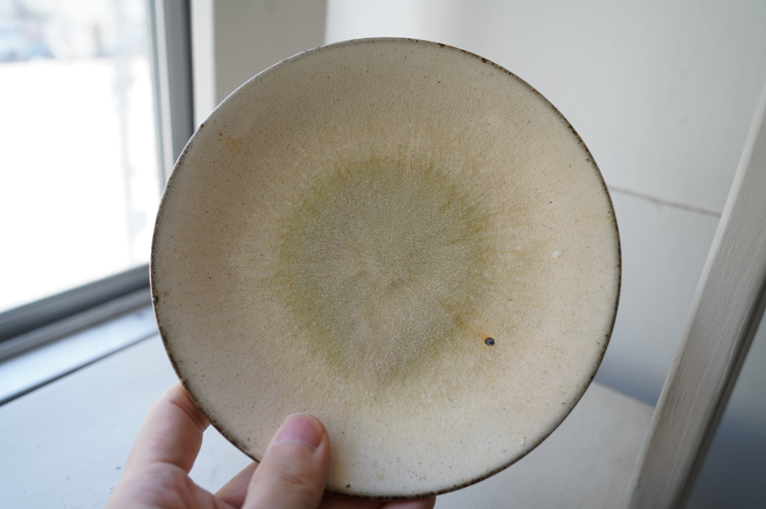 最後に彼が薪ストーブで燃やした薪の灰を調合した釉薬をかけ本焼きしています。