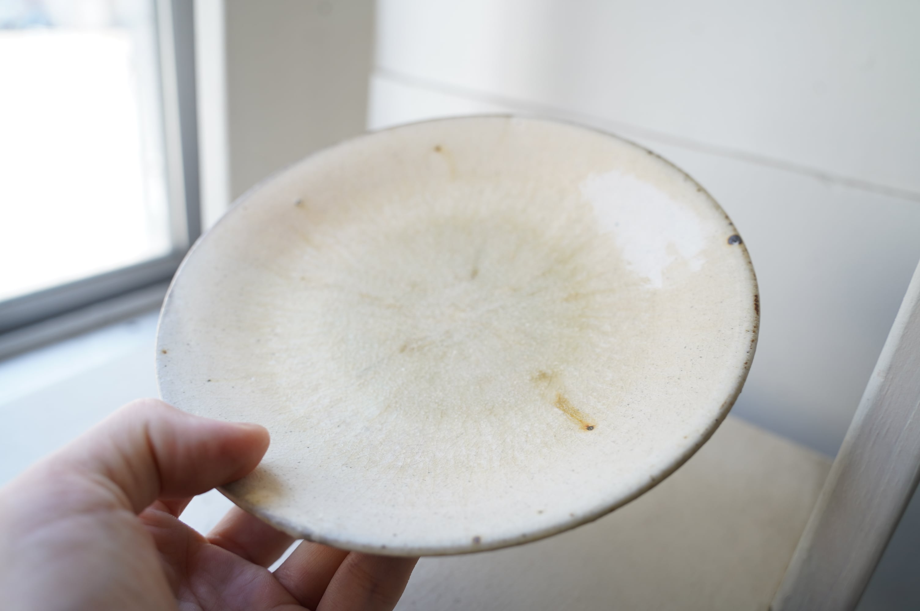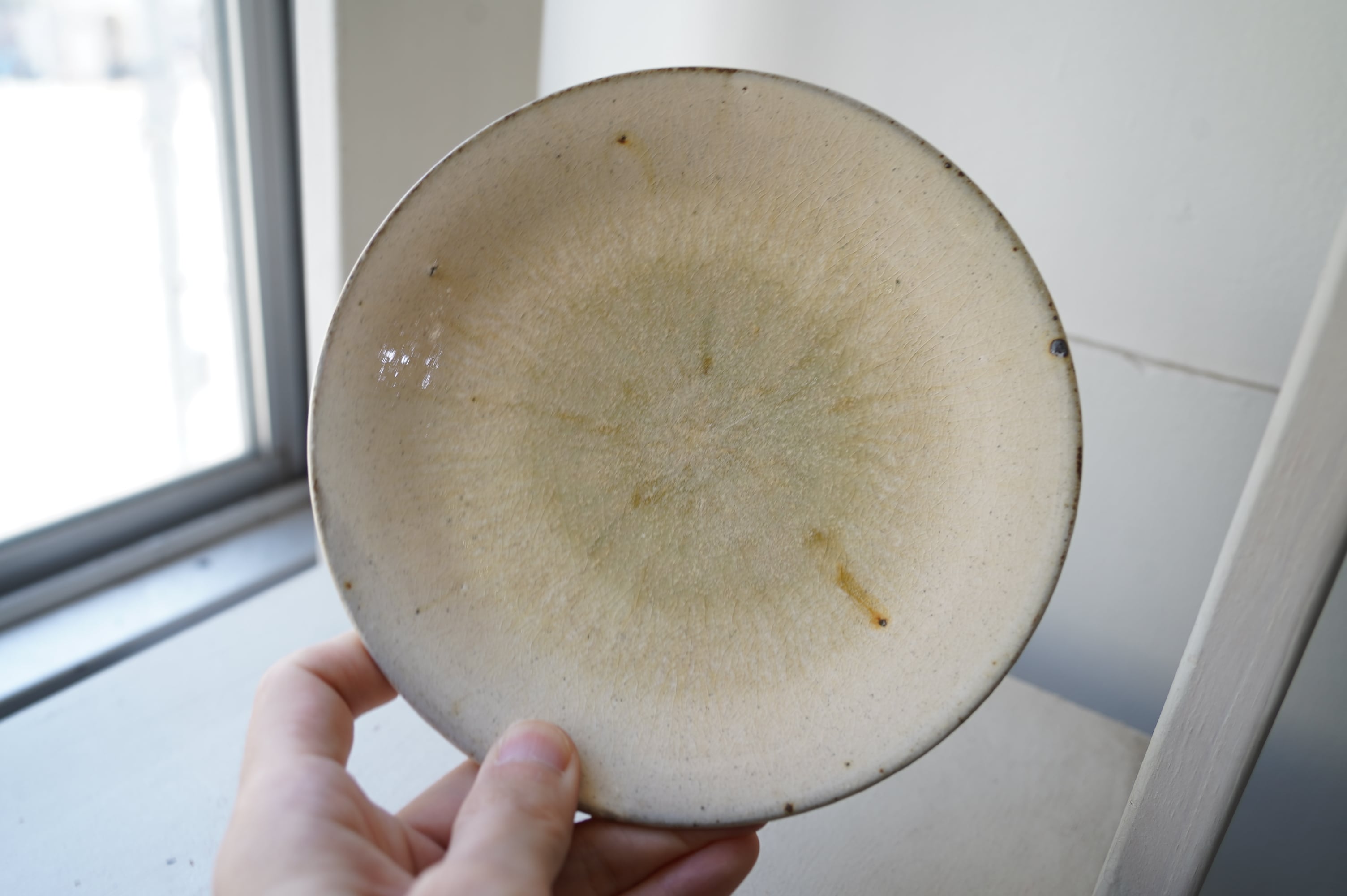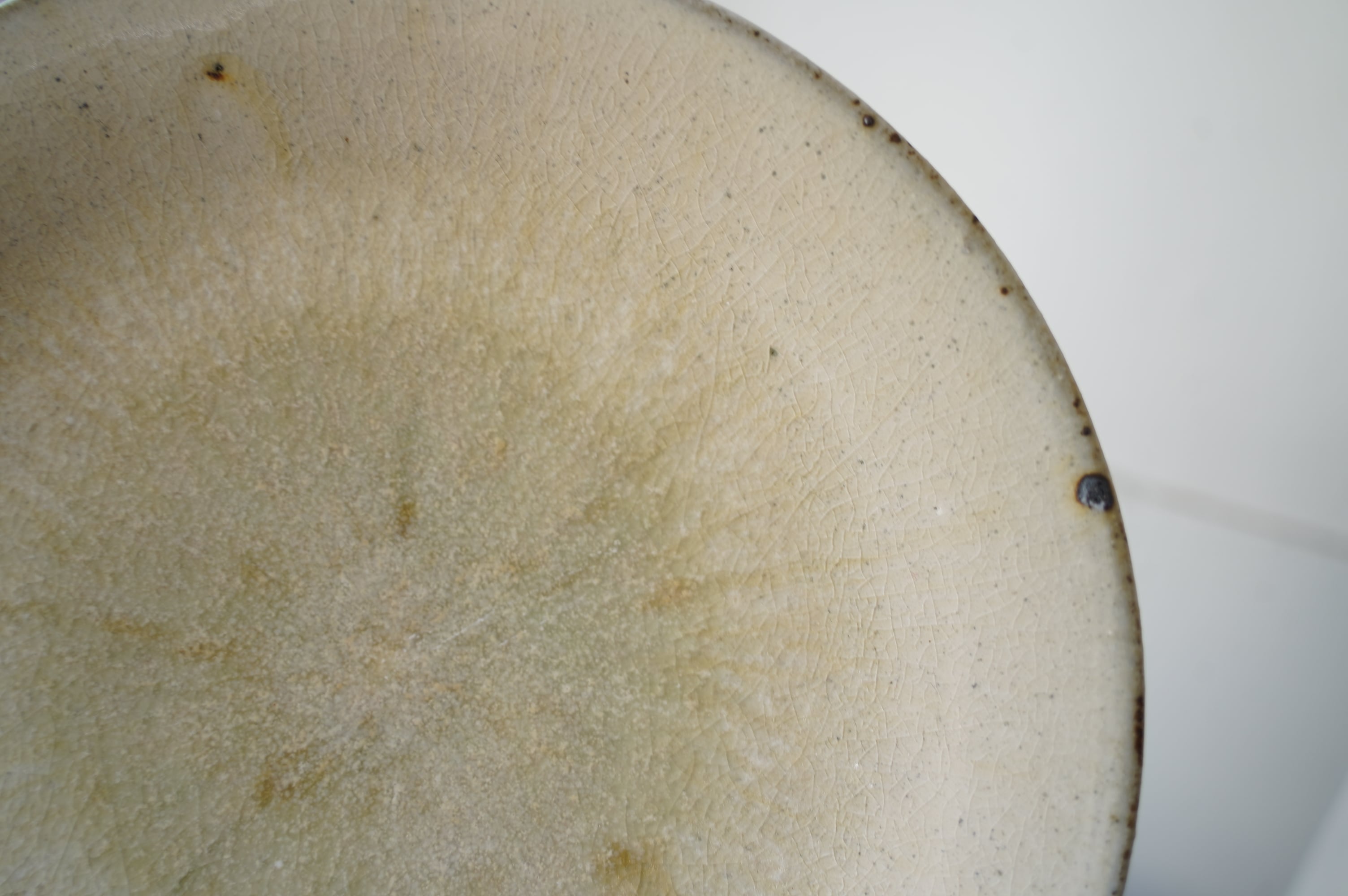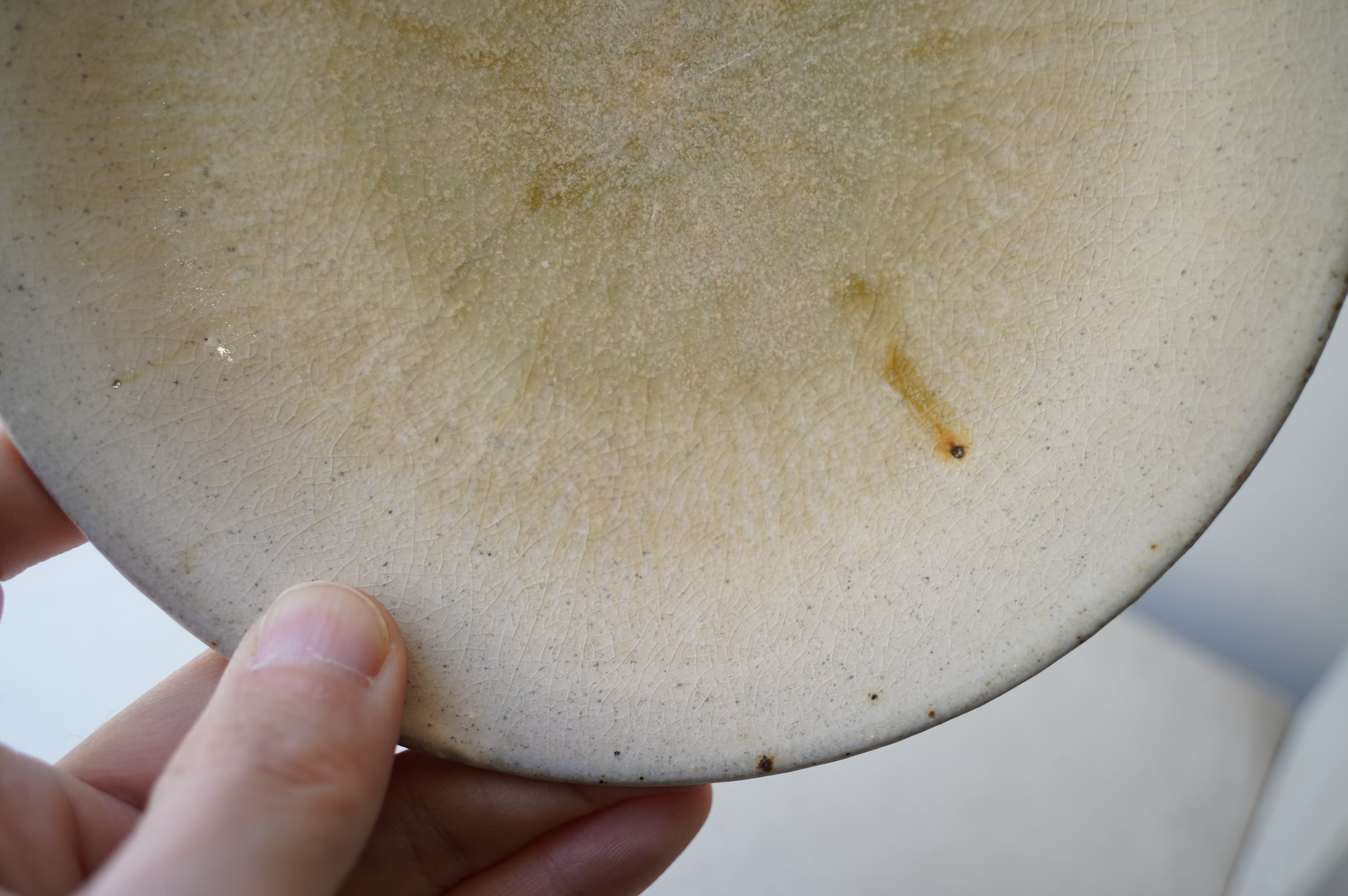 灰粉引というやり方で、化粧土を刷毛で塗り素焼きし、もう一度化粧土をかけ素焼き、