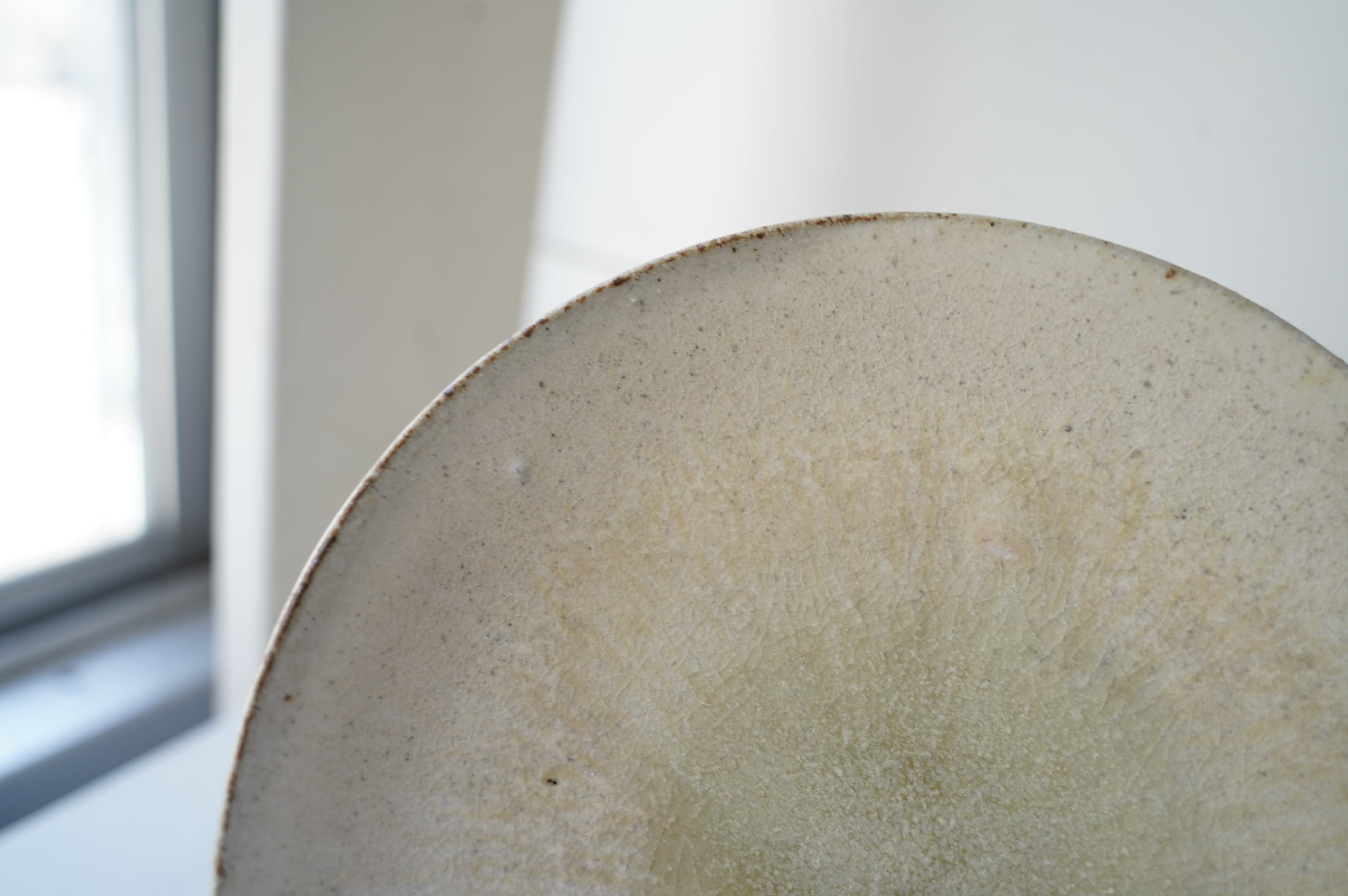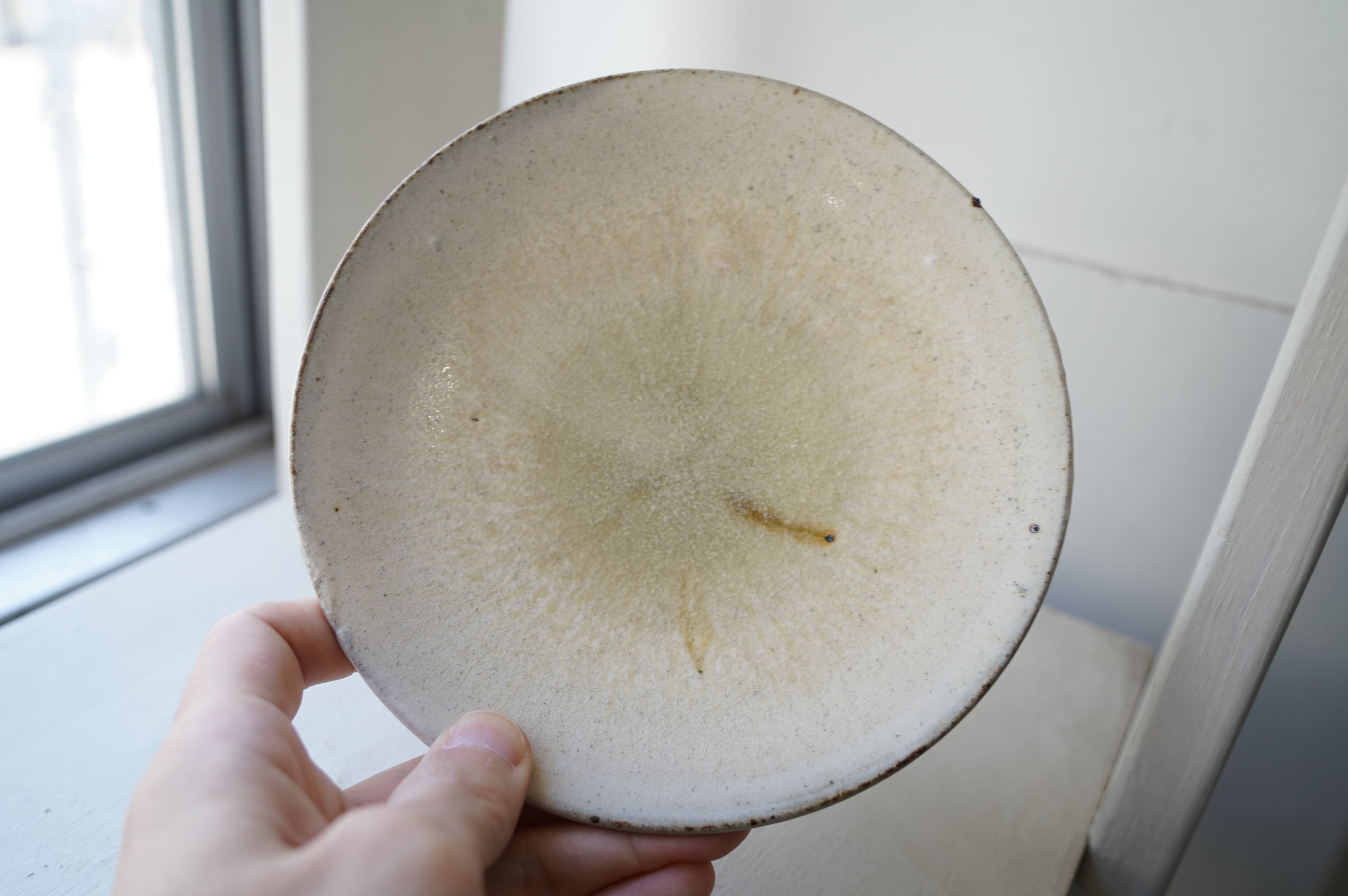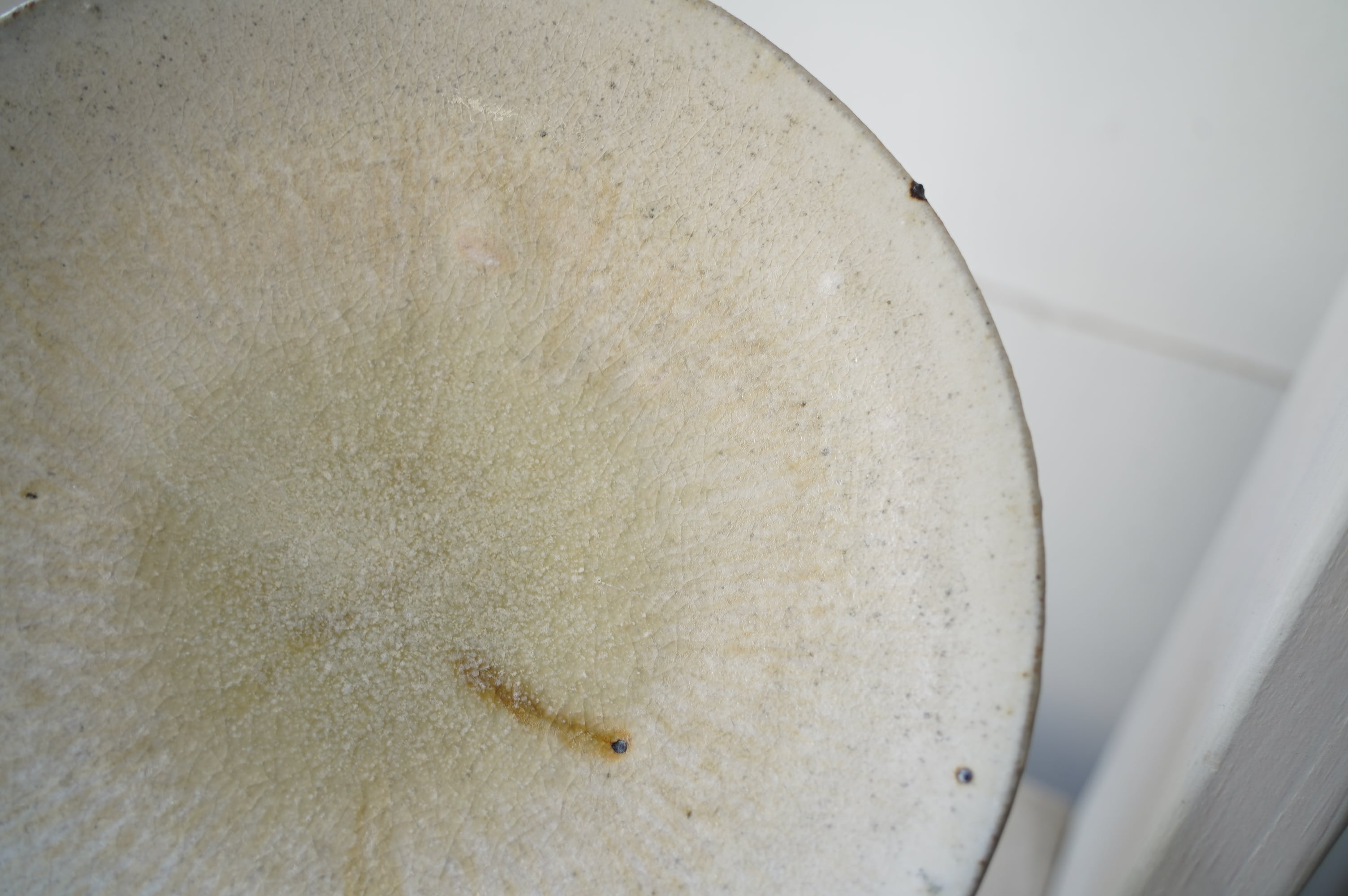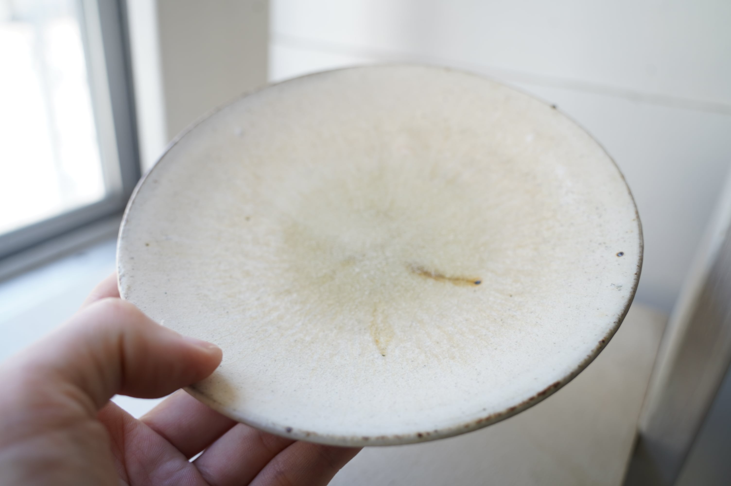 灰粉引というやり方で、化粧土を刷毛で塗り素焼きし、もう一度化粧土をかけ素焼き、
