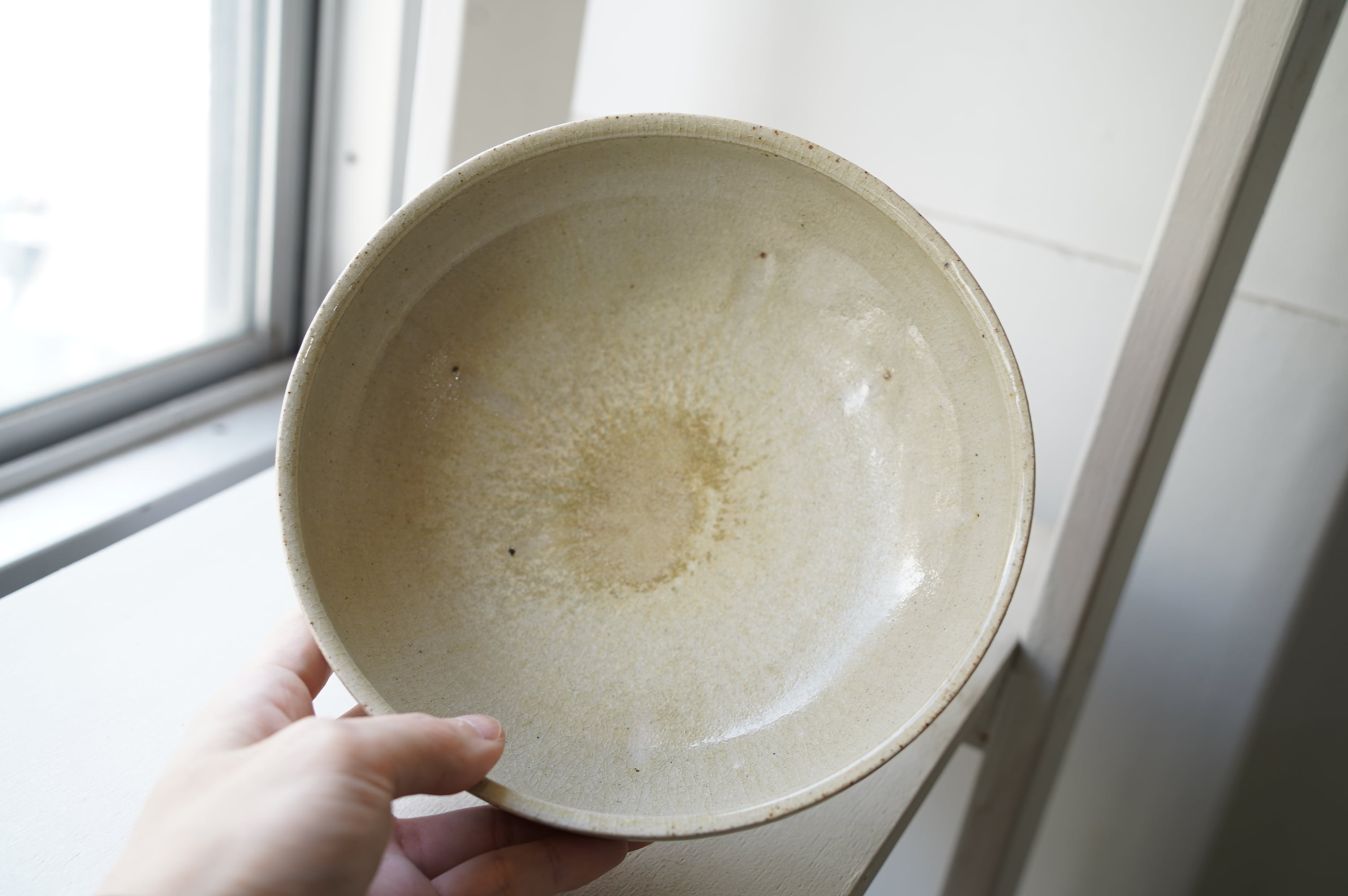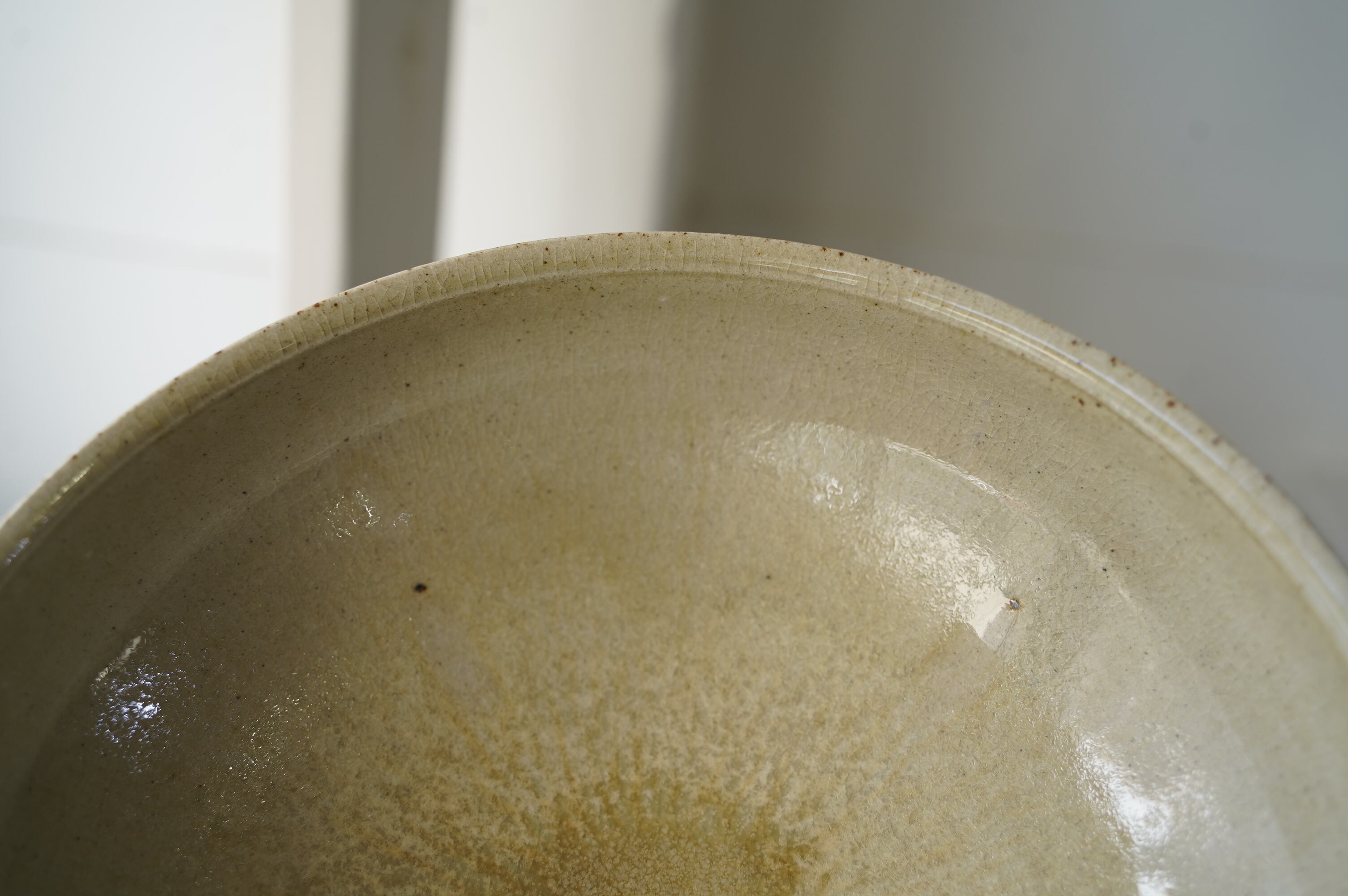 唐津の土に木の灰の釉薬を掛けて焼いたミニマルな作品。