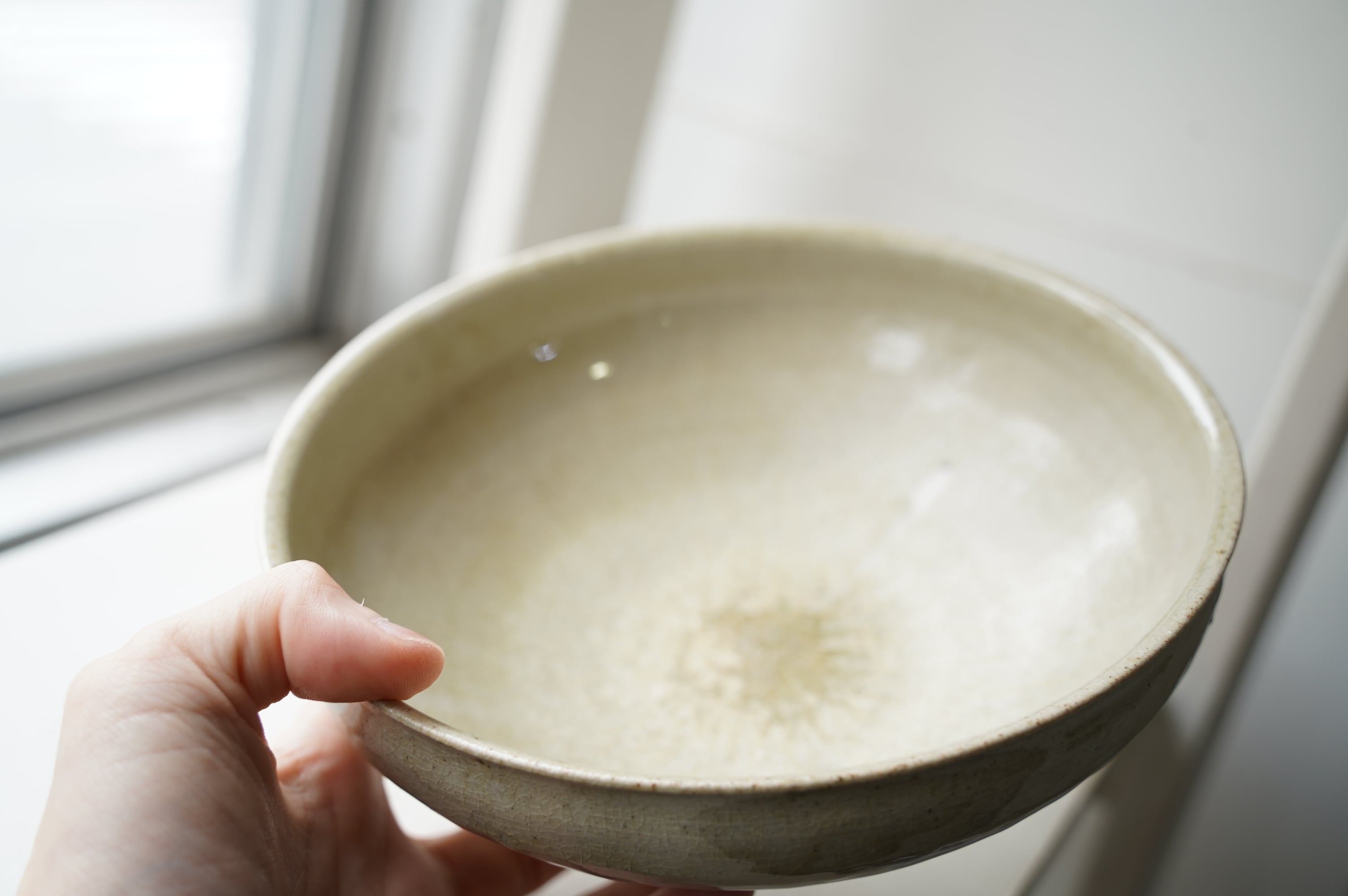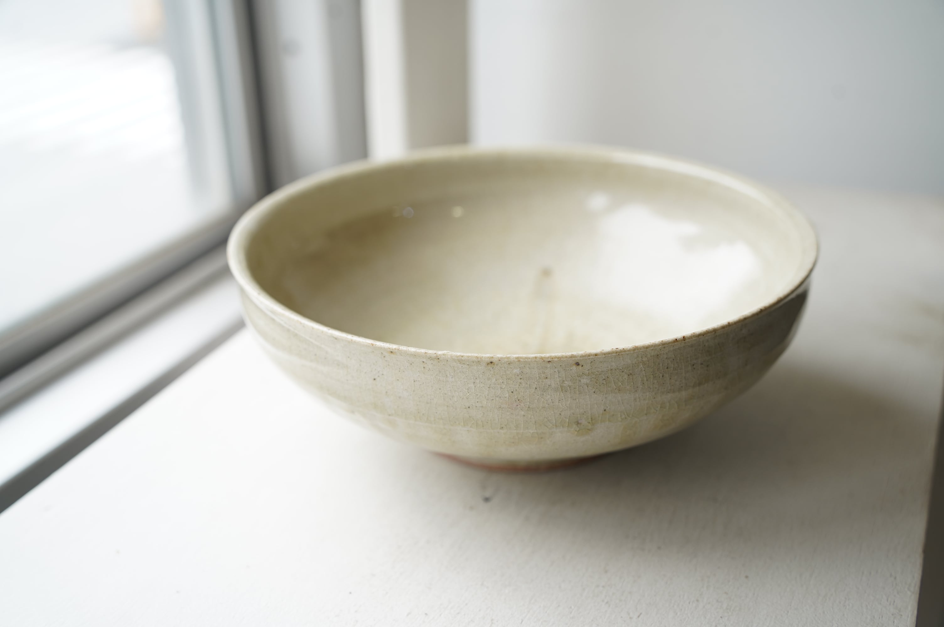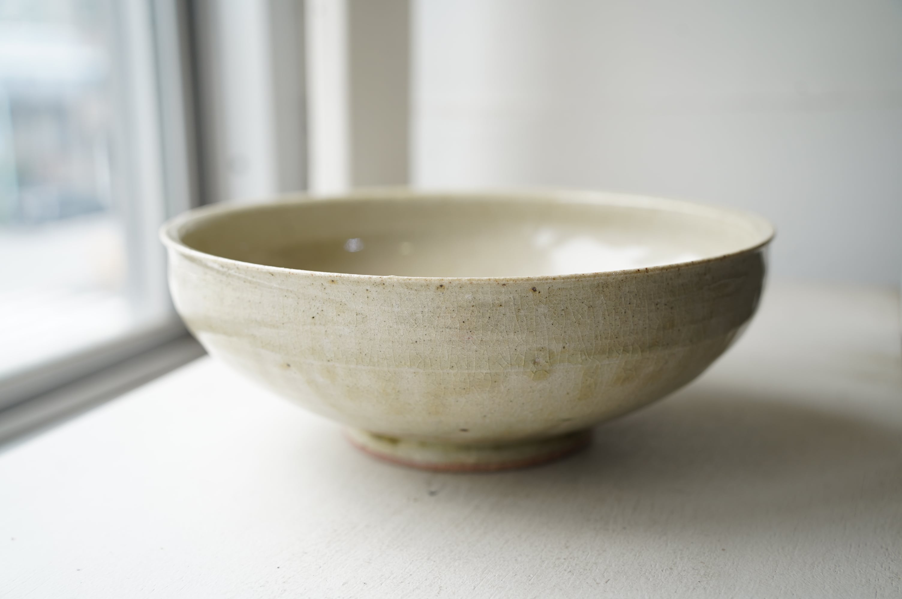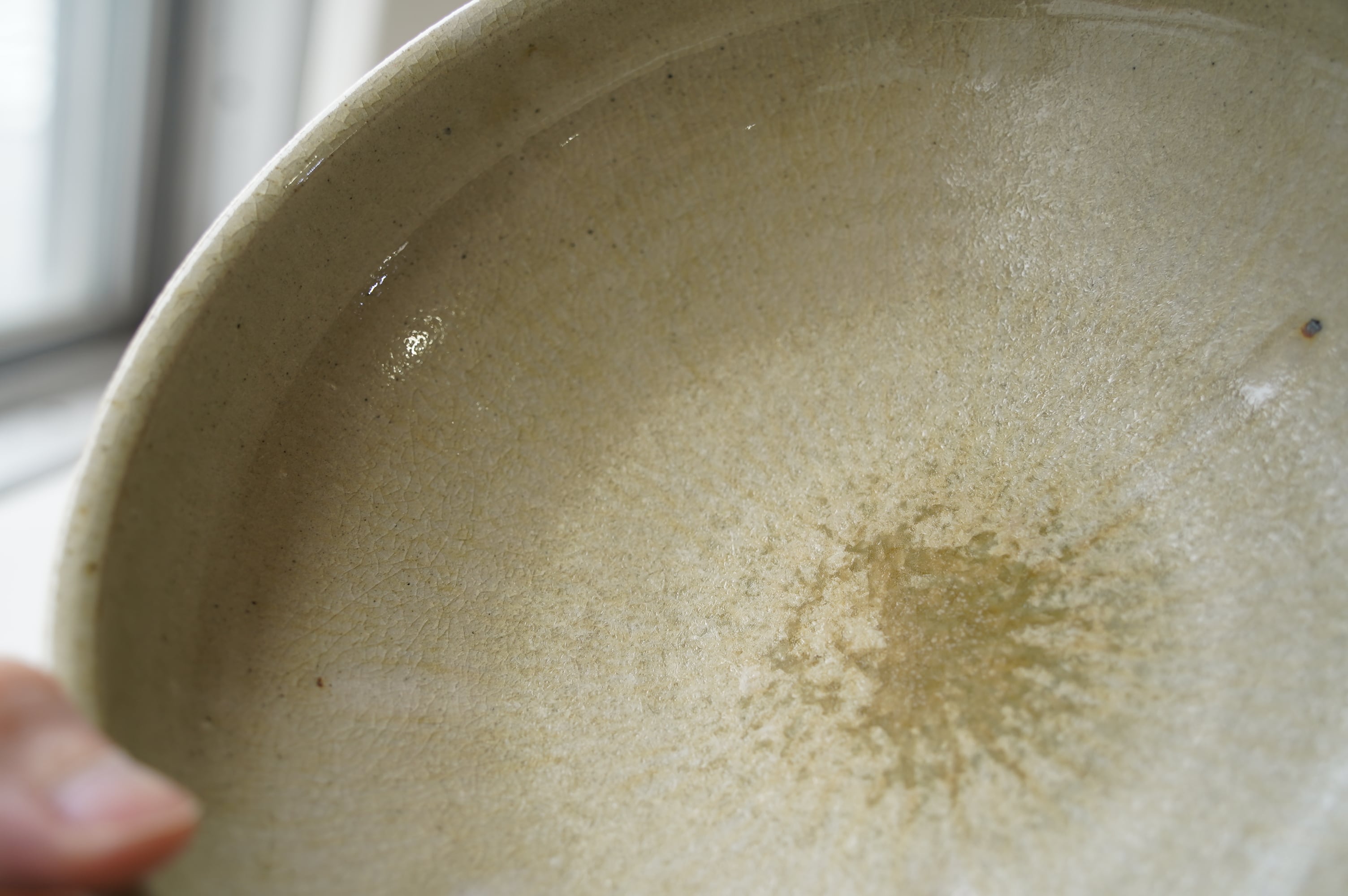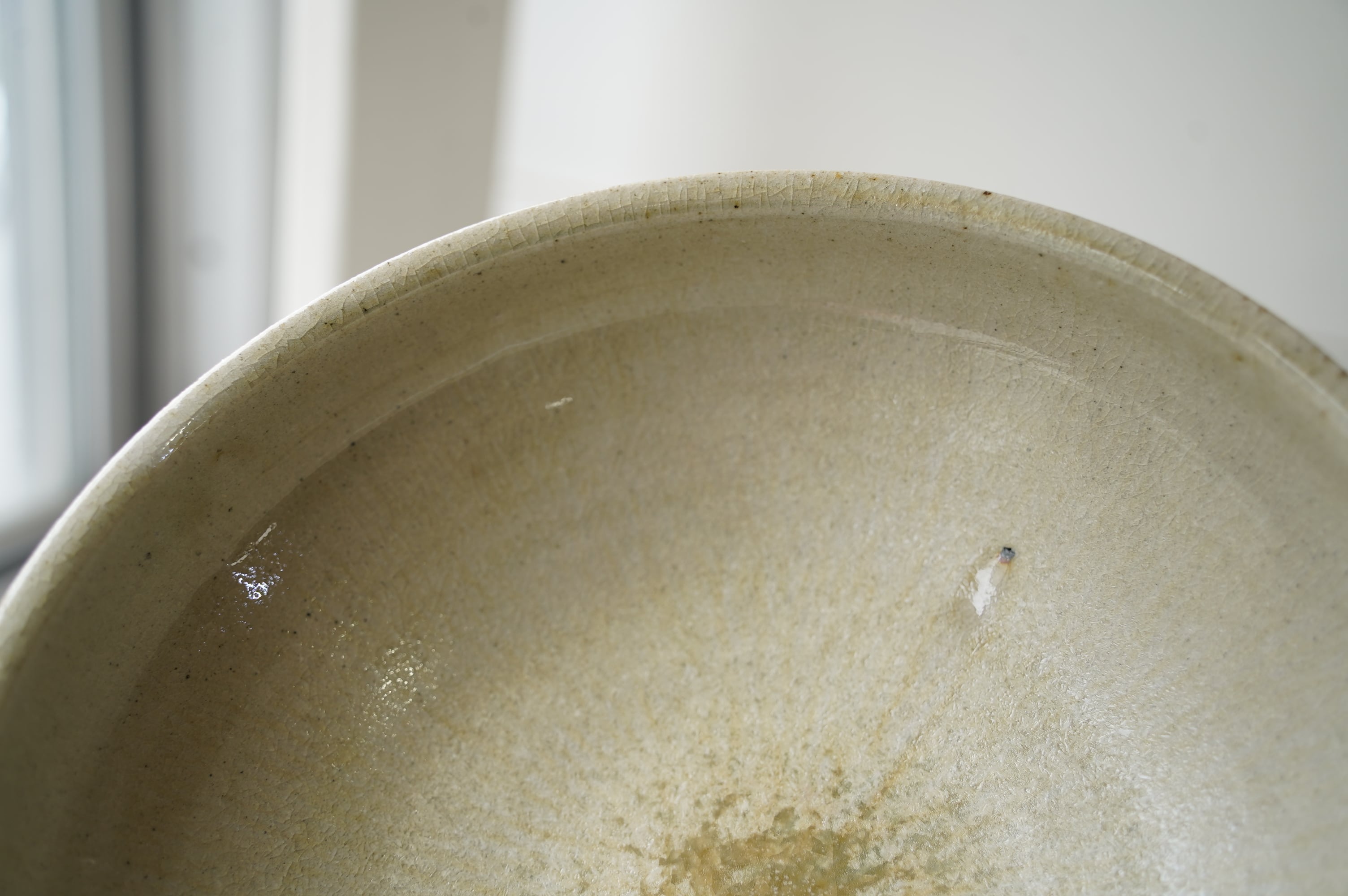 唐津の土に木の灰の釉薬を掛けて焼いたミニマルな作品。