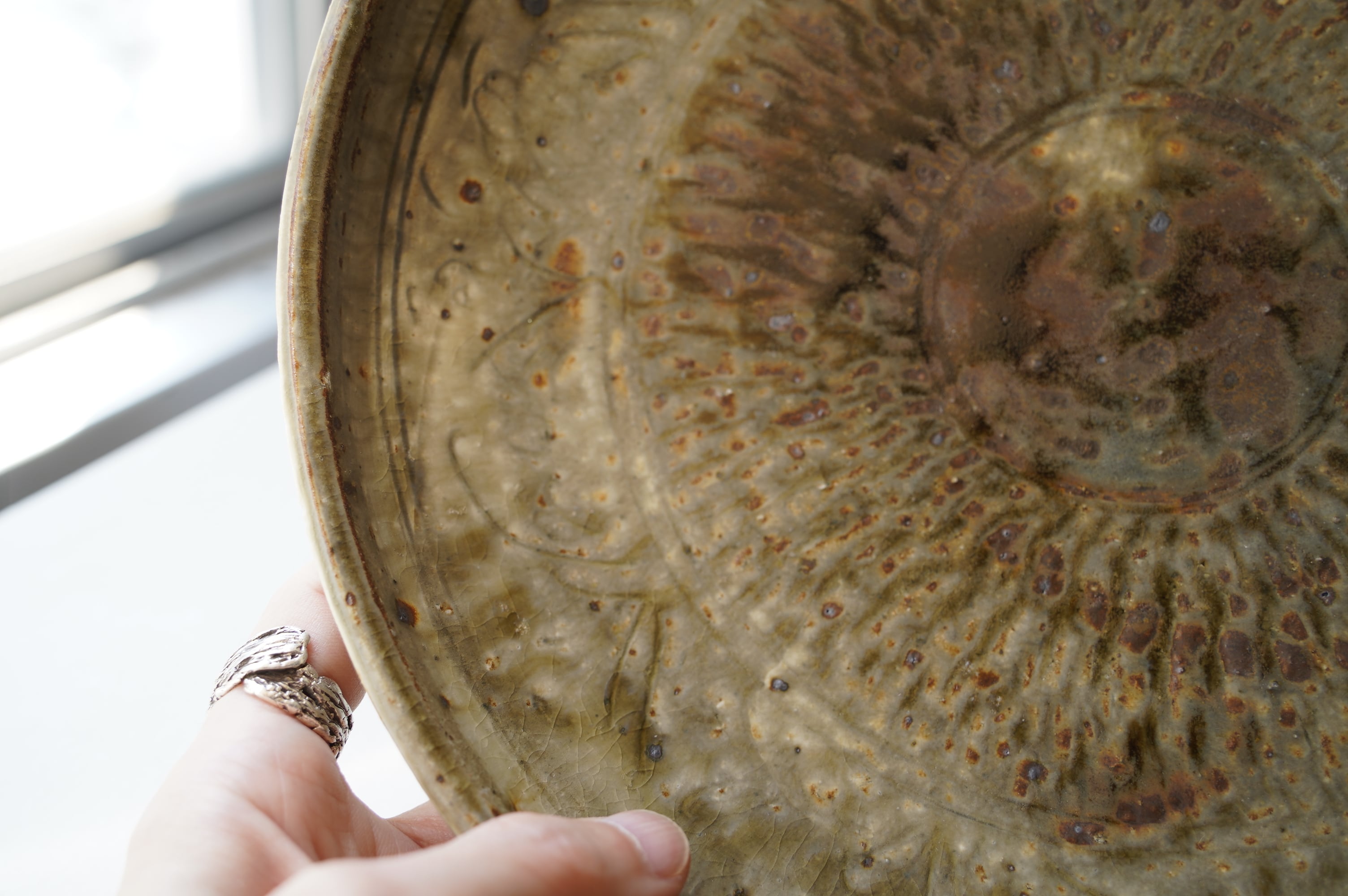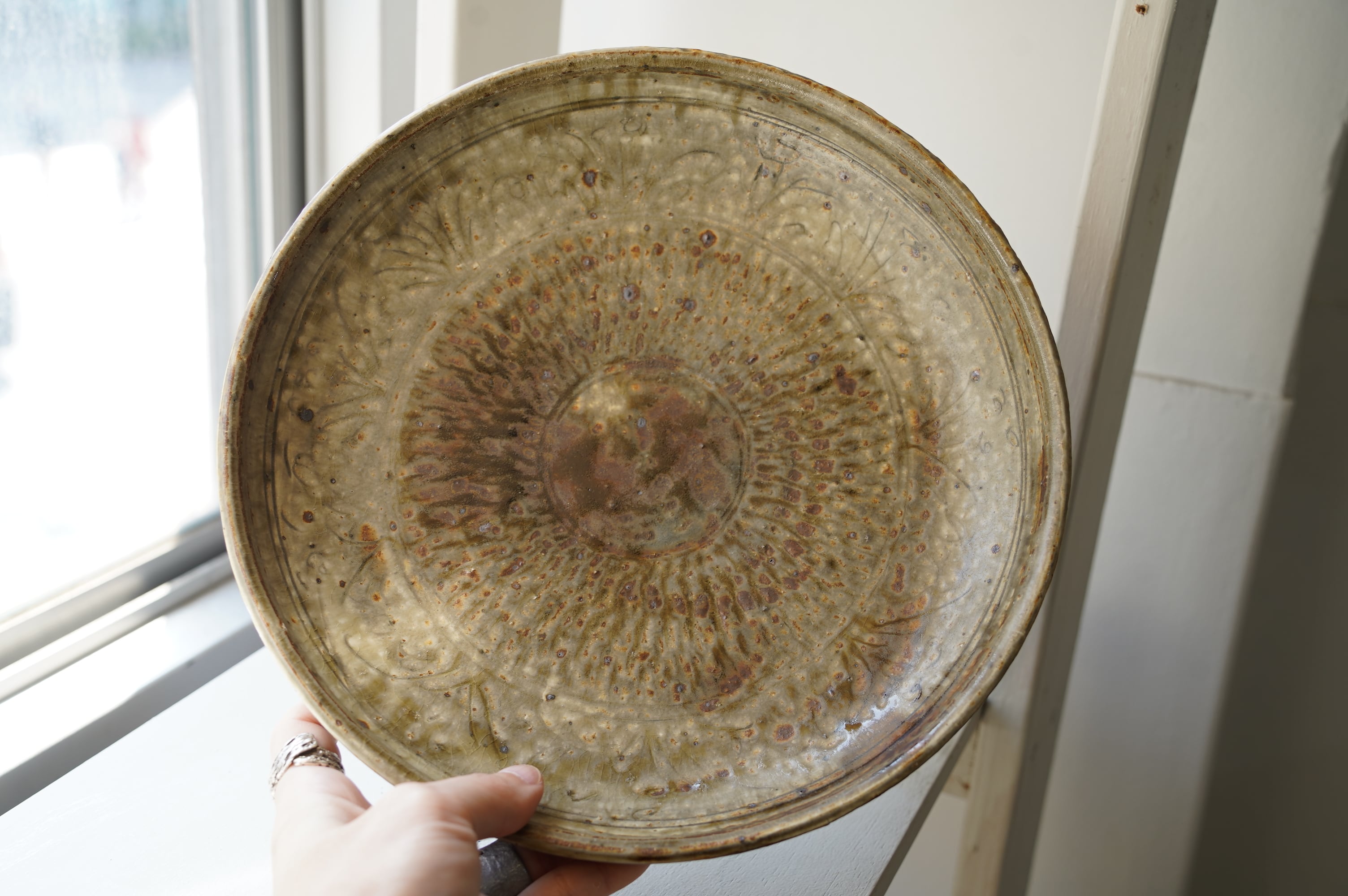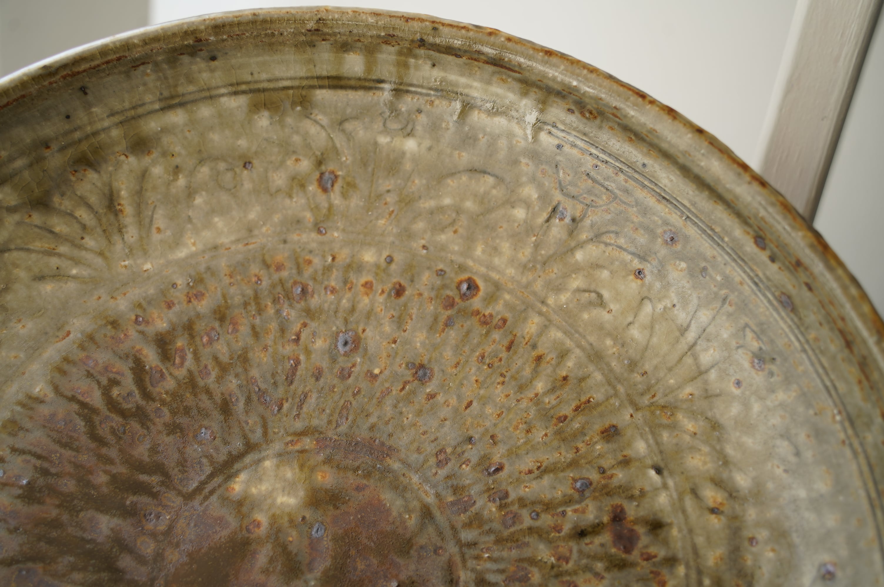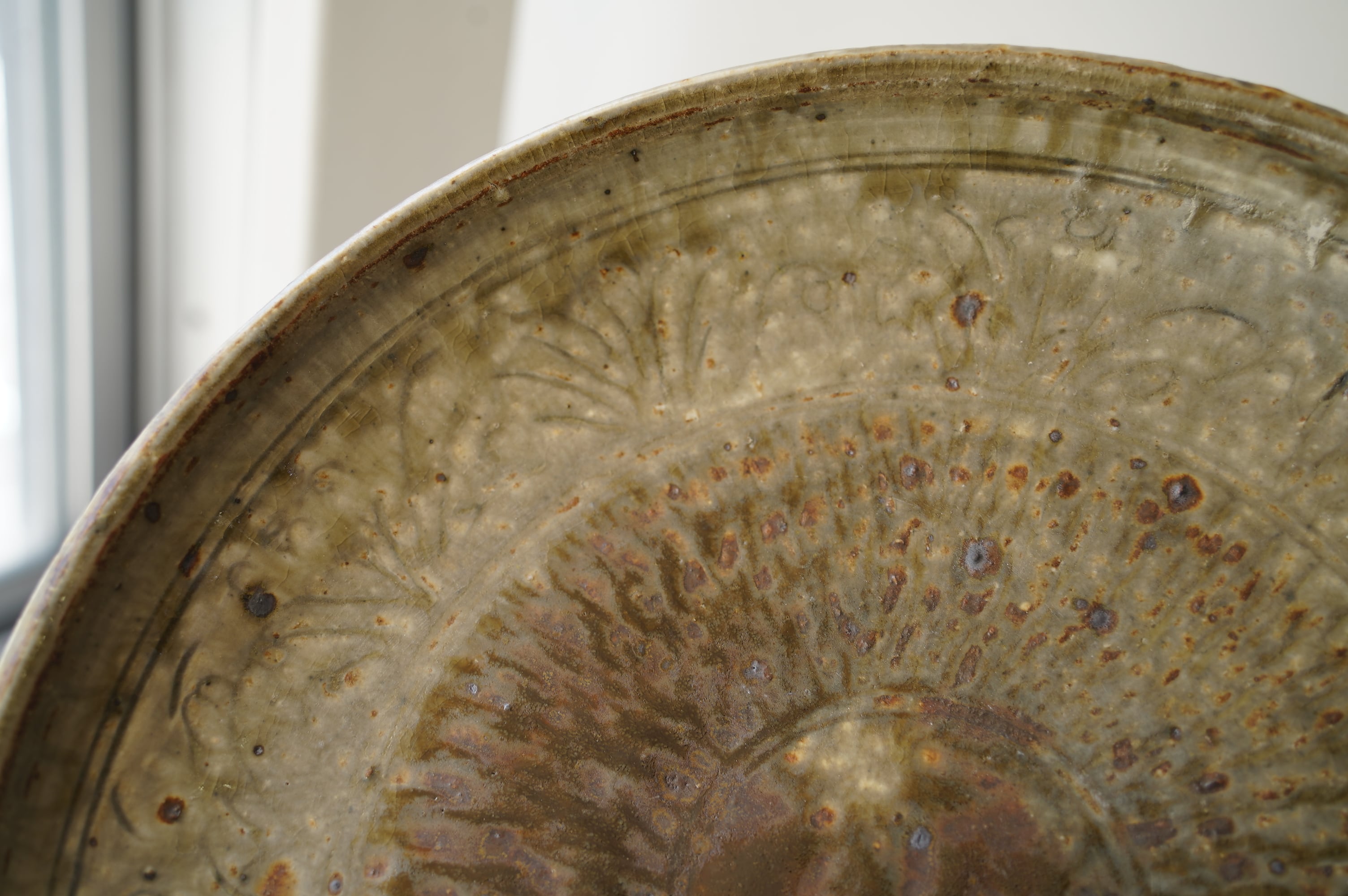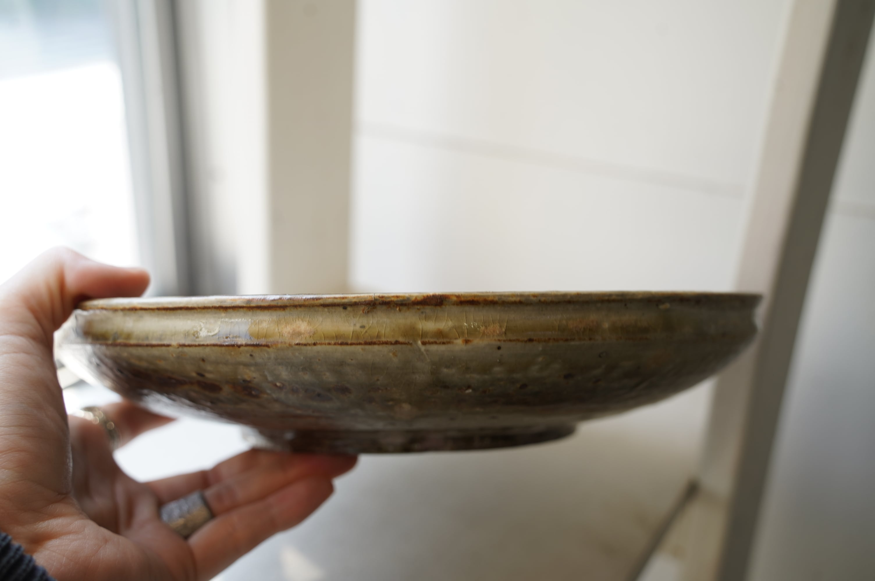 49 灰釉8寸釘彫浅鉢 中根楽 1